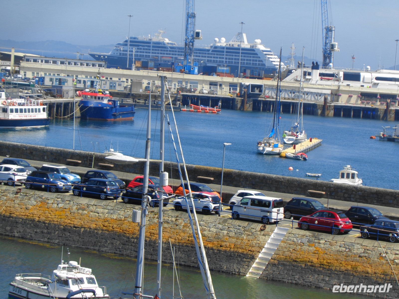 Im Anschluss fuhren wir mit dem "Little Train", einer touristischen Bimmelbahn, am Strand entlang nach St. Aubin, wo wir eine ausgedehnte Mittagspause genossen. An der Strandpromenade des malerischen Ortes reiht sich ein Lokal an das andere, viele befinden sich in historischen Gebäuden mit den für den britischen Küstenstil typischen farbenfrohen Fassaden und einladenden Terrassen und Innenhöfen. Nachdem wir ausgiebig Fisch und Meeresfrüchte genossen hatten und nach einem kleinen Rundgang im Ort kehrten wir mit der Bimmelbahn zurück nach St. Helier und schlenderten durch die Altstadt zurück zum Hotel.