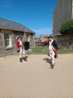 Es soll heute zum Elisabeth Castle gehen, dem Wahrzeichen von St. Helier. Die Festungsanlage ist in der St. Aubin`s Bay gelegen und nach der englischen Königin Elisabeth I. benannt. Es ist gerade Ebbe und wir könnten zu Fuß bis zur Burg gehen, da bei Niedrigwasser ein Pflasterweg dahin sichtbar ist. Aber wir bevorzugen das Amphibienfahrzeug, da es auch gerade wieder anfängt zu regnen. Jedoch dauert es gar nicht lange und die Sonne lugt wieder hervor. Viele Gäste wandern zur Haltestelle des Amphibienfahrzeuges und freuen sich auf die bevorstehende Fahrt damit. Gemeinsam besichtigen wir die Burganlage, erfahren etwas über die Geschichte dieser und ihren wohl berühmtesten Bewohner- Charles II., der nach der Ermordung seines Vaters, Charles I., im Exil hier Zuflucht fand, mit der Tochter des Gouverneurs von Jersey, Margaret de Carteret, einen Sommer verbracht hat, die bald darauf einen Sohn gebar, den er aber nie offiziell als seinen Sohn anerkannte. Nach der bürgerlichen Revolution in England und der Wiederherstellung der Monarchie (Restauration) wurde er englischer König Charles II.. Die Herkunft des Namens New Jersey ist für uns auch interessant. Wir erfahren, dass der König später dem Gouverneur von Jersey für dessen Unterstützung während des Exils als Dank ein Stück Land in Amerika - in der Neuen Welt -geschenkt hat. Es ist heute uns allen als New Jersey, getrennt von New York durch den Hudson River, bekannt. Unser Rundgang in der Burganlage wird durch eine Demonstration und Beschreibung der „Langen Waffen“ der “Redrocks“ (so nannte man die englischen Soldaten aufgrund der Farbe ihrer Uniformen), das Einüben vom Marschieren im Gleichschritt und einem Kanonenschuss beendet. Zurück im Stadtzentrum lassen sich wieder einige Gäste zu einem Einkaufsbummel verleiten. Viele gehen vor dem abendlichen Erfahrungsaustausch und der Information für den nächsten Tag noch schwimmen. Nach dem reichhaltigen Dinner und den vielen Erlebnissen freuen wir uns auf das Bett.