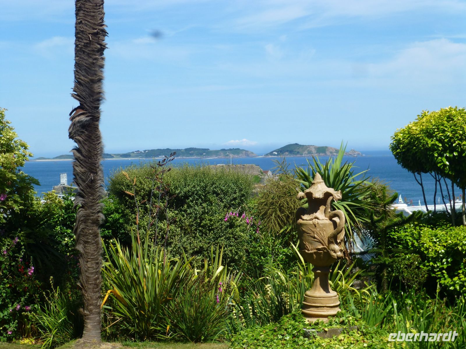Auf der autofreien Insel sind nur Fußgänger, Radfahrer, Reiter und Traktoren erlaubt. So fährt uns ein Traktor auf seinem Anhänger ins höher gelegene Örtchen, das Zentrum der von rund 600 Menschen bewohnten Insel. Die erinnert ein wenig an Lummerland, das Inselchen, auf dem Jim Knopf und der Lokomotivführer zu Hause sind, auf der es eine Post gibt und einen König. Beides hat auch Sark und der hiesige „Inselfürst“ wohnt in einer zauberhaft angelegten Besitzung, die „Seigneurie“ bezeichnet wird, hergeleitet vom französischen „Seigneur“, der Herr. Wir sind eingeladen, den zauberhaft angelegten Garten zu besuchen, der in voller Blüte steht. Unzählige Blumen- und Pflanzenarten in leuchtenden Farben strecken uns ihre Blüten entgegen wie um zu fragen „Wer ist die Schönste hier?“.