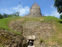 Nahe dran liegt Crosnez Castle. Von der Burg ist hingegen nicht mehr viel übrig, ein schöner Torbogen, die Vertiefungen in den Steinpfosten für das Falltor und der Graben darunter sind gut zu erkennen. Es fehlte der Mannschaft unter anderem ein eigener Brunnen, keine gute Voraussetzung im Fall einer Belagerung.