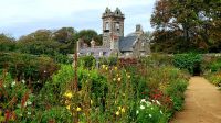 9.30 Uhr holt Ernst uns vom Hotel ab und mit dem Kleinbus geht es los zur Gartentour. Wir besuchen zwei private Gärten, die Eigentümer führen uns persönlich herum und erklären mit viel Enthusiasmus die Historie der weitläufigen Gartenanlagen und der Gebäude. Wir bewundern Parkanlagen, Gemüse- und Blumengärten, Gewächshäuser und Brunnen. Alle Gäste sind beeindruckt von soviel Schönheit. Anschließend gibt es Mittagessen in einem historischen Pub mit Blick auf die Portelet Bucht. Von oben hat man eine atemberaubende Aussicht auf den Strand und schroffe Felsformationen. Einige klettern die lange Treppe hinunter zum Strand. Nach einem Stopp im botanischen Garten Samares mit einer Überraschung, die hier nicht verraten wird, geht es zurück zum Hotel.