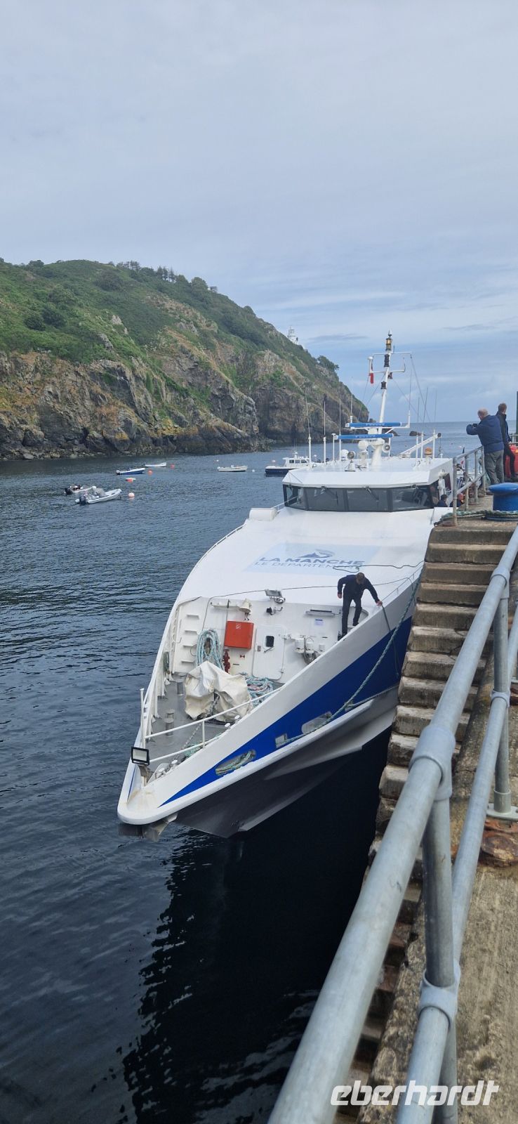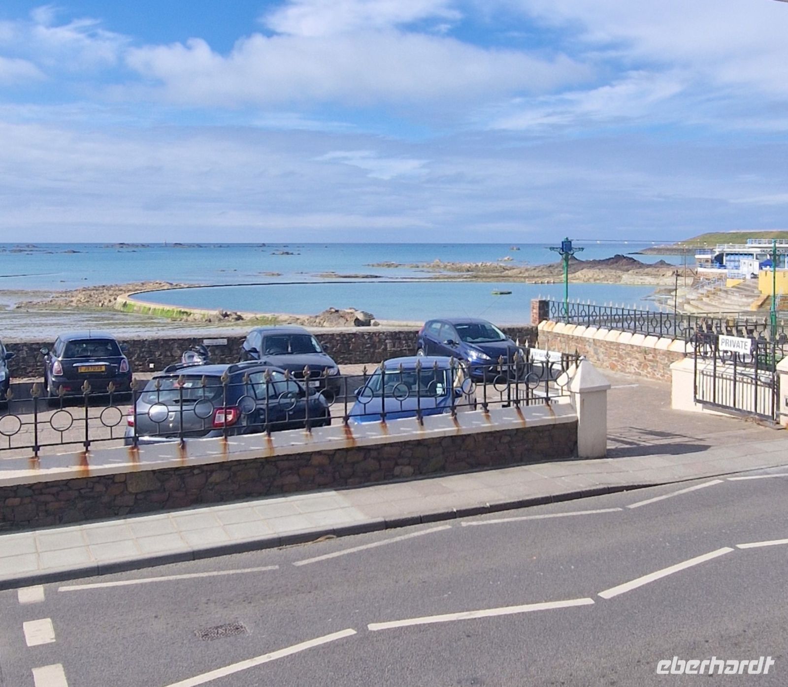 Wieder hieß es früh aufstehen. Wir fuhren zum Hafen von St. Helier. Eine große Autofähre brachte uns bei mäßiger See unaufgeregt zur Nachbarinsel.