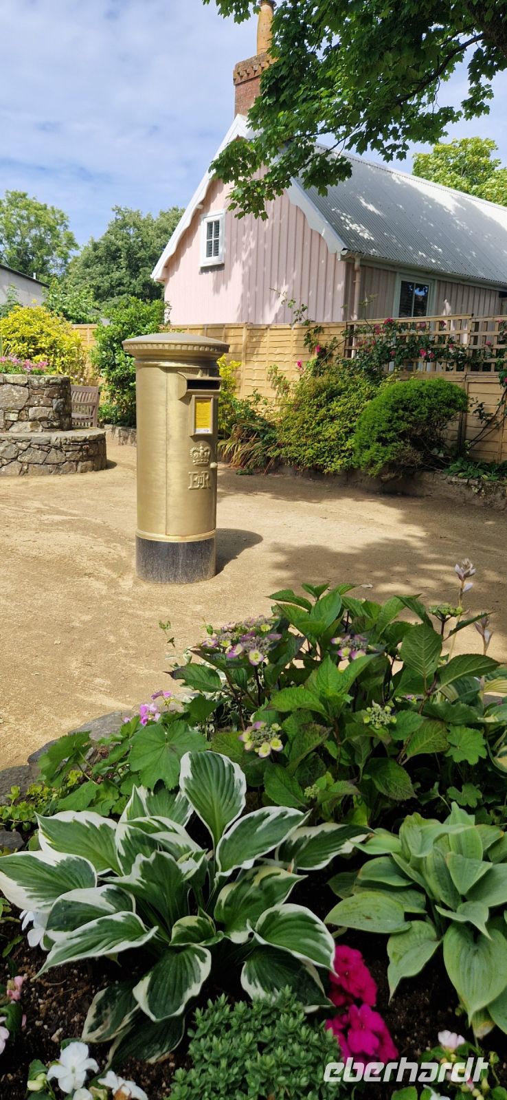 Das Mittagessen im Garten eines Restaurants wurde als willkommene Pause gern angenommen. Weiter ging es vorbei an typischen englischen Häusern und schönen Vorgärten. Auch einen Blick in die Methodist Church der Insel haben wir geworfen und von Heidi die Geschichte dazu erfahren.