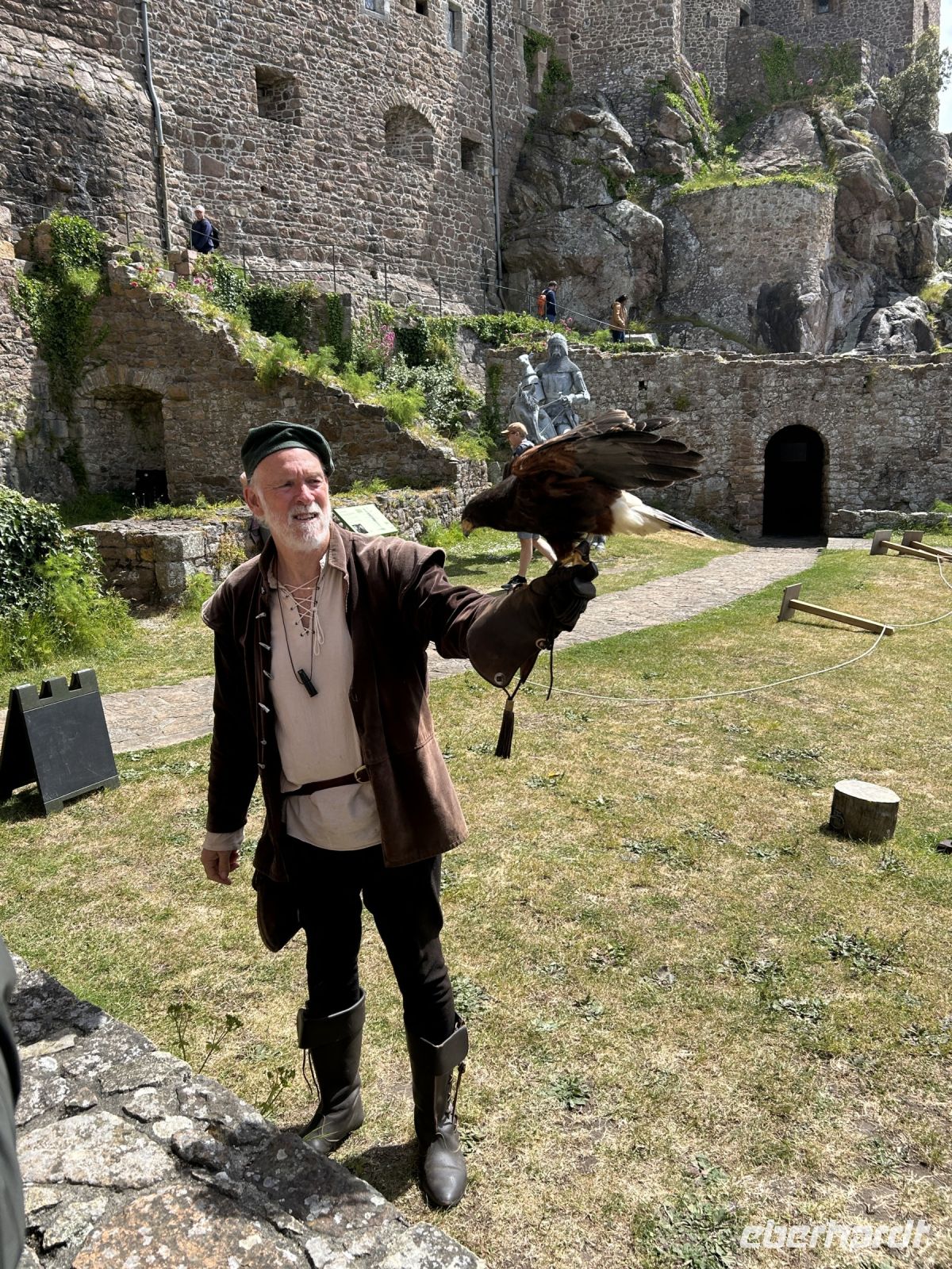 Unser Tag auf Jersey begann mit einem entspannten Frühstück, bei dem wir die ruhige Atmosphäre und das angenehme Wellenrauschen in vollen Zügen genießen konnten. Ein perfekter Start in den Tag. Nach dem Frühstück machten wir uns auf zu einem Stadtrundgang durch St. Helier, die lebendige Hauptstadt der Insel. Gut 100 000 Einwohner dürfen dieses hübsche Örtchen Ihr zu Hause nennen. Auf unserem Weg zum Liberation Square, dem Mittelpunkt der Stadt, flanierten wir durch charmante Straßen, kleine Geschäfte und das ließen das maritime Flair der Stadt auf uns wirken. Da der Tag noch jung ist, entschieden wir uns mit dem Bus in den Küstenort Gorey zu fahren. Der Liberation Square ist hierfür der ideale Ausgangspunkt, denn hier befindet sich der Busbahnhof, wo alle sich alle Linien treffen. Wir organisierten uns eine Fahrkarte und auf ging die Fahrt. In Gorey angekommen wurden wir von strahlendem Sonnenschein begrüßt. Wir machten uns auf zum Mount Orgueil Castle oder auch Gorey Castle genannt. Eine mittelalterliche Festung aus dem 13. Jahrhundert. Ein besonderes Merkmal dieser Burg ist, dass sie auf einem Felsen erbaut wurde und von 3 Seiten von Meer und Klippen umgeben ist. Die Aussicht und die Geschichte dieses Ortes waren beeindruckend und ließen uns in eine andere Zeit eintauchen. Wir hatten das Glück und durften noch einer Falkenshow beiwohnen, welche Falkner Jean leitete. Von Ihm lernten wir spannende Sachen rund um das Thema Falken und deren nutzen in der damaligen Zeit.