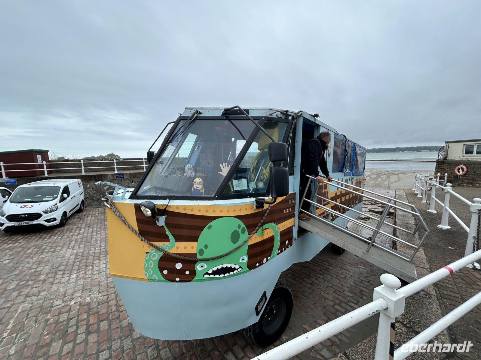 Neuer Tag, neues Glück. Glück möchten wir heute besonders einem Reiseteilnehmer wünschen, denn heute ist sein Geburtstag – alles Gute an der Stelle. Heute hatten wir die Gelegenheit, die Insel auf eigene Faust zu erkunden und den Tag ganz nach unseren Wünschen zu gestalten. Der größte Teil der Gruppe machte sich auf in das Stadtzentrum von St. Helier über den Liberation Square zum Kiosk des Fähranlegers, um das Elizabeth Castel zu erkunden. Besonders spannend war die Fahrt im Amphibienfahrzeug, das uns sowohl auf dem Wasser als auch an Land sicher ans Ziel brachte. Das Castle selbst ist eine beeindruckende Festungsanlage aus dem 15. Jahrhundert, die einen faszinierenden Einblick in die Geschichte Jersey’s bietet. Die Anlage misst sage und schreibe 24 Hektar und wurde zur Unterstützung des Mount Orgueil Castles erbaut. Der Standort wurde clever gewählt, eine kleine Insel, die etwa eine halbe Meile entfernt im Meer liegt. Bei Ebbe ist die Burg durch einen Steg mit dem Festland verbunden. Sobald die Flut eintrifft, ist die Burg gut 15 Stunden am Tag von Wasser umgeben und bietet somit einen idealen Schutz vor Angreifern vom Festland aus. Elizabeth Castle sollte St. Helier beschützen und bot gleichzeitig auch sicheren Ankerplatz für Handelsschiffe. Nach der gemeinsamen Besichtigung durfte jeder seiner Wege ziehen, um die Insel individuell zu erkunden. Viele nutzten die Gelegenheit, die lebendige Markthalle zu besuchen, um lokale Spezialitäten zu probieren, Souvenirs zu kaufen oder einfach ein bisschen zu shoppen. Der Tag war eine perfekte Mischung aus Geschichte und Freizeit, bei der jeder seine eigenen Entdeckungen machen konnte. Am Abend trafen wir uns alle wieder und ließen den Abend gemeinsam ausklingen.
