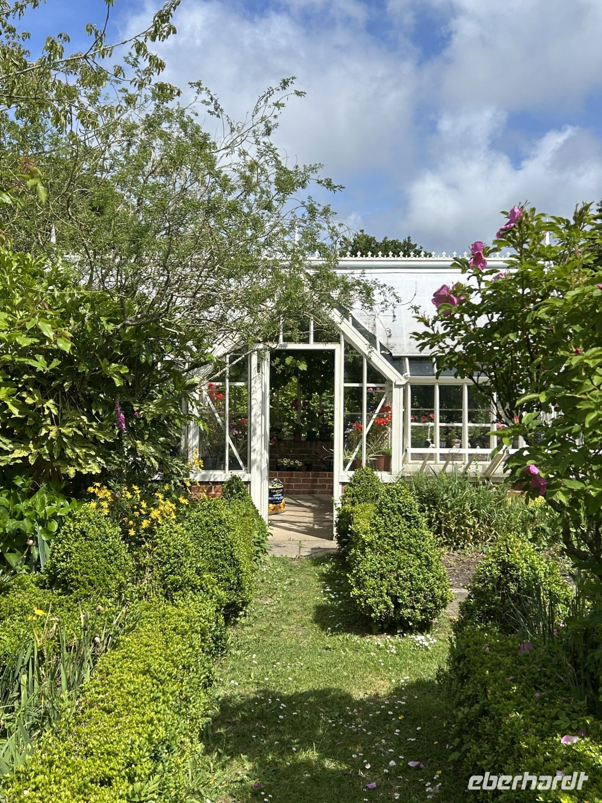 Heute wird es blumig! Aufgrund der Wetterbedingungen wurde die Fähre nach Sark leider abgesagt und auf Donnerstag verschoben. Das ist aber alles kein Problem, dank der Organisationskünsten von Agenturchefin und Busfahrerin Jane haben wir die Programmpunkte untereinander getauscht. Wir beginnen den Tag mit einer privaten Gartentour bei Mr Miles. Er empfängt uns persönlich und zeigt uns seinen beeindruckenden Garten, welcher tatsächlich nur durch einen Gärtner bewirtschaftet wird. Der Garten ist in kleinen Inseln angelegt und ist gespickt mit verschiedenster Flora und Fauna. Bei genauerem Hinschauen kann man sogar einige Raritäten wie einem Pfefferbaum aus Argentinien begutachten. Vielen Dank an Mr. Miles, dass Sie uns die Pforten zu Ihrem Heim geöffnet haben. Im Anschluss besuchten wir die Eric Young Orchid Foundation, die für ihre außergewöhnliche Sammlung seltener Orchideen bekannt ist. Die farbenfrohen und exotischen Pflanzen waren ein echtes Highlight und zeigten die beeindruckende Vielfalt der Natur. Es war faszinierend, die verschiedenen Arten zu bewundern und mehr über die Pflege dieser besonderen Pflanzen zu erfahren. Nach diesem inspirierenden Vormittag gönnten wir uns ein gemütliches Mittagessen in einem charmanten Pub mit herrlicher Aussicht auf die Portelet Bay. Das Essen war köstlich, und die Aussicht auf das Meer machte das Erlebnis perfekt – ein Moment zum Entspannen und Genießen. Gut gestärkt machen wir uns auf dem Weg zu Mrs. Binney. Sie erwartet uns bereits mit Ihren 2 Hunden auf dem riesigen Grundstück. Ihr Garten war beeindruckend und bot eine vielfältige Auswahl an Pflanzen, Blumen und liebevollen Gartendetails auch das Haus bot uns eine einmalige Kulisse und strahlte Wärme und Harmonie aus. Der offizielle Teil ist nun vorbei - aber Eberhardt Travel wäre nicht Eberhardt Travel, wenn wir nicht für unsere Gruppe immer mal eine kleine Überraschung organisieren.