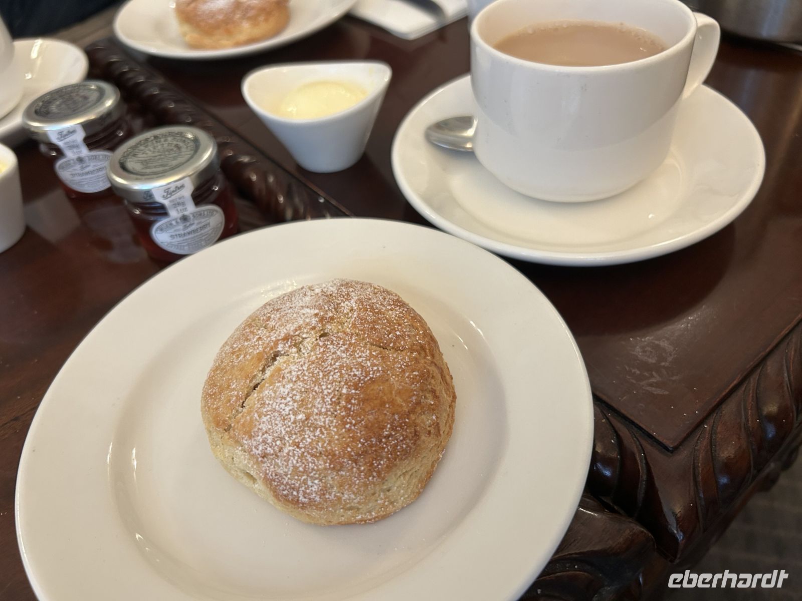 So auch heute, da wir uns auf britischen Boden befinden liegt also ein Nachmittagstee nahe. Hierfür chauffier uns Jane zu einem Boutique Hotel, wo für alle Teilnehmer ein typischer Cream Tea mit frisch gebackenen Scones serviert wird. Die Gruppe war begeistert von dieser typisch britischen Spezialität, die den Tag auf angenehme Weise abrundete. Es war schön zu sehen, wie alle die süßen Scones, die Clotted Cream und den Tee genossen und sich über die kleinen Überraschungen freuten. Gut gestärkt und glücklich fahren wir zurück ins Hotel und begeben uns zu einem weiteren kulinarischen Highlight, nämlich unser 3-Gang Menü im Hotelrestaurant. Es war wie auch die Tage zu vor köstlich. Müde und gut gesättigt fallen wir in unsere Betten.