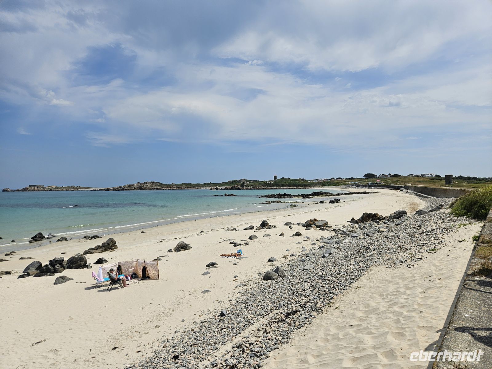 Einen wunderschönen Fotostop hatten wir am Pembroke Bay. Ann erzählte uns, dass dies einer Lieblingsstrände auf den Kanalinseln sei und sie hier auch privat gerne hinkommt.