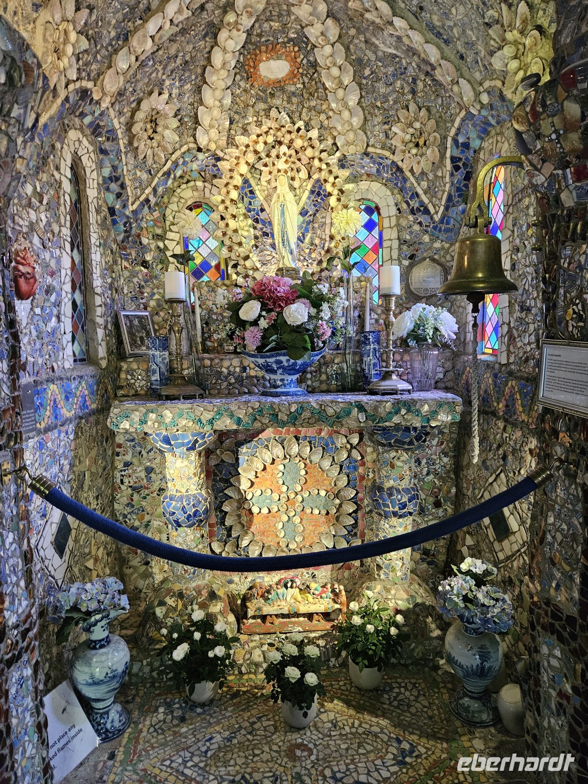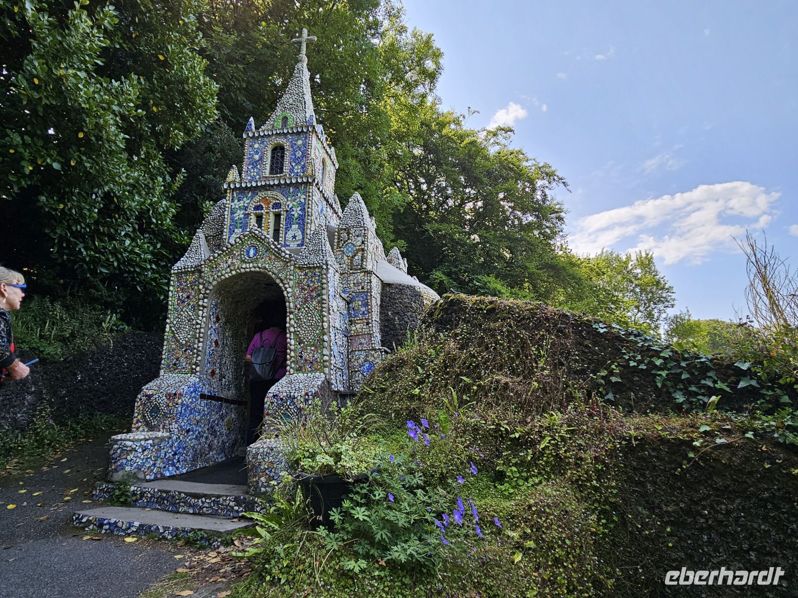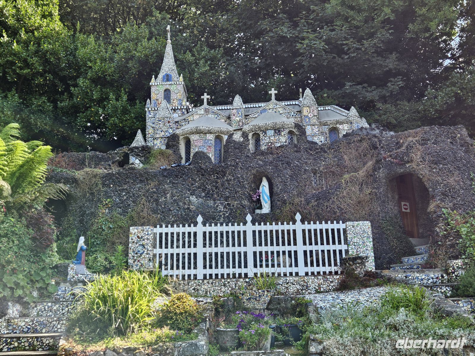 Am heutigen Tag unternahmen wir einen Ausflug auf die zweitgrößte Kanalinsel: Guernsey. Nach Guernsey gelangten wir mit der Fähre. Ann und Vanessa, die in Zukunft auch deutsche Gruppen über Guernsey führen soll, waren auch gleich mit an Bord. Auf Guernsey wurden wir gleich von unserem Busfahrer Andy in Empfang genommen. Guernsey hat ca. 56.000 Einwohner und ist in 10 Gemeinden unterteilt. Unser erster Halt war die Little Chapel in St. Andrew. Diese soll die kleinste Kirche der Welt sein und ist übersät von vielen kleinen Muscheln und Porzellanscherben. Sie wurde erbaut von Bruder Deodat – einem Mitglied der De La Salle Bruderschaft, die im Jahr 1904 in Frankreich verboten war. Die Little Chapel soll eine Miniaturausgabe der Kirche in Lourdes darstellen. Die Kirche musste insgesamt drei Mal neu aufgebaut werden, da bei den ersten zwei Versuchen der Priester nicht in die kleine Kathedrale hineinpasste, um diese zu weihen.