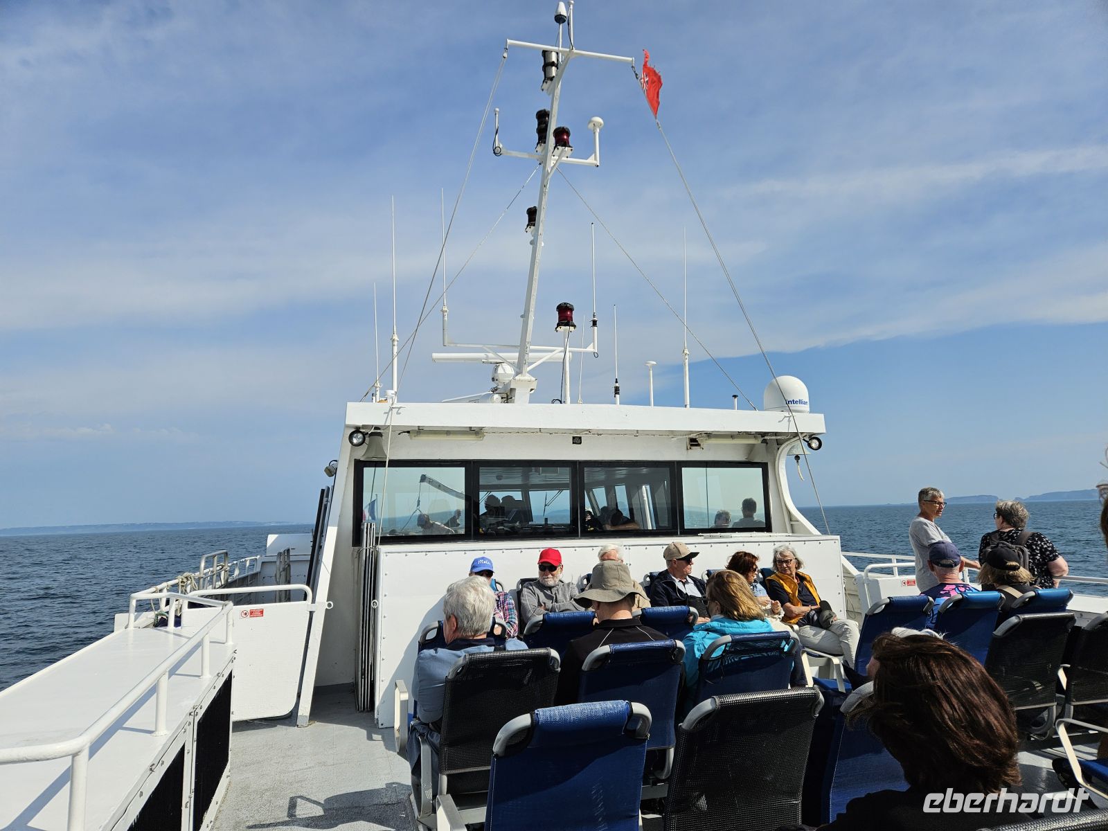 Die Rückfahrt gestaltete sich aber um einiges ruhiger, als die Hinfahrt und es bot sich sogar an auf dem Oberdeck zu sitzen, den strahlenden Sonnenschein zu genießen und sich die frische Meeresbrise um die Nase wehen zu lassen.