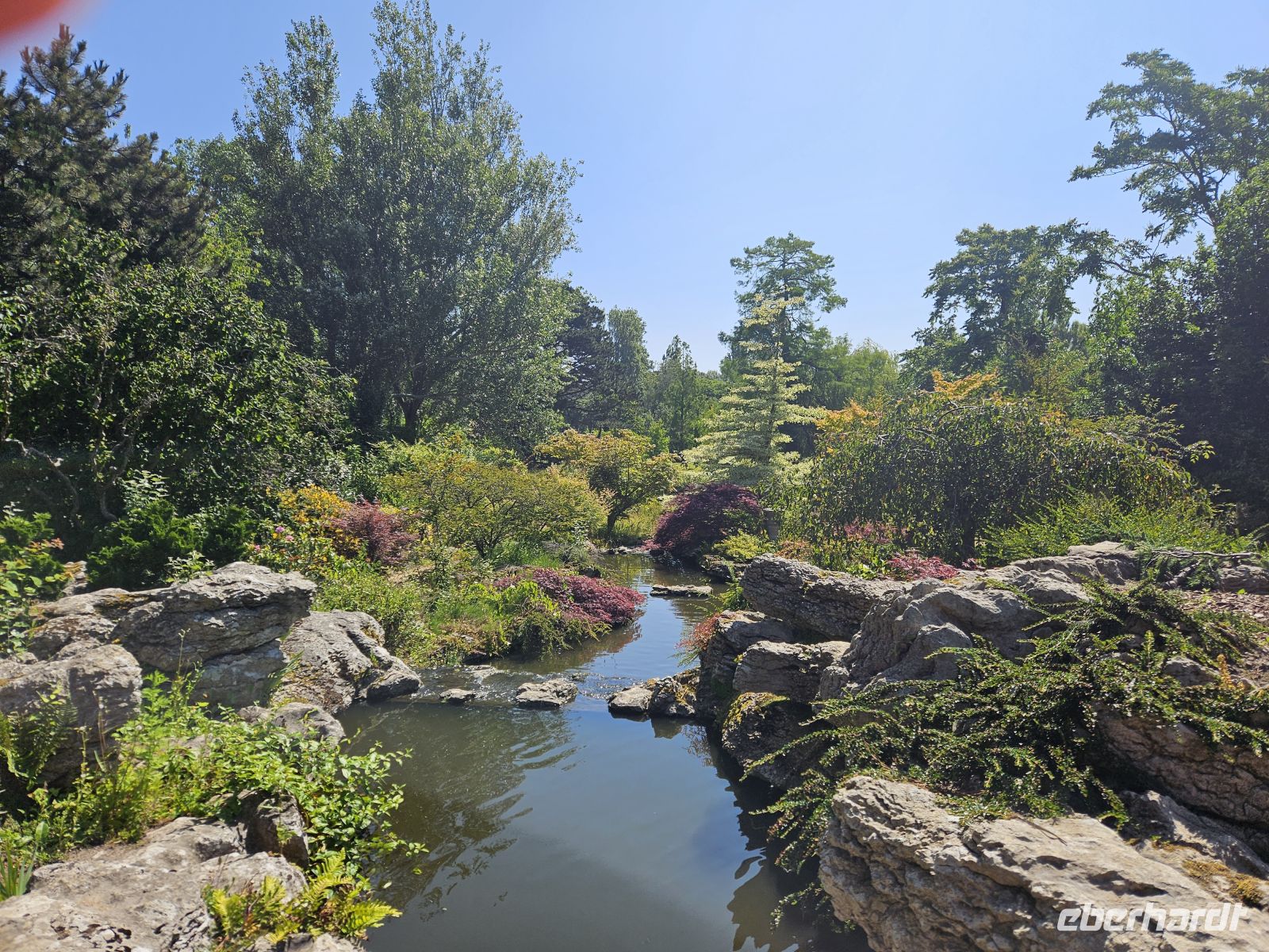 Im Anschluss an den Besuch der Gärten konnten wir uns in einem kleinen Kiosk vor dem Eingang zu den Gärten stärken und auf Holzbänken unter schattigen Bäumen die Seele baumeln lassen.