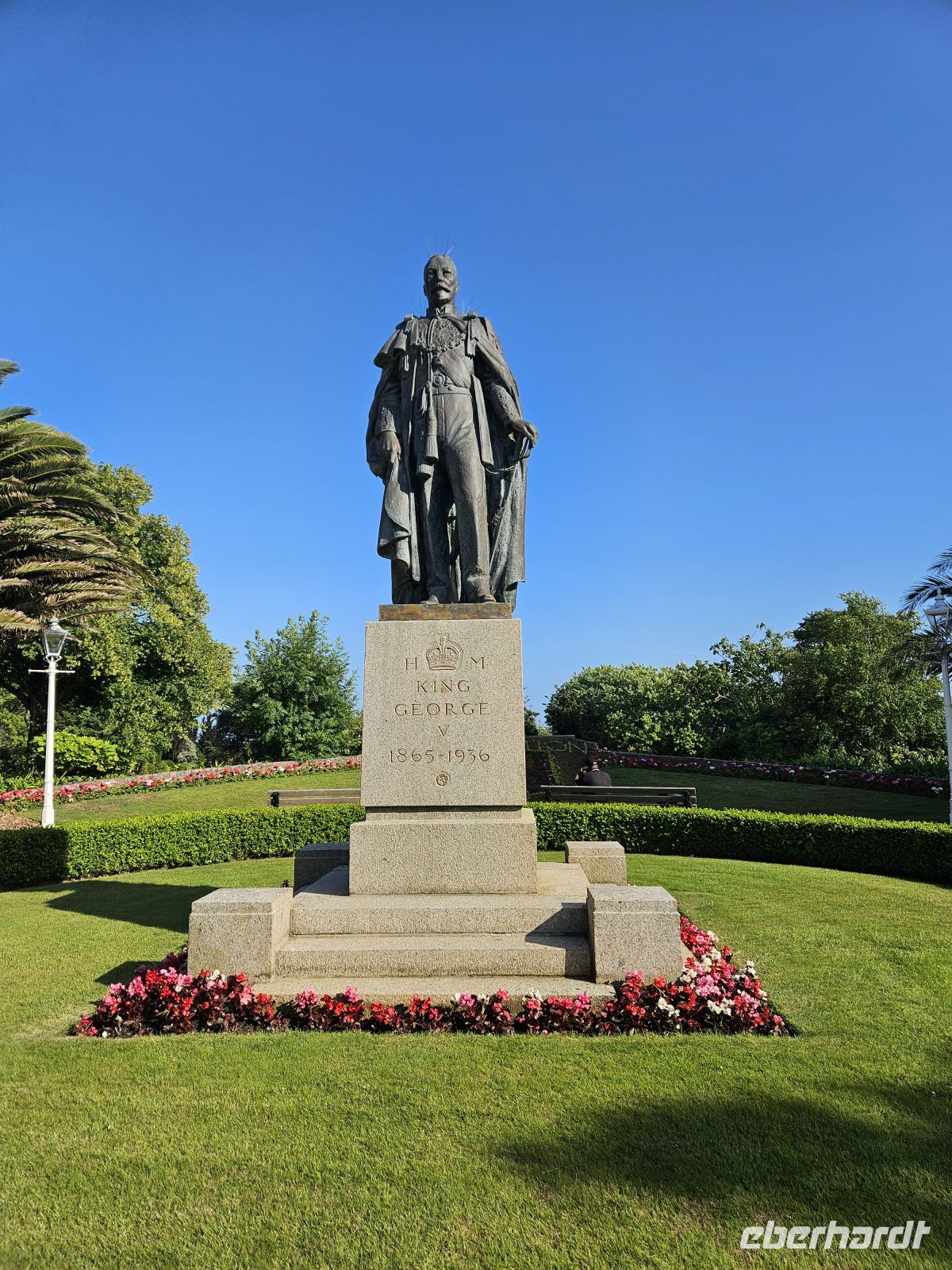 Den Nachmittag nutzen einige, um noch die Innenstadt von St. Helier zu erkunden. Nur fünf Minuten zu Fuß vom Hotel entfernt, befindet sich der Howard Davis Park. Die weitläufige Parkanlage lädt zum Verweilen und Entspannen ein und im Sommer findet hier auch ein Open-Air-Kino statt. Gleich am Eingang des Parks sieht man die Statue in Andenken an George V. – den Vater von Queen Elizabeth.