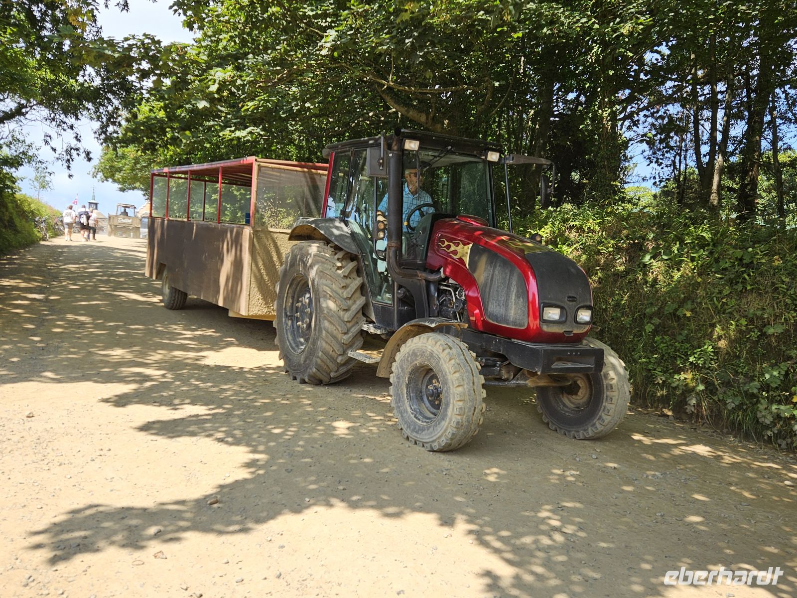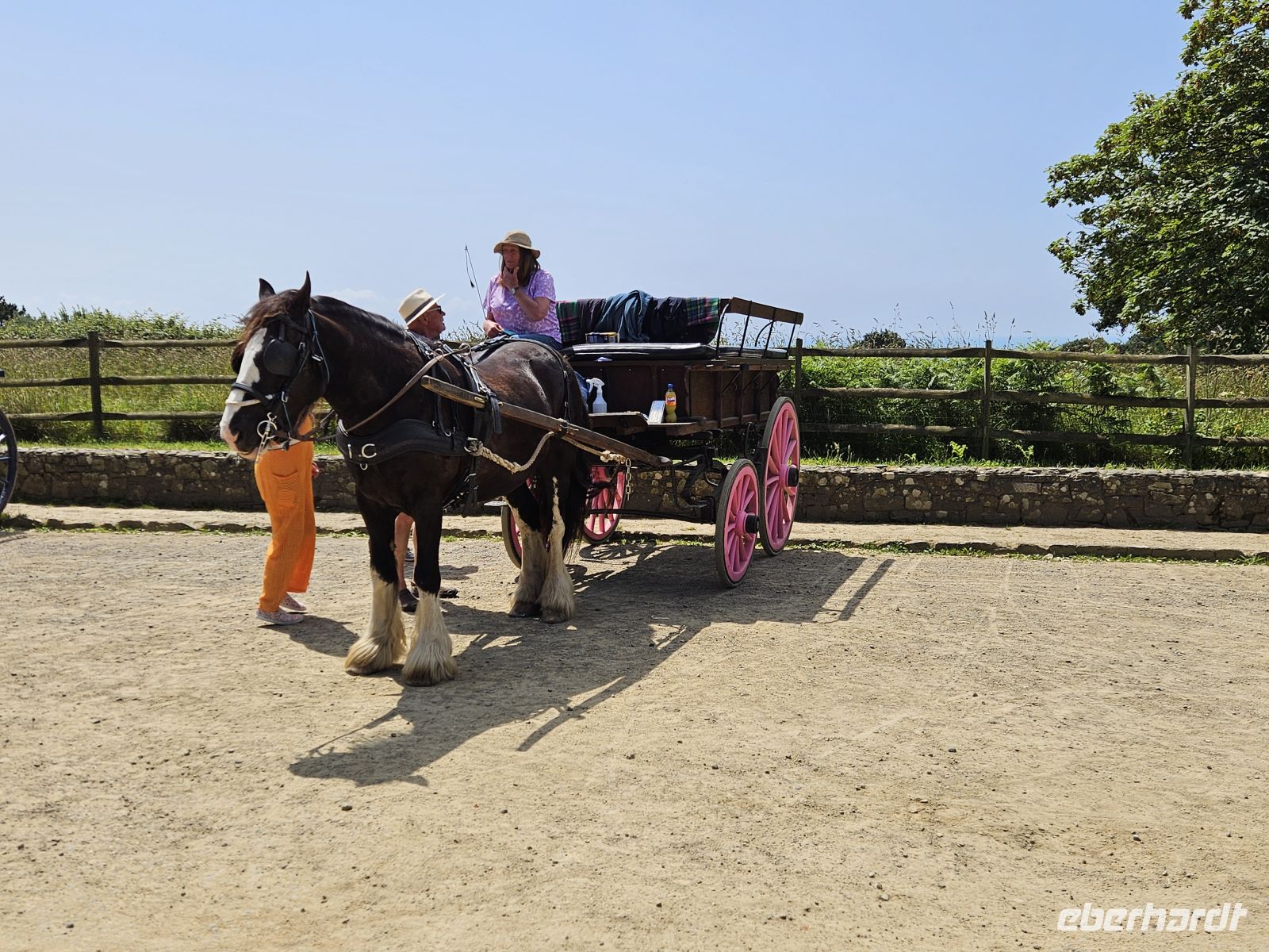 Auf Sark sind Autos nicht erlaubt und einzige Fortbewegungsmittel auf der Insel sind Traktoren, Pferdekutschen und Fahrräder. Die ersten Minuten unseres Aufenthalts auf Sark kamen wir auch gleich in den Genuss einer Traktorfahrt. Mit relativ hoher Geschwindigkeit ratterte der Traktor den Berg hinauf zum Ortszentrum.