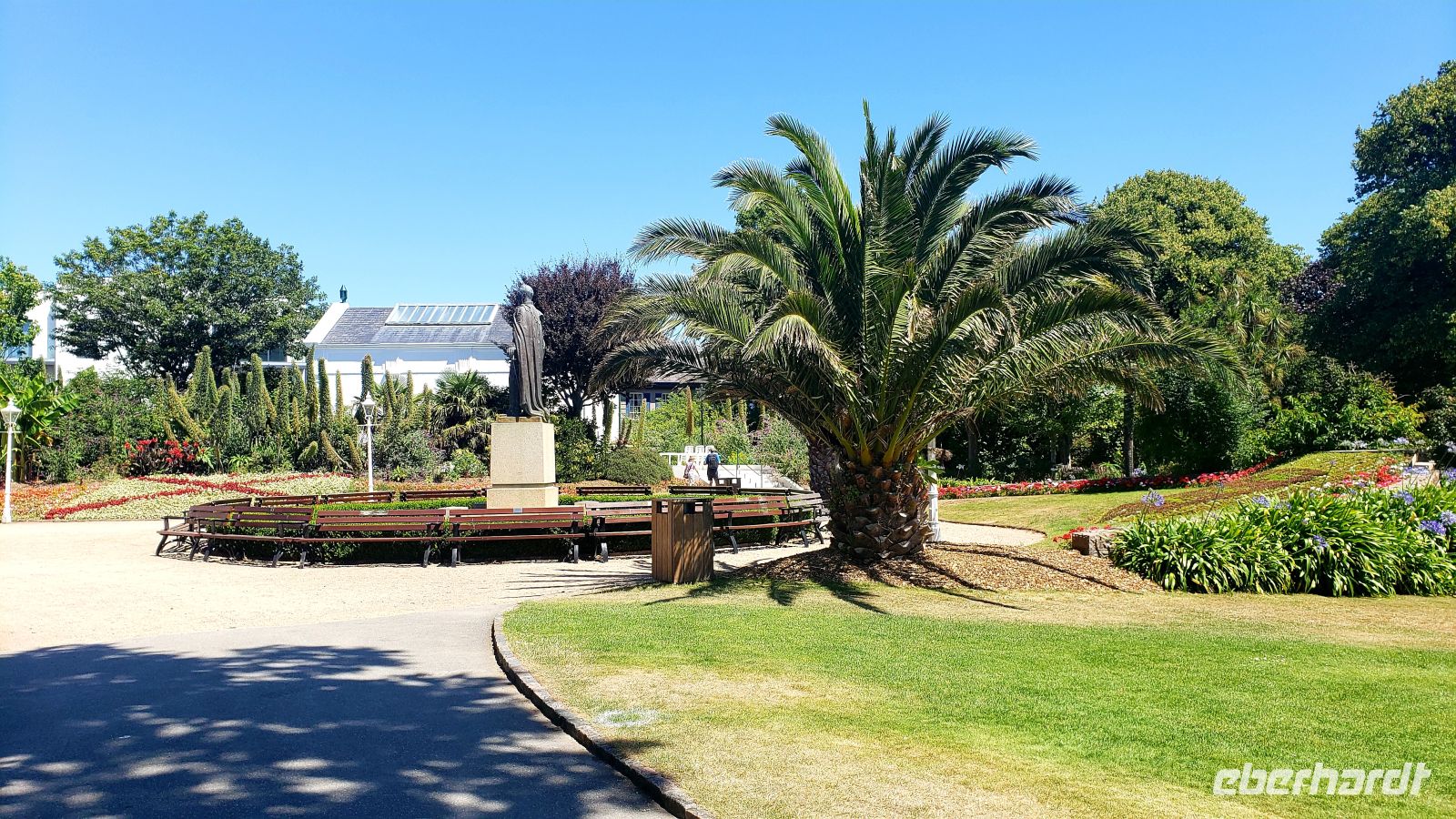 Heute geht unsere Reise schon zu Ende! Aber das Gute ist, wir haben noch den halben Tag Zeit für Unternehmungen, da wir erst 14.30 Uhr am Hotel abgeholt werden zum Flughafen. Also nehmen wir den Bus und fahren ins Jersey Museum, wo wir uns ein komplett eingerichtetes Original viktorianisches Haus anschauen und eine Ausstellung zur Geschichte Jerseys. Zu Fuß geht es weiter in die nahegelegene Markthalle, die durch ihre Architektur im viktorianischen Stil besticht. Anschließend spazieren wir durch den Howard Davis Park, der hinter unserem Hotel liegt. Zum Abschied bekommen alle Gäste von mir ein etwas ungewöhnliches Souvenir: einige "Jersey Royal" Kartoffeln, für die die Insel so bekannt ist. Die Gäste freuen sich und die meisten wollen die zu Hause einpflanzen.