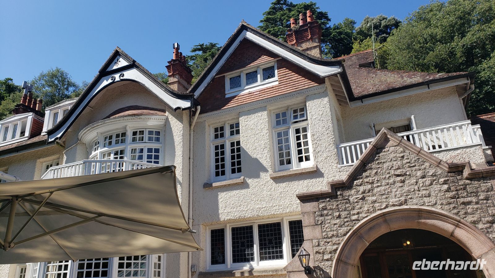 Das Hotel ist ein imposanter Bau aus dem 19. Jahrhundert, die Zimmer sind modern, hell und freundlich eingerichtet. Um 19 Uhr gibt es Abendessen, das 3 Gänge Menu ist exzellent, alle sind begeistert. Die meisten haben gewählt: Melonen-Feigensalat, Lachsfilet und Jersey-Eis als Dessert. Das war ein gelungener Urlaubsstart. Nachdem wir das Programm für den nächsten Tag besprochen haben, gehen fast alle früh schlafen, denn es war ein langer Tag!