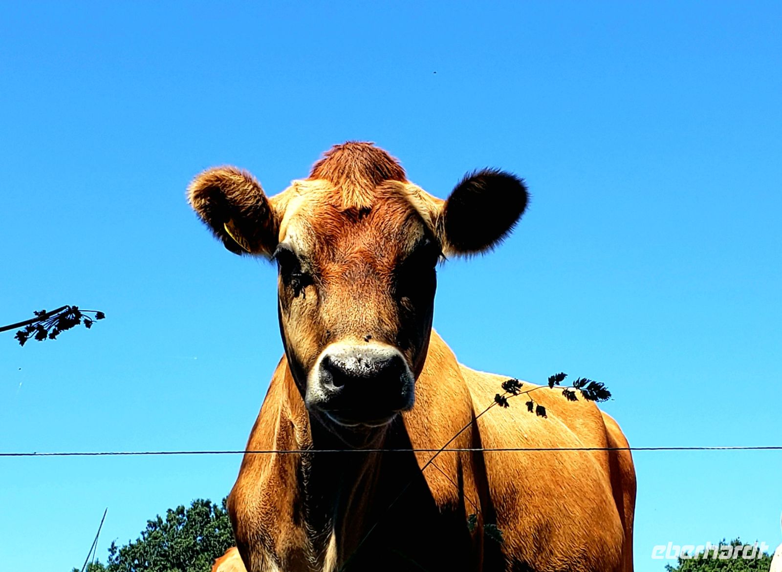 Vanessa erzählt im Bus gerade, dass wir jetzt versuchen, endlich eine Jersey Kuh vor die Linse zu bekommen, da wir bisher noch keine einzige gesehen haben, da taucht hinter der Kurve eine ganze Herde auf! Jane muss sofort halten und alle Gäste stürzen aus dem Bus zur Fotosession mit den hübschen Kühen, welche uns mit ihren großen Augen und langen Wimpern anschauen. Das ist das Highlight des Tages! Beim nächsten Stopp gibt es eine Überraschung für die Gäste, die hier natürlich nicht verraten wird. Anschließend kehren alle glücklich ins Hotel zurück.