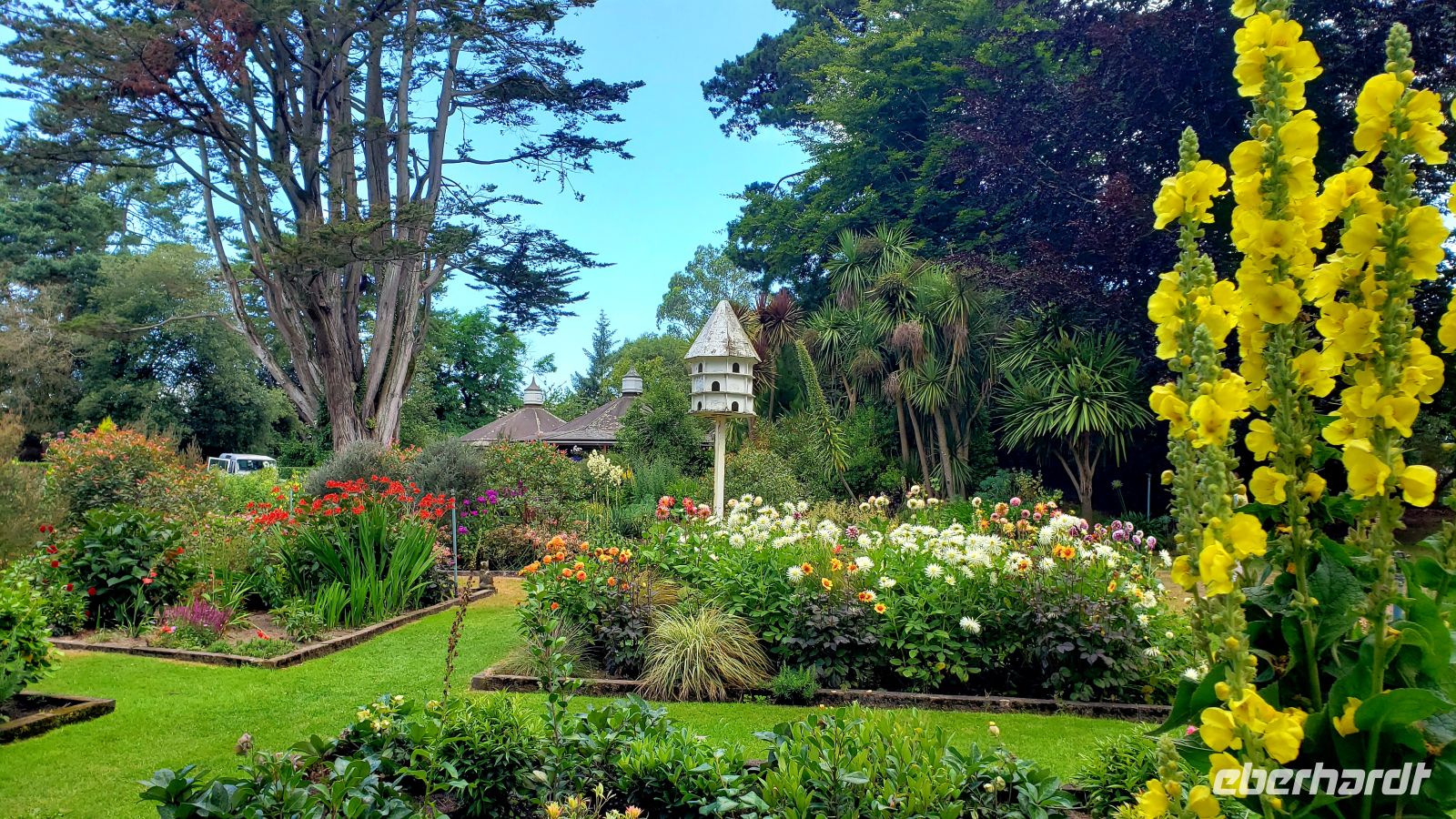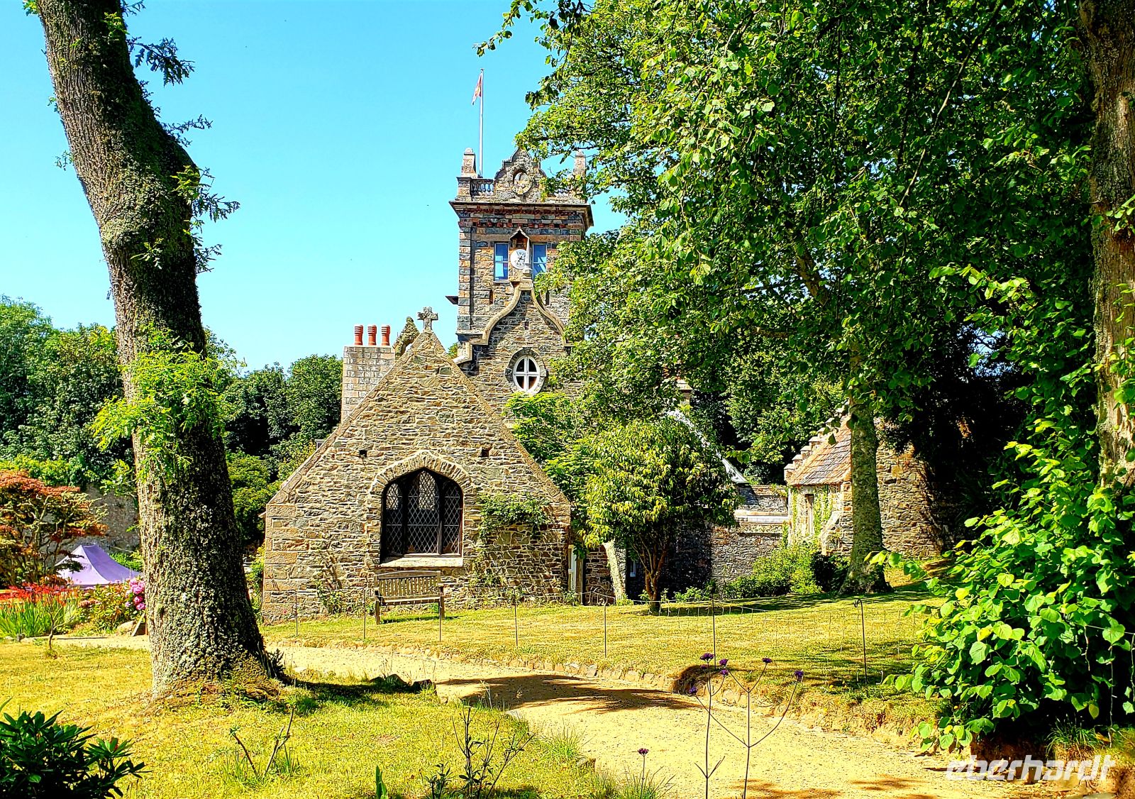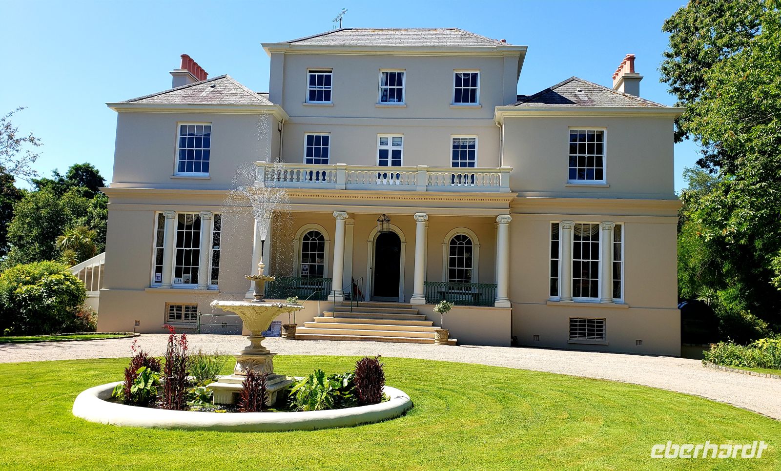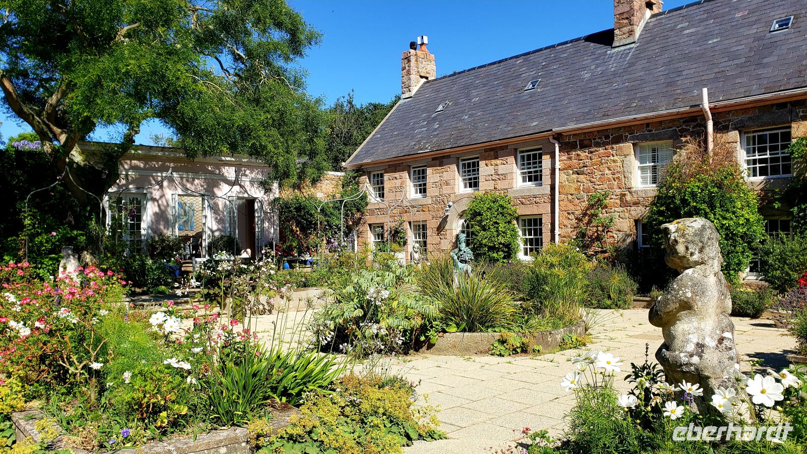 Um 9.30 Uhr holt Vanessa uns heute vom Hotel ab und mit dem Kleinbus geht es los zur Gartentour. Wir besuchen zwei sehr unterschiedliche private Gärten, die Eigentümer führen uns persönlich herum und erklären mit viel Enthusiasmus die Historie der weitläufigen Gartenanlagen und der Gebäude. Wir bewundern Parkanlagen, Gemüse- und Blumengärten, Gewächshäuser und Brunnen. Alle Gäste sind beeindruckt von so viel Schönheit. Anschließend gibt es Mittagessen in einem historischen Pub mit Blick auf die Portelet Bucht. Von oben hat man eine atemberaubende Aussicht auf den Strand und skurrile Felsformationen. Einige Gäste gehen nach dem Essen die lange Treppe hinunter zum Strand für einen kurzen Spaziergang. Danach machen wir eine kurzen Stopp an der berühmten Glaskirche. Weiter geht es zur Eric Young Orchideen Sammlung, eine kleine, aber sehr feine Ausstellung in einem Gewächshaus mit kleinen Wasserfällen.