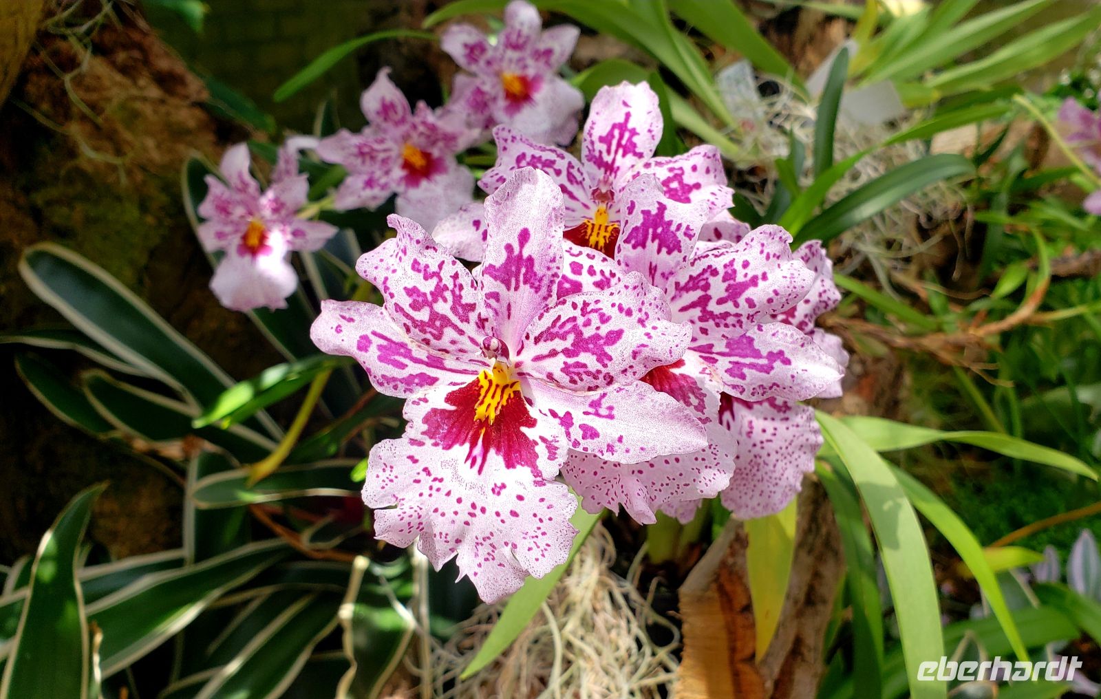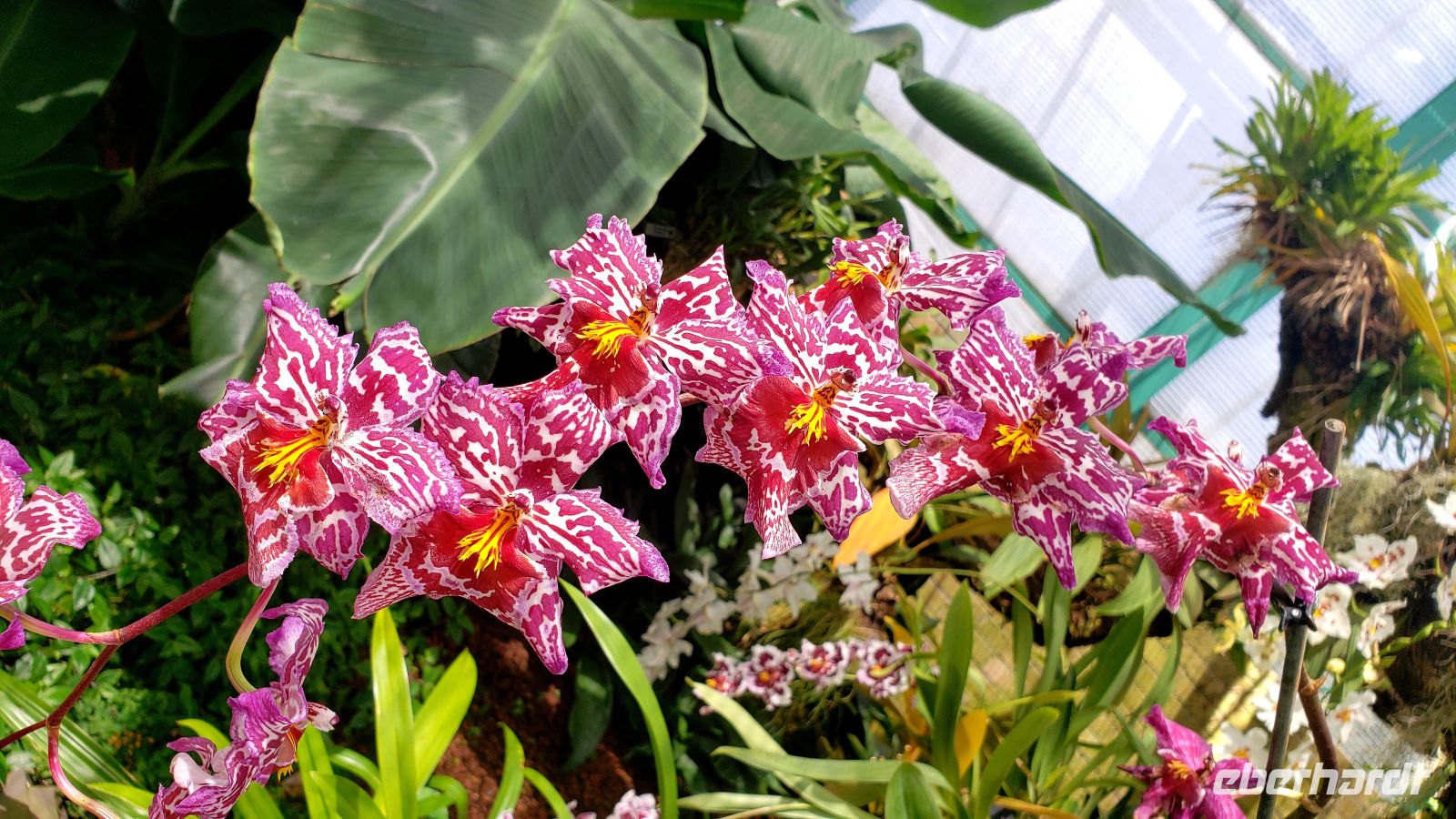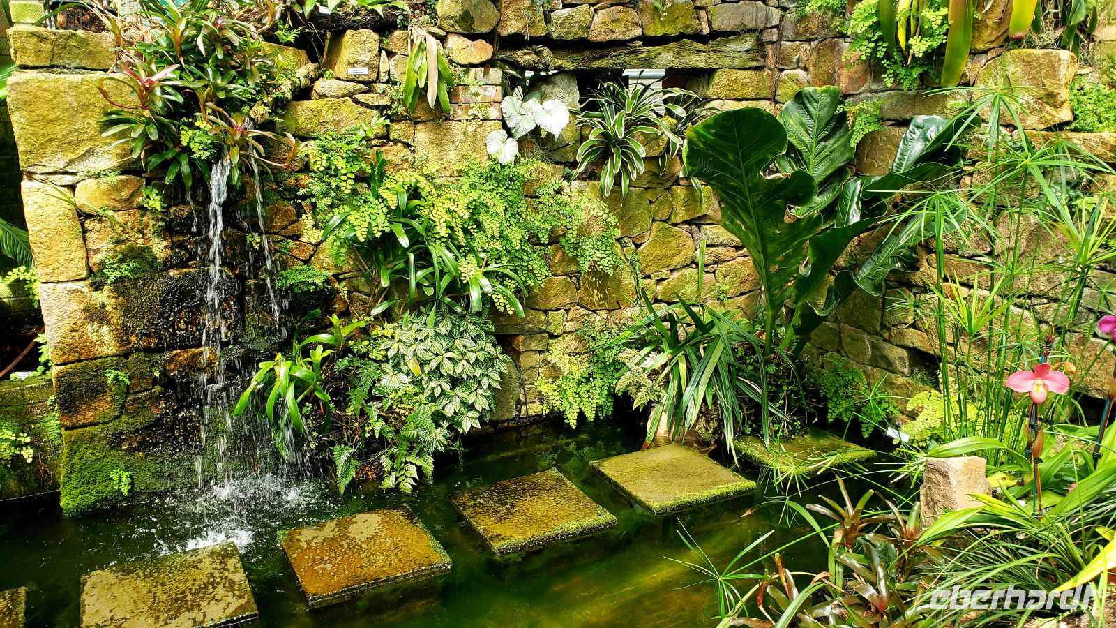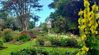 Um 9.30 Uhr holt Vanessa uns heute vom Hotel ab und mit dem Kleinbus geht es los zur Gartentour. Wir besuchen zwei sehr unterschiedliche private Gärten, die Eigentümer führen uns persönlich herum und erklären mit viel Enthusiasmus die Historie der weitläufigen Gartenanlagen und der Gebäude. Wir bewundern Parkanlagen, Gemüse- und Blumengärten, Gewächshäuser und Brunnen. Alle Gäste sind beeindruckt von so viel Schönheit. Anschließend gibt es Mittagessen in einem historischen Pub mit Blick auf die Portelet Bucht. Von oben hat man eine atemberaubende Aussicht auf den Strand und skurrile Felsformationen. Einige Gäste gehen nach dem Essen die lange Treppe hinunter zum Strand für einen kurzen Spaziergang. Danach machen wir eine kurzen Stopp an der berühmten Glaskirche. Weiter geht es zur Eric Young Orchideen Sammlung, eine kleine, aber sehr feine Ausstellung in einem Gewächshaus mit kleinen Wasserfällen.