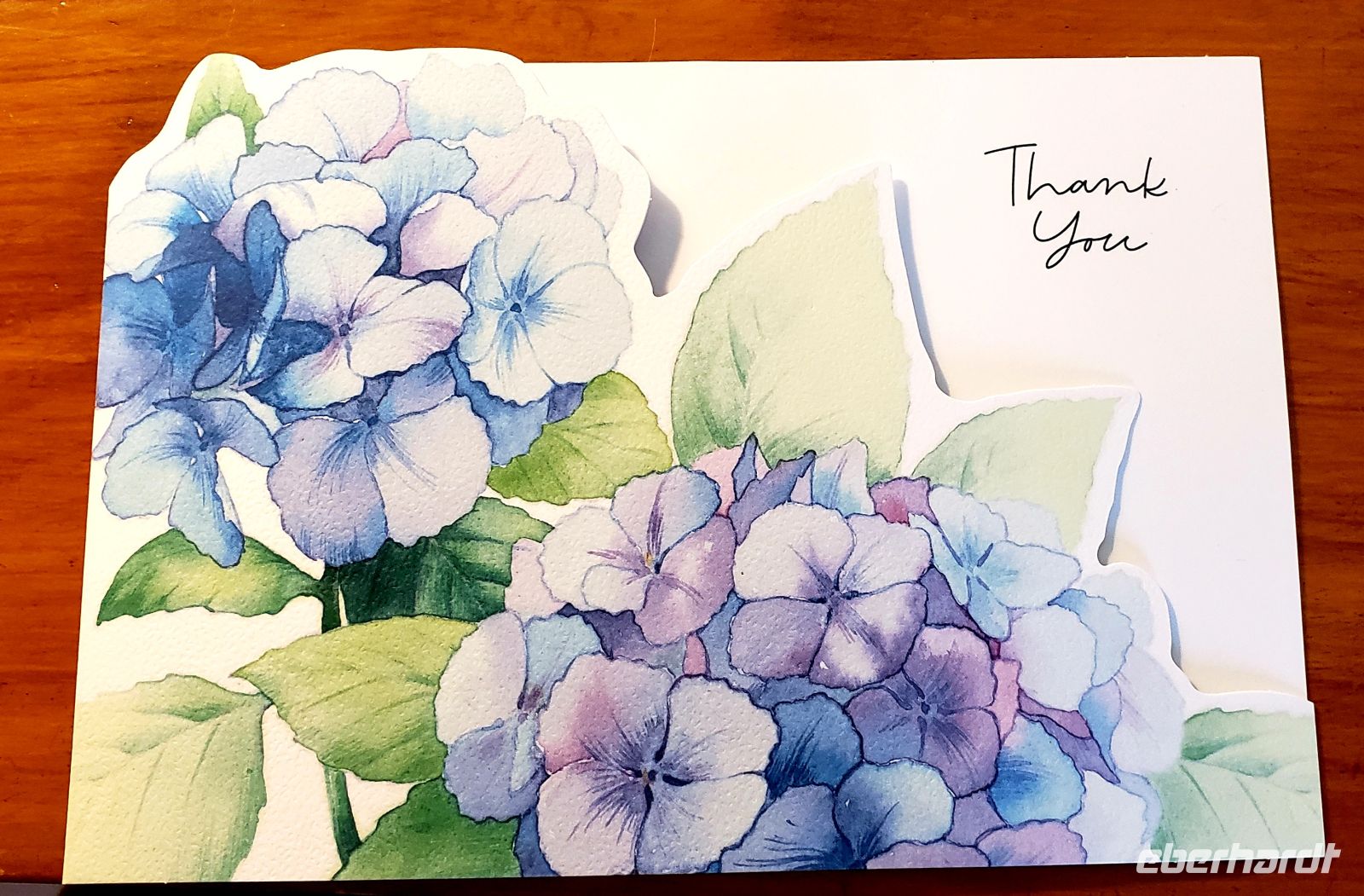 Im Hotel sitzen wir noch eine Weile zusammen und verabschieden uns bereits offiziell, da es auf Flughäfen ja eher hektisch zugeht. Die Gruppe schenkt mir eine hübsche Karte zum Abschied, auf der alle unterschrieben haben. Auf der Karte sind passenderweise Hortensien abgebildet, die haben wir in aller Pracht auf allen Inseln häufig gesehen! Unser Flug nach München hat eine Stunde Verspätung, in München verteilen sich alle Gäste eilig, um die Anschlussflüge zu erreichen.