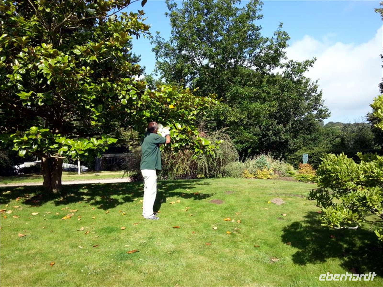 Nach dem Frühstück holte uns Ernst zur Gartentour auf Jersey ab. Auf der Fahrt zur Eric Young Orchid Foundation hatte er noch viel zu erzählen. Beeindruckend ist die Orchideenschau sehr.
