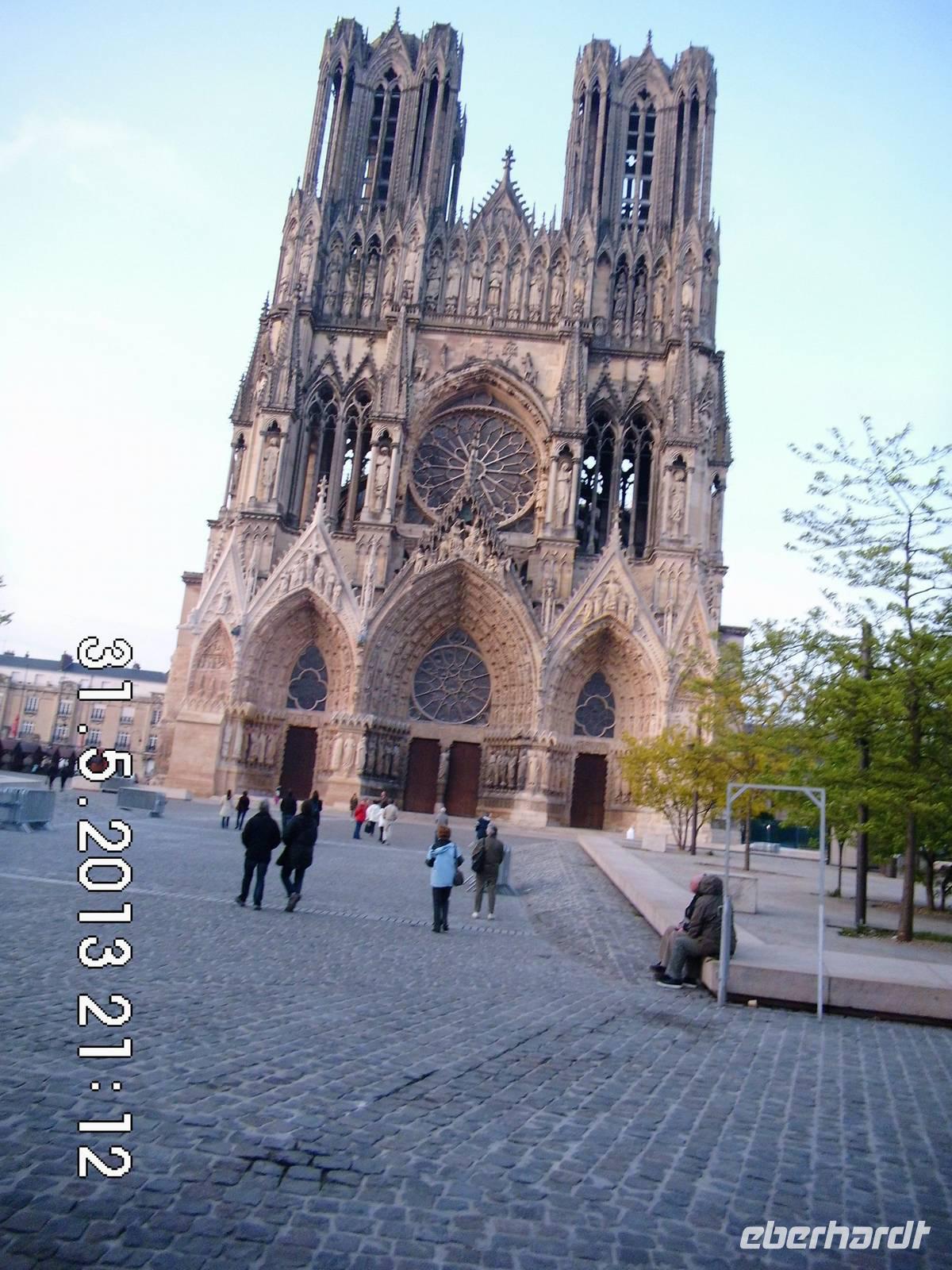 Die Region Champagne-Ardenne schließt sich an. Wir durchfahren eine liebliche Landschaft und im Raum Reims sehen wir auch einige Weinberge. Hier ist der berühmte Schaumwein beheimatet und nur Sekt aus Trauben dieser Region darf sich laut einer Verordnung des Versailler Vertrages von 1919 „Champagner" nennen. Am frühen Abend erreichen wir Reims, die bedeutendste Stadt der Region Champagne und mit der Kathedrale Notre Dame über Jahrhunderte Krönungsort der französischen Könige. Nach dem Abendessen im Hotel machen wir bei regenfreiem Wetter (endlich) einen Spaziergang zur berühmten gotischen Kathedrale. Wir staunen insbesondere über das mit Reliefs und Figuren reich verzierte Hauptportal, ein großartiges Beispiel hochgotischer, mittelalterlicher Bidhauerkunst.