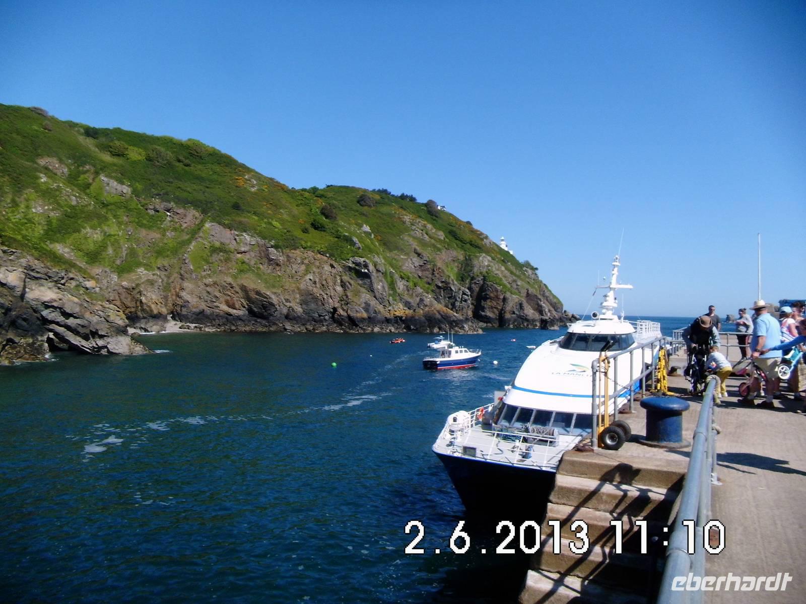 Guernsey-Ausflug mit Francisca. Die 19 Guernsey-Fahrer werden bereits 7,00 Uhr abgeholt und checken am Elizabeth Port für den Tagesausflug auf die zweitgrößte der Kanalinseln ein.