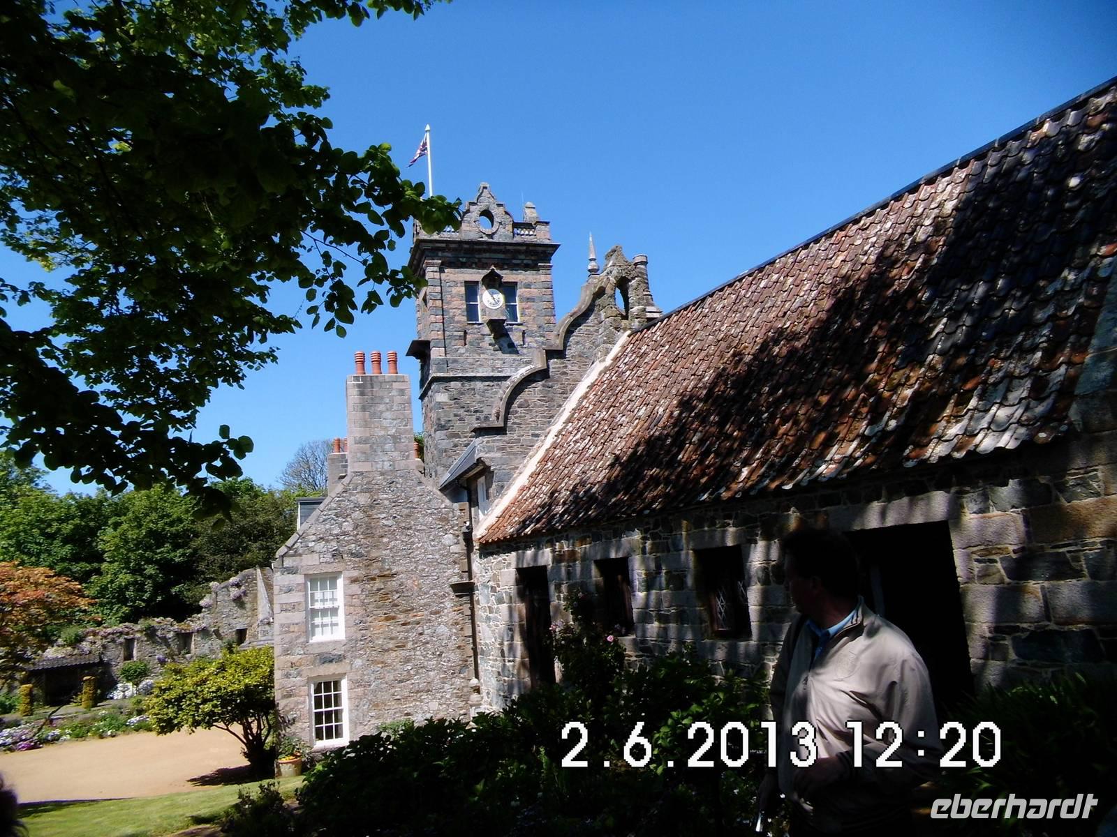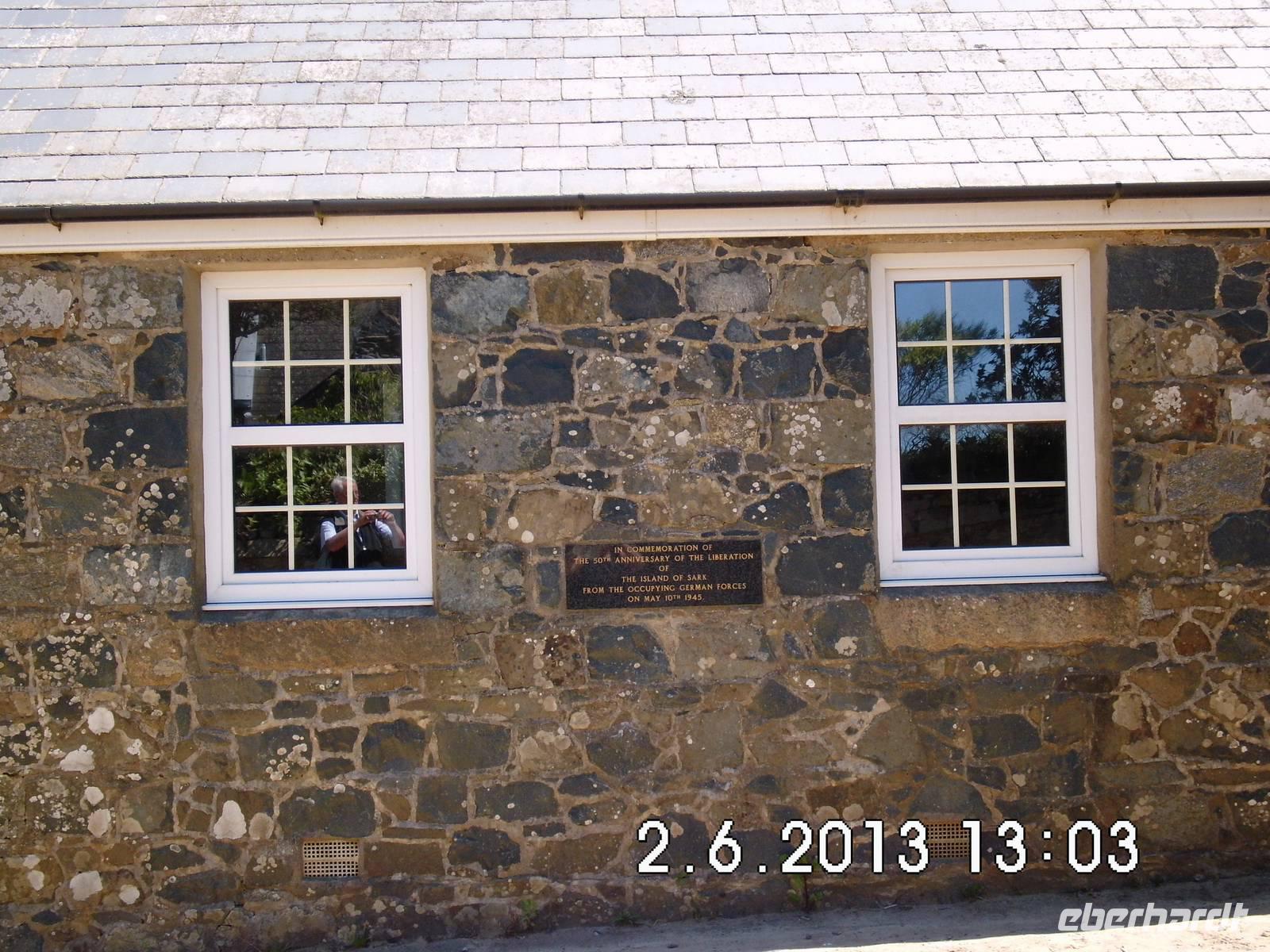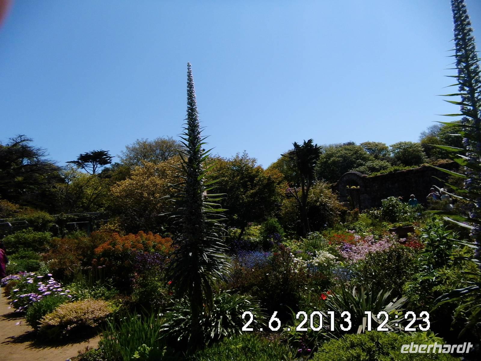 Der erste Tag auf der Insel beginnt gleich mit einem zeitigen Frühstück, denn für uns ist die Fähre nach Sark gebucht. Bei herrlichem Wetter und relativ ruhiger See können wir die Fahrt genießen und betreten dann feudalen Inselgrund . Mit einem Traktor geht es dann auf der autofreien Insel auf das knapp 100 Meter über dem Meeresspiegel liegende, knapp 6 Quadratkilometer große Hochplateau bis zur „Main Road". An diesem Tag begleitet uns Francisca zu allen Sehenswürdigkeiten und berichtet viel Interessantes über die Insel. Seit dem 16.Jahrhundert wird die Insel in männlicher Erbfolge von einem Seigneur regiert, das Land ist in 40 Pachtgrundstücke aufgeteilt und hat 600 Einwohner. Wir machen einen Spaziergang zur Seigneurie, dem Amtssitz des Seigneurs : ein Herrenhaus aus dem frühen 18. Jhd mit parkartigem Garten erwartet uns . Wir bestaunen die kunstvoll angeLegten Beete mit den exotischsten Pflanzen und Blumen, einen Irrgarten, ein Taubenhaus sowie