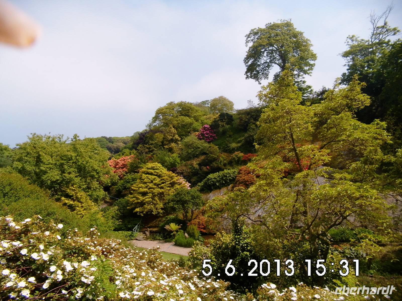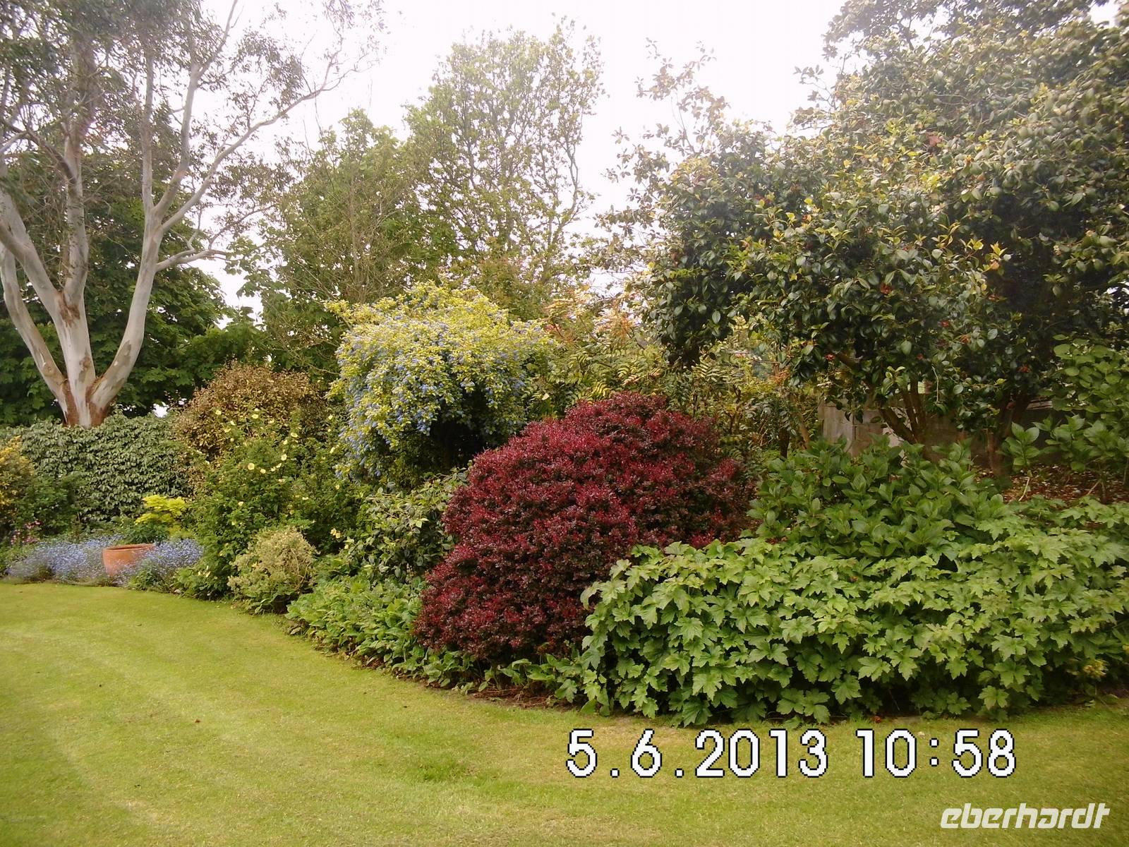 Es wartet ein besonderes Kleinod auf uns, der Garten von Mrs.Lea. Die 83-jährige couragierte Dame stößt etwas später zu uns und führt uns durch den wunderschönen Garten mit Pflanzen und Blumen u.a. aus Neuseeland und Madeira. Dank des milden Klimas gedeiht hier eine ganz exotische Flora.