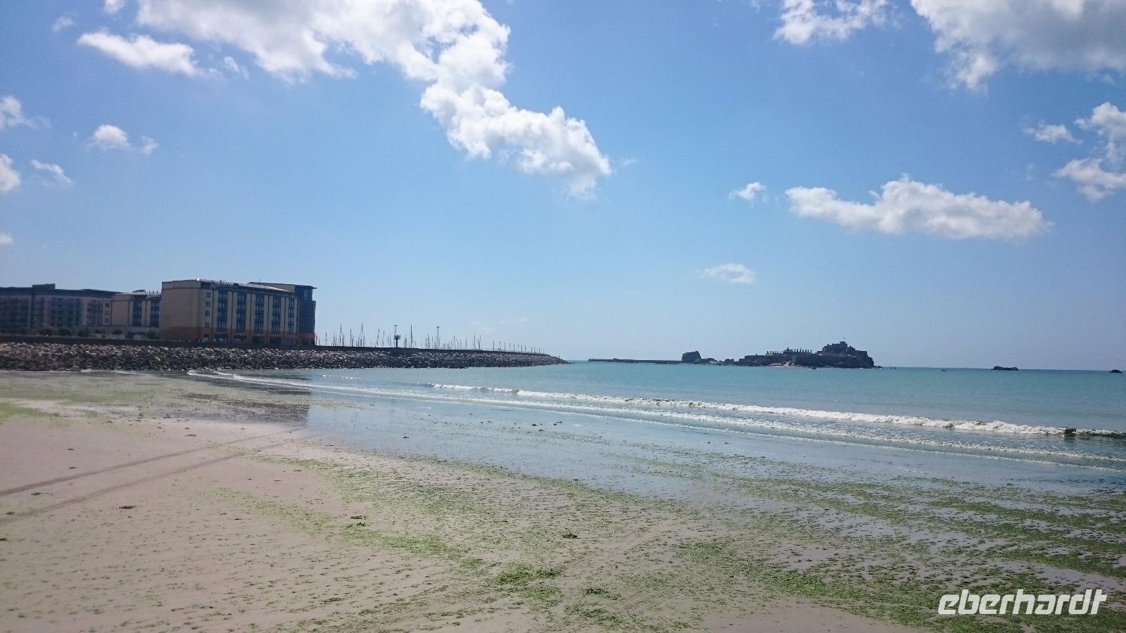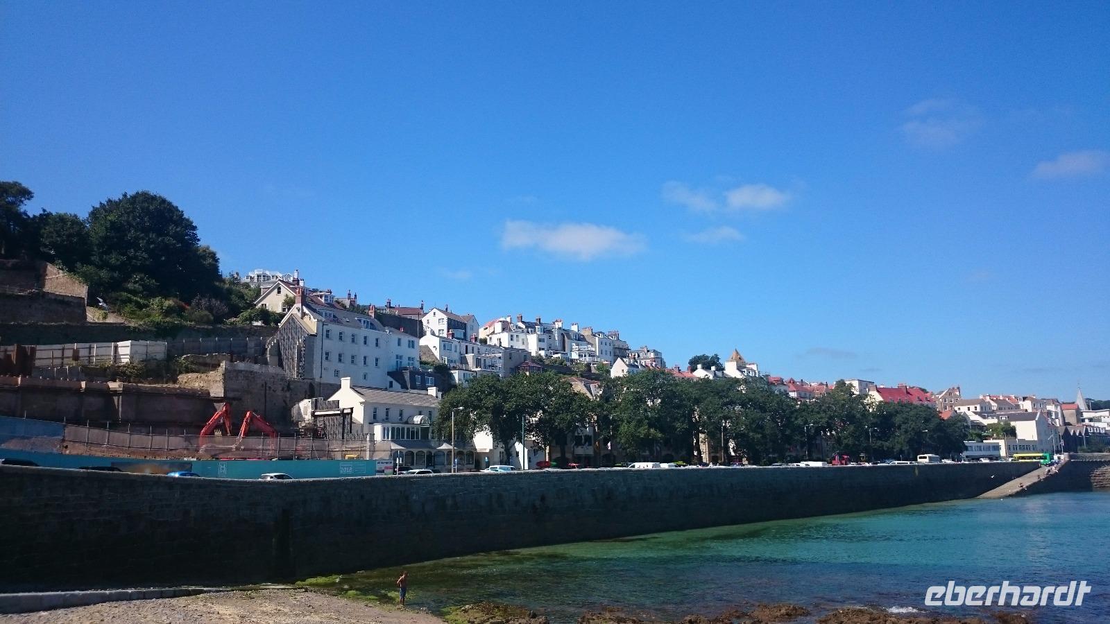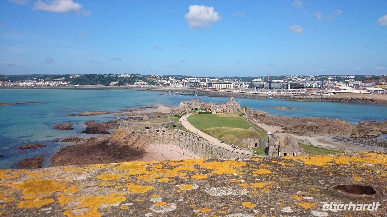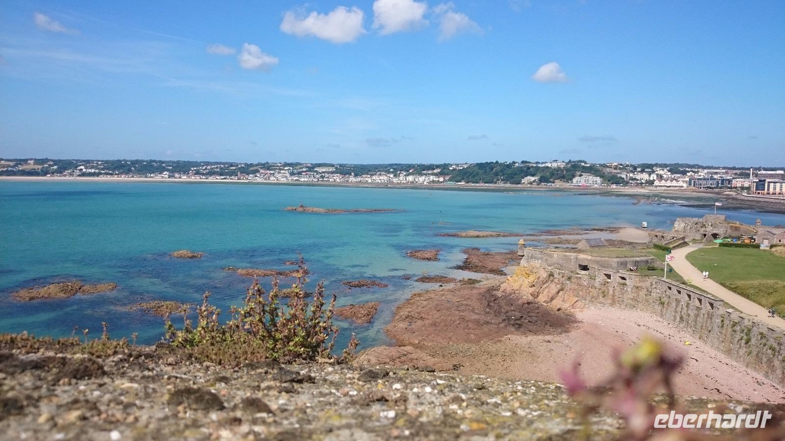 Viele Gäste spazierten gemeinsam mit mir zu den Markthallen in St Helier. Später traf man sich beim Kaffee oder auf Elisabeth Castle wieder. Der Spaziergang über das gerade vom Meer freigegebene Watt war auch wirklich grandios. Mit gutem Appetit erfreuten wir uns am Abend an den hervorragenden Kochkünsten der Hotelküche.