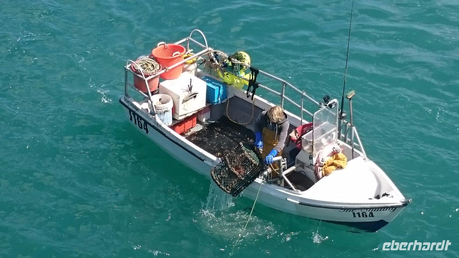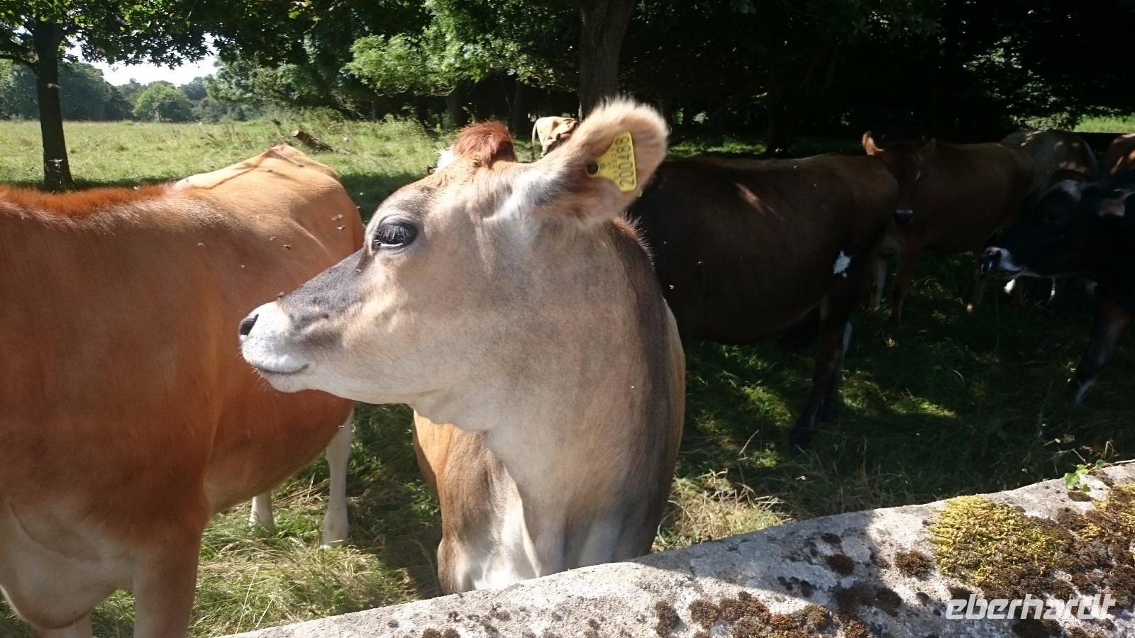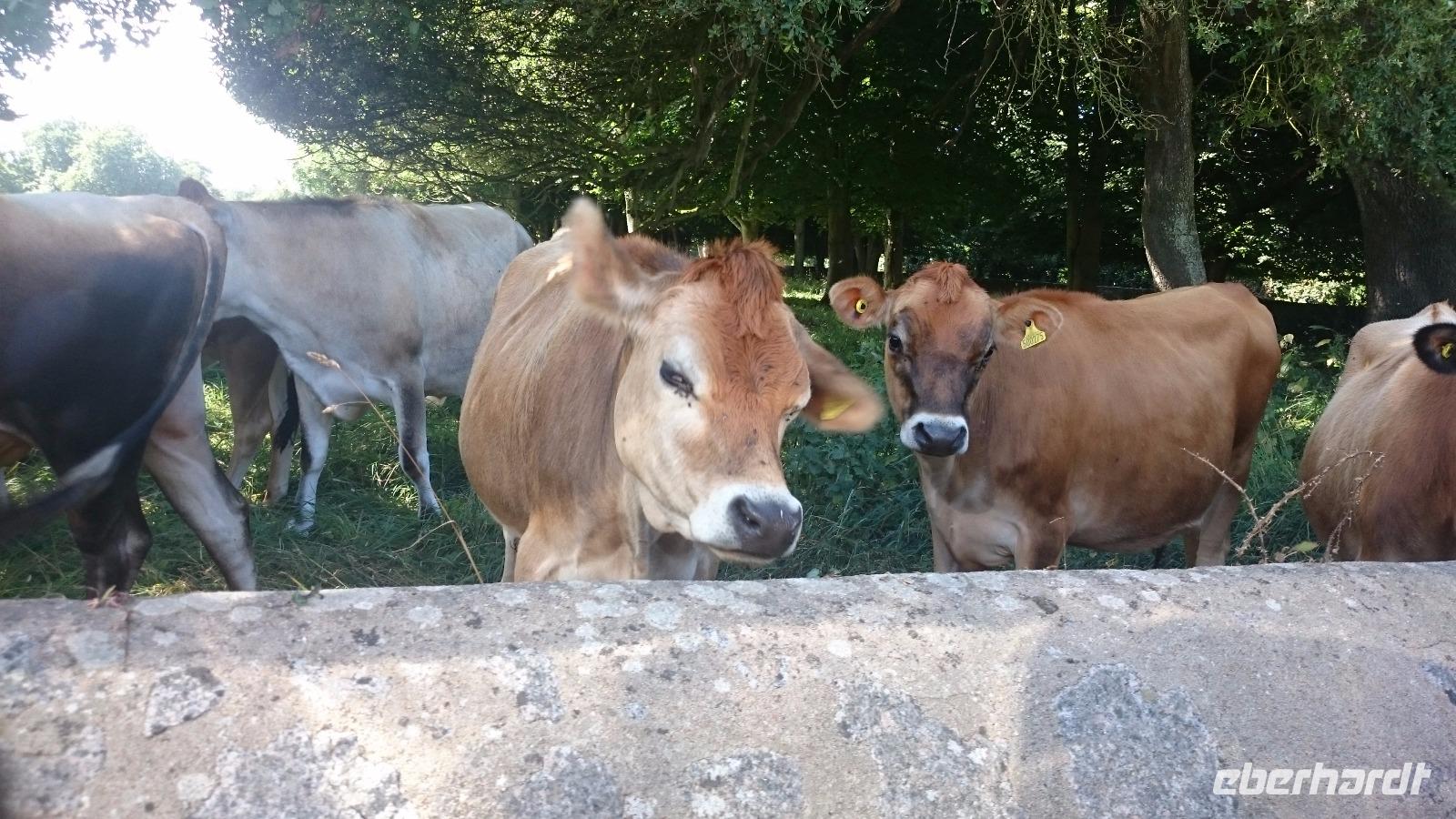 Am nächsten Morgen erkunden wir unter fachkundiger Leitung von Heidi und Ernst die Insel. Bei Fotostopps erleben wir die schönsten Plätze von Jersey wie den Hafen von Gorey, Bouley Bay, die Ruinen von Grosnez Castle, den Corbiere Leuchtturm und St Brelades Church. Mittags blieb Zeit für einen spektakulären Fischimbiss wie Hummersalat und auch für eine Tasse Kaffee gab es die richtige Strandpromenade mit Ausblick. Zwischendurch trafen wir ganz prominente Bewohner von Jersey: die Jersey Kühe - bekannt für die ausgezeichnete Qualität ihrer Milch. So war es kein Wunder, dass Jersey Eis und Jersey Käse mit zu den beliebtesten Desserts im Hotel gehörten.
