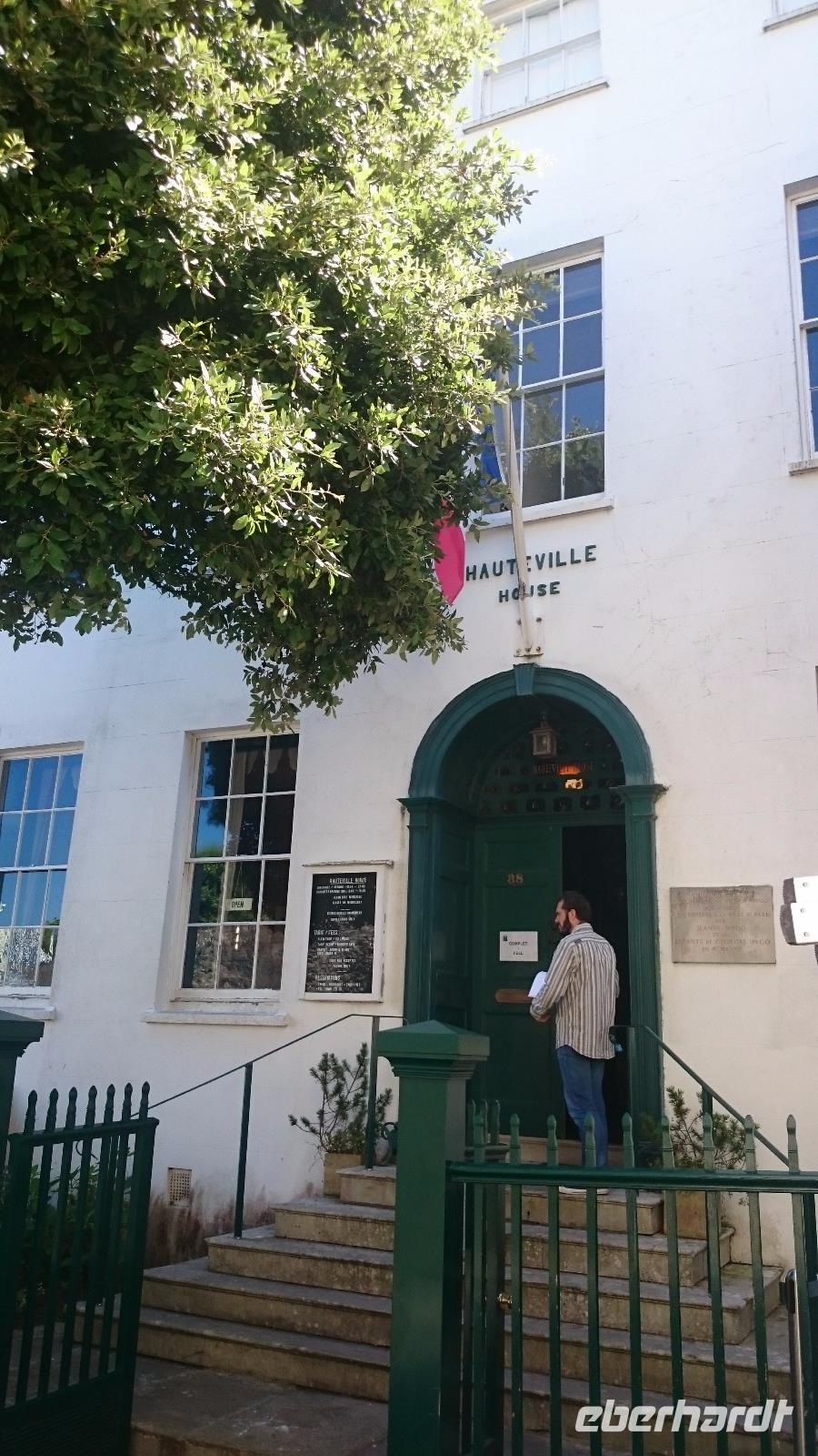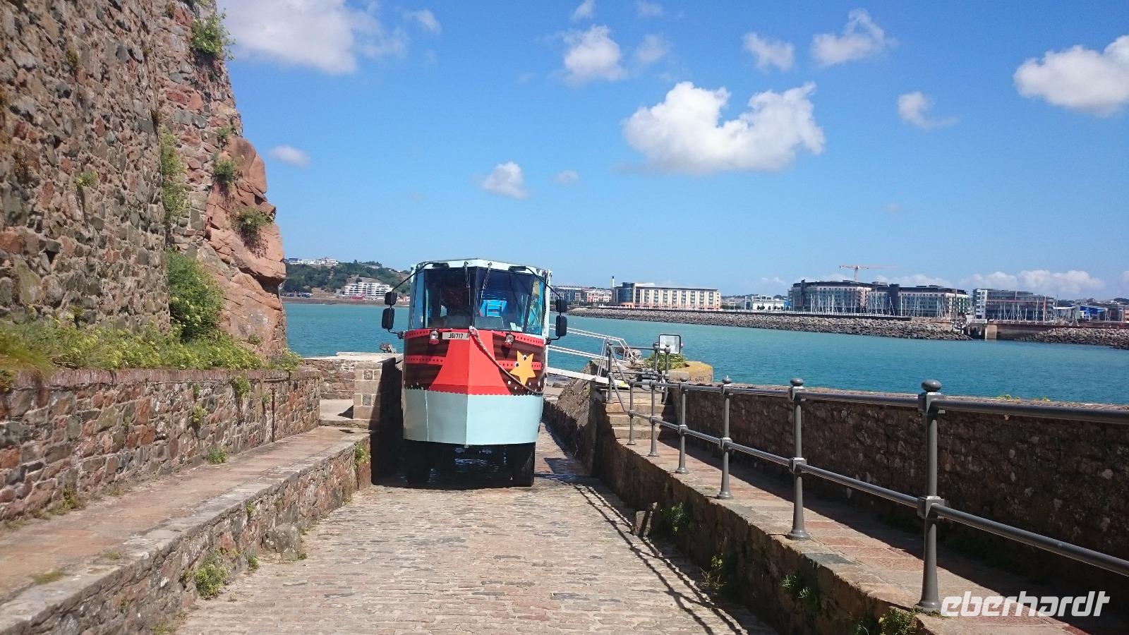 Nach nur zwei Stunden Fährüberfahrt erreichen wir Jersey. In St Helier, der Inselhauptstadt von Jersey werden wir bereits ungeduldig von Heidi und Ernst erwartet, die uns mit unserem Gepäck in das Hotel Ommaroon bringen. Nach einem ausgezeichneten Abendmenü gelangen wir mühelos in unsere komfortablen Zimmer und genießen die Ruhe in der Meeresbucht.