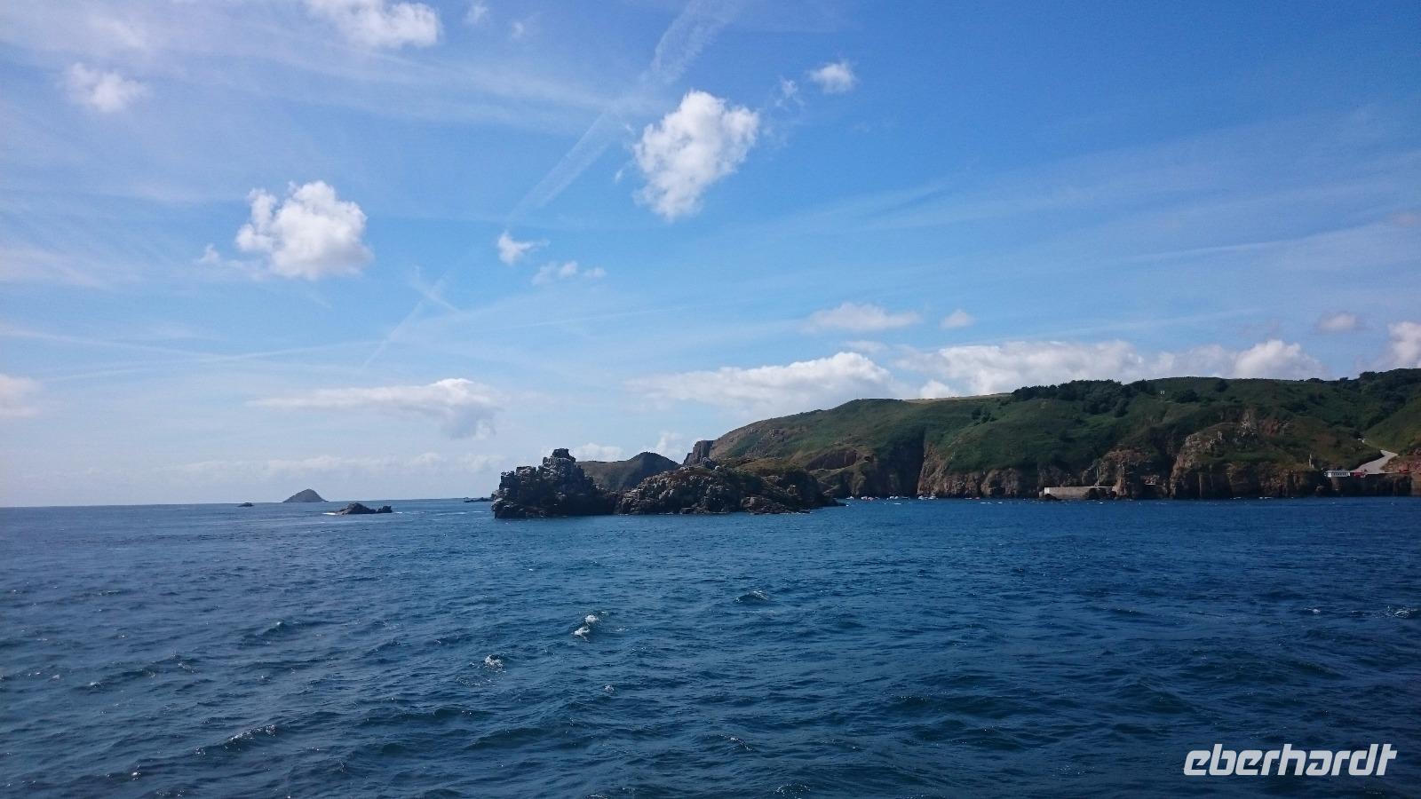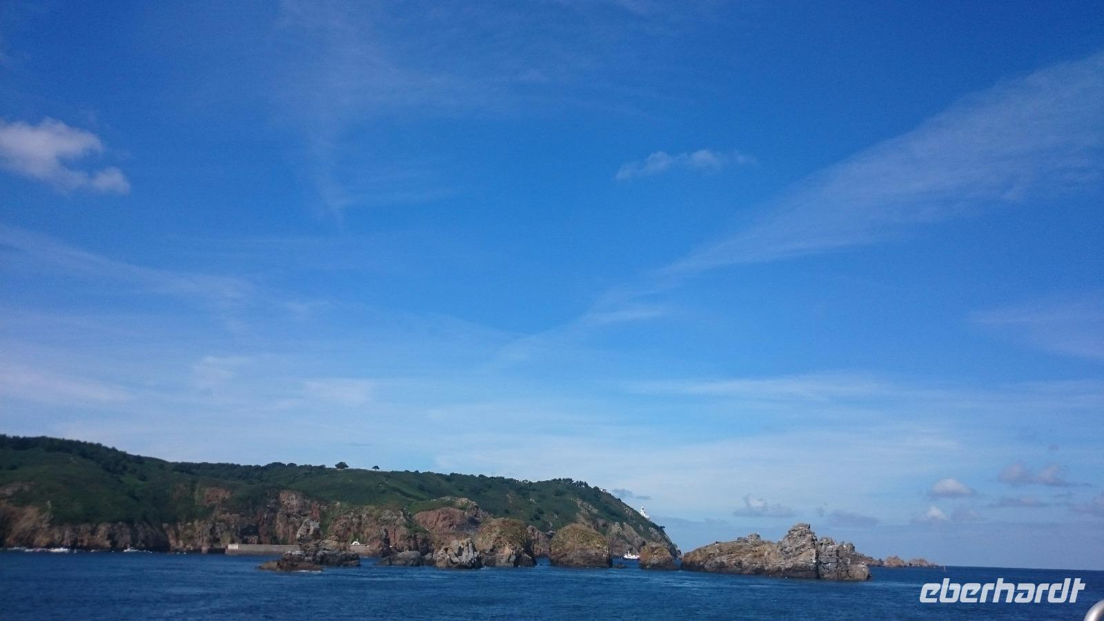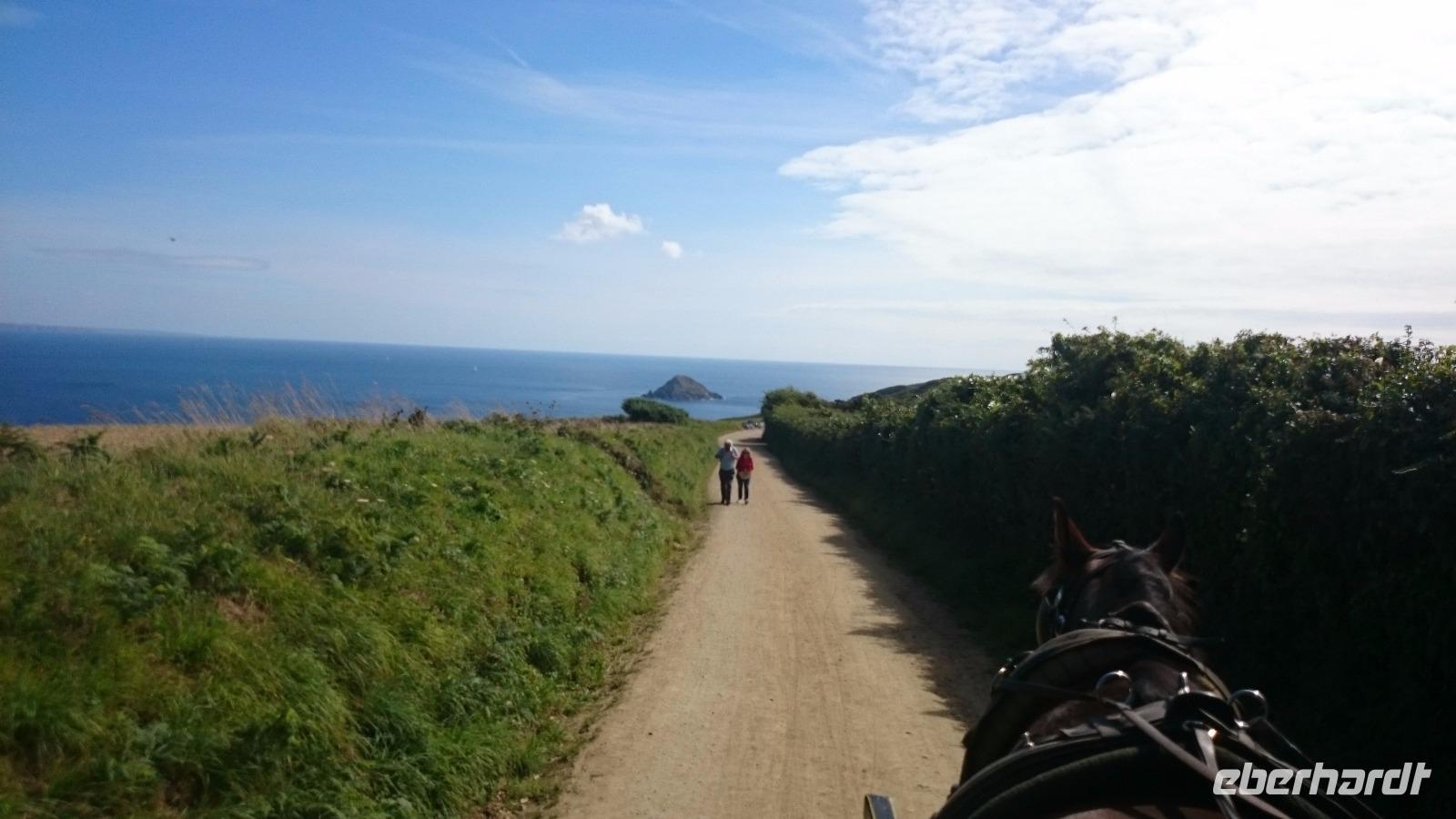 Mit Spannung erlebten wir die beschwingte Überfahrt nach Sark. Eine feudalistisch regierte Insel - was sollte das sein? Als erstes entpuppte sich der Nahverkehr als Traktor, später durften wir dann die um einiges bequemere Kutsche nutzen. Asphaltierte Straßen fand am eher nicht, dafür umweltfreundliche Fahrwege. Und von unserer Kutscherin erfuhren wir, dass Sarker auch eher ein eigenes Boot besitzen als ein Auto.