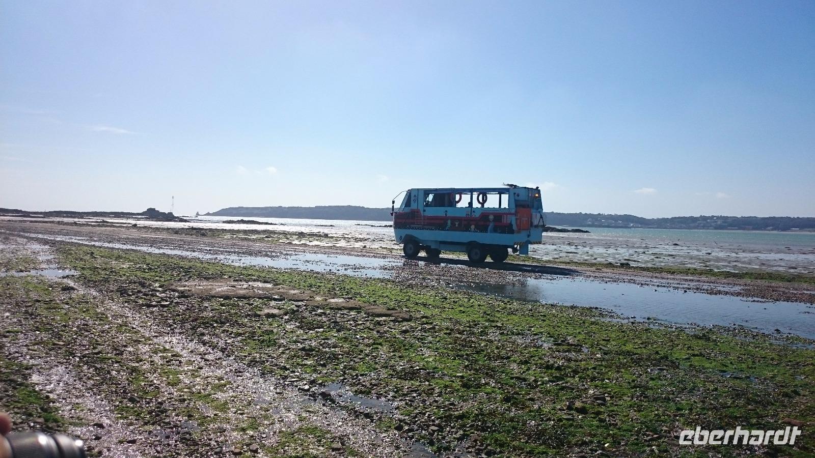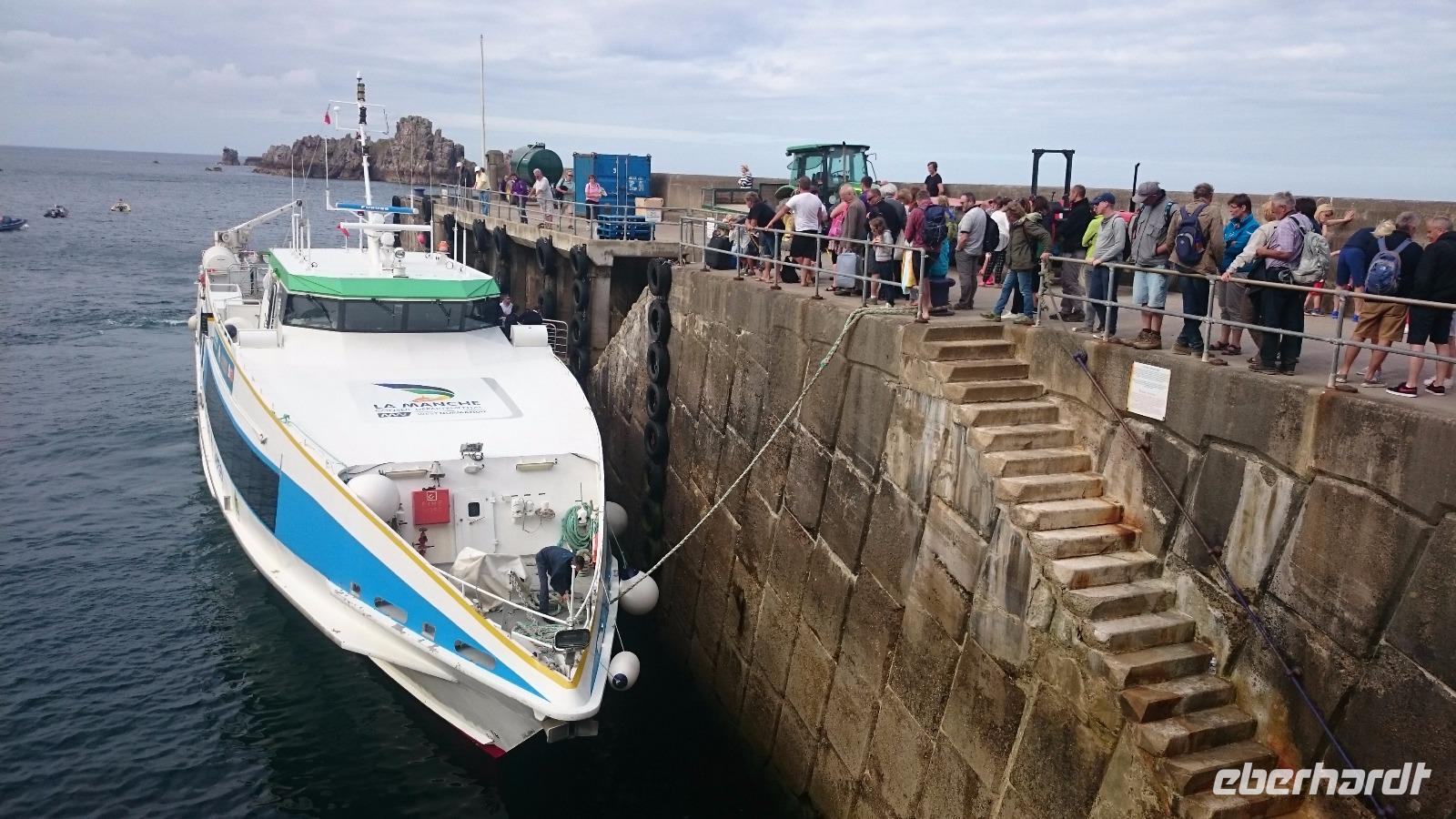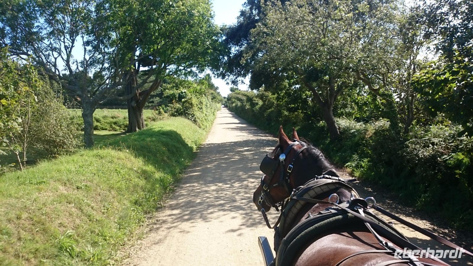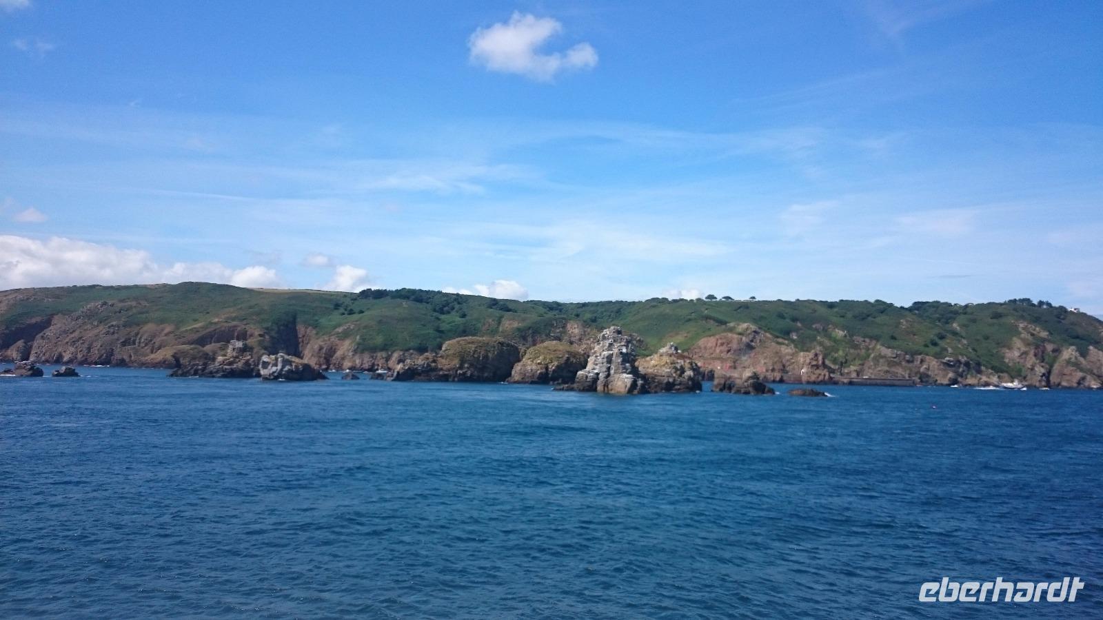 Mit Spannung erlebten wir die beschwingte Überfahrt nach Sark. Eine feudalistisch regierte Insel - was sollte das sein? Als erstes entpuppte sich der Nahverkehr als Traktor, später durften wir dann die um einiges bequemere Kutsche nutzen. Asphaltierte Straßen fand am eher nicht, dafür umweltfreundliche Fahrwege. Und von unserer Kutscherin erfuhren wir, dass Sarker auch eher ein eigenes Boot besitzen als ein Auto.