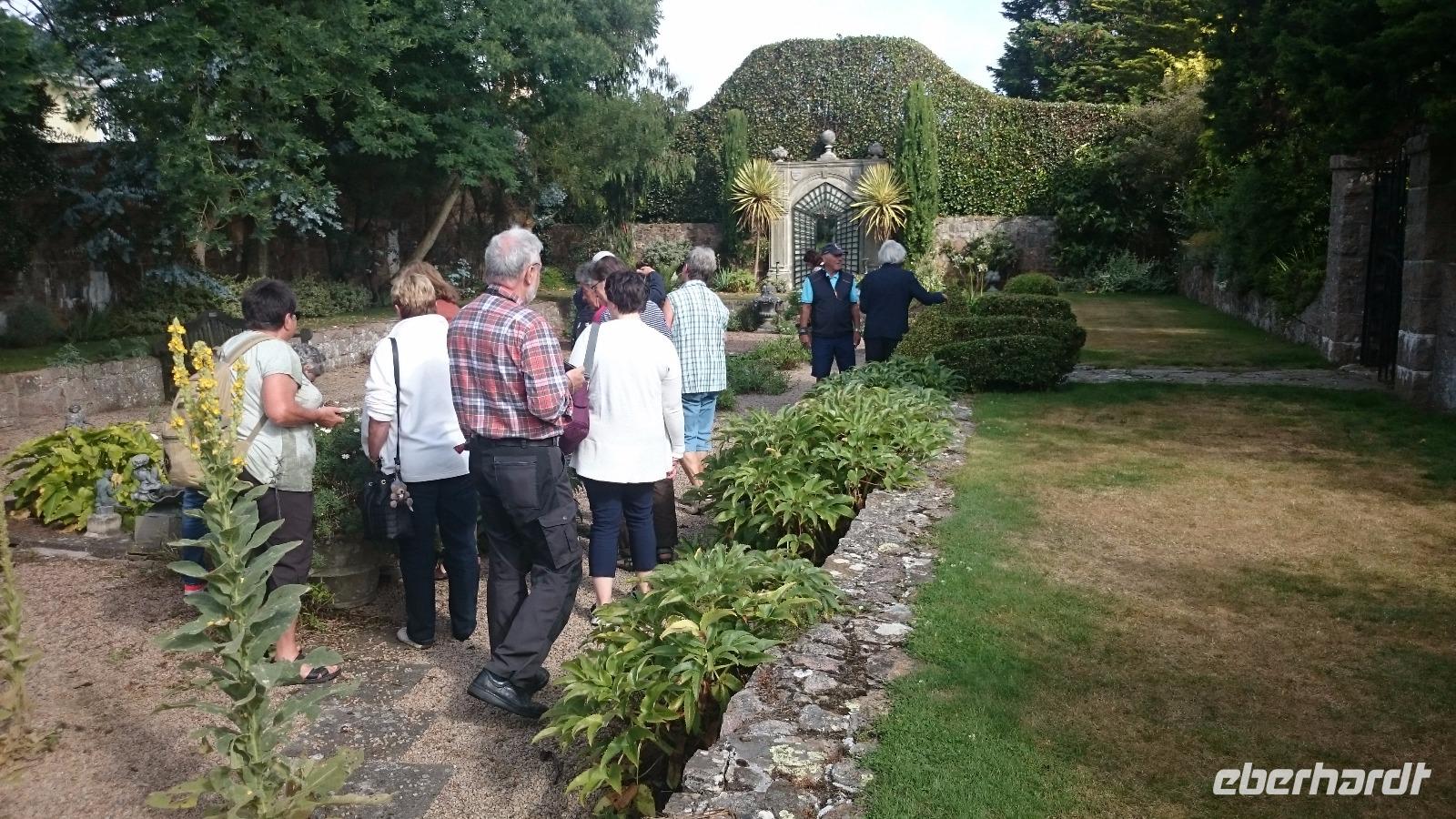 Wer denkt nur die Küstenbereiche sind auf Jersey einen Besuch wert, der irrt gewaltig. Im geschützten Landesinneren verstecken sich prachtvolle privat geführte Gartenanlagen. Dank der langjährigen Kontakte unserer örtlichen Reiseleiter besuchen wir zwei sehr unterschiedliche Gärten. Eine liebevolle Handschrift der gartenbegeisterten Mrs Lea erkennt man bereits beim Eintritt auf das Grundstück. Alles wirkt wie aus einem Guss. Der Wandel der Jahreszeiten bringt immer neue Bilder im Garten zum Vorschein. Voll Freude saugen wir einige Ideen in uns auf.
