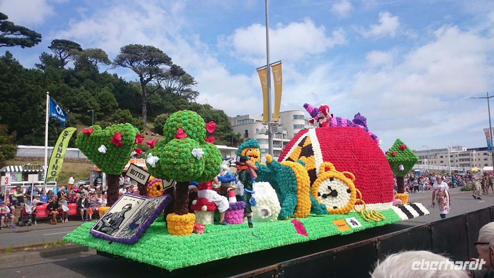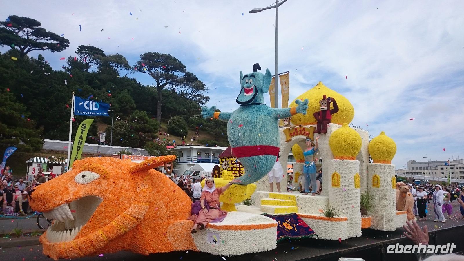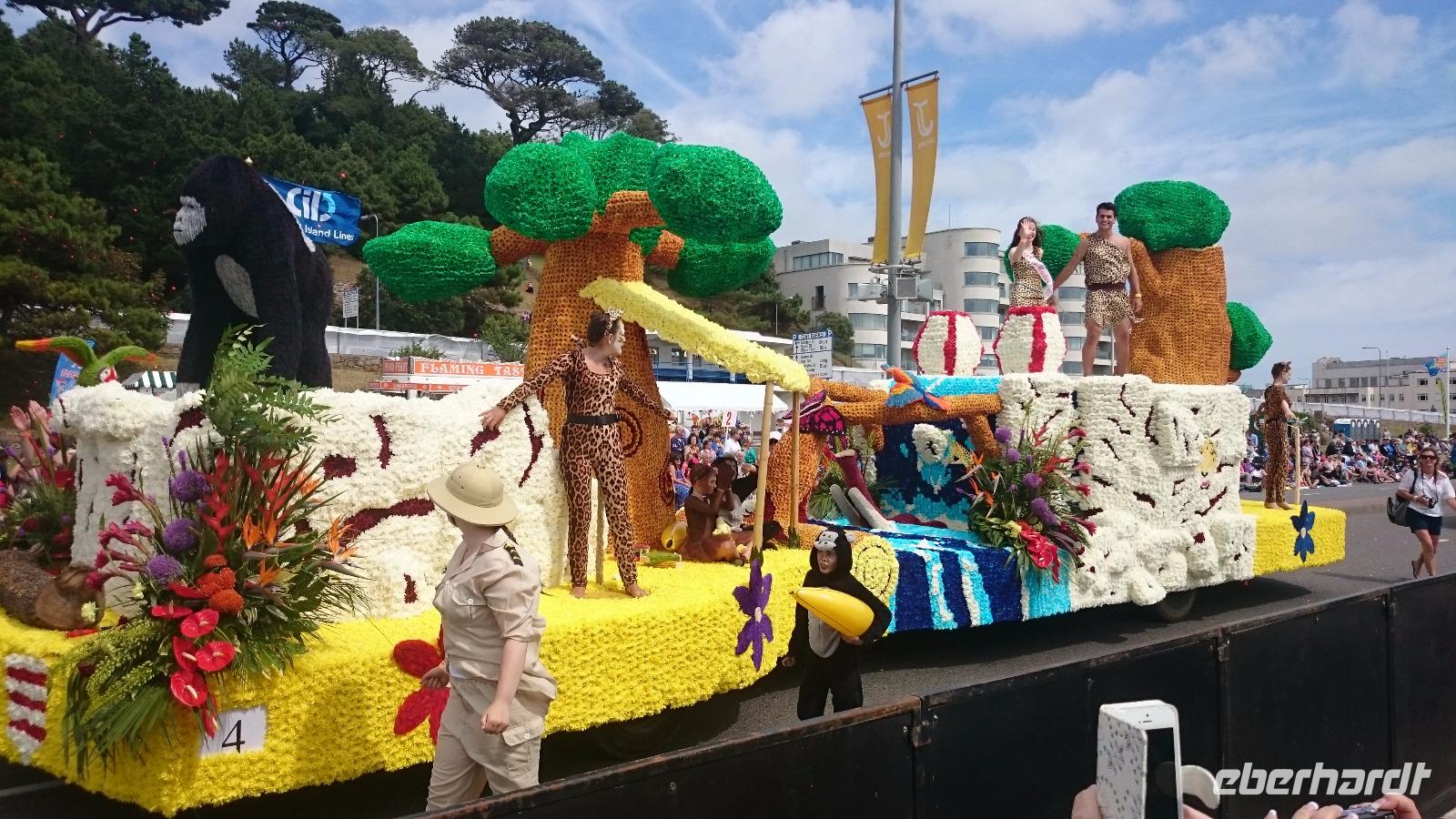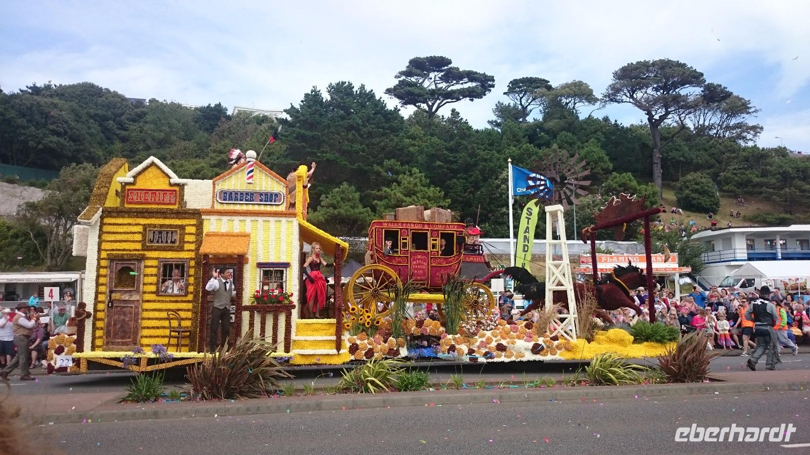 Doch was uns am Nachmittag beim Battle of Flower erwarten sollte, konnten wir nicht ahnen. Trotz eines plötzlich aufkommenden kalten Windes hielt es uns über zwei Stunden auf den hervorragenden Besucherplätzen. Prachtvolle Blumenwagen zu unterschiedlichsten Motiven wie Kosarenschiff, Western Salon, Dschungelbuch oder einfach mit Blumen geschmückte Autos und Traktoren fuhren an uns vorüber. Der Beifall des Publikums war frenetisch, angeheizt von viel LiveMusik. am ende kürte das Publikum den schönsten Wagen. ein wahrlich einmaliges Ereignis, was man erlebt haben sollte.