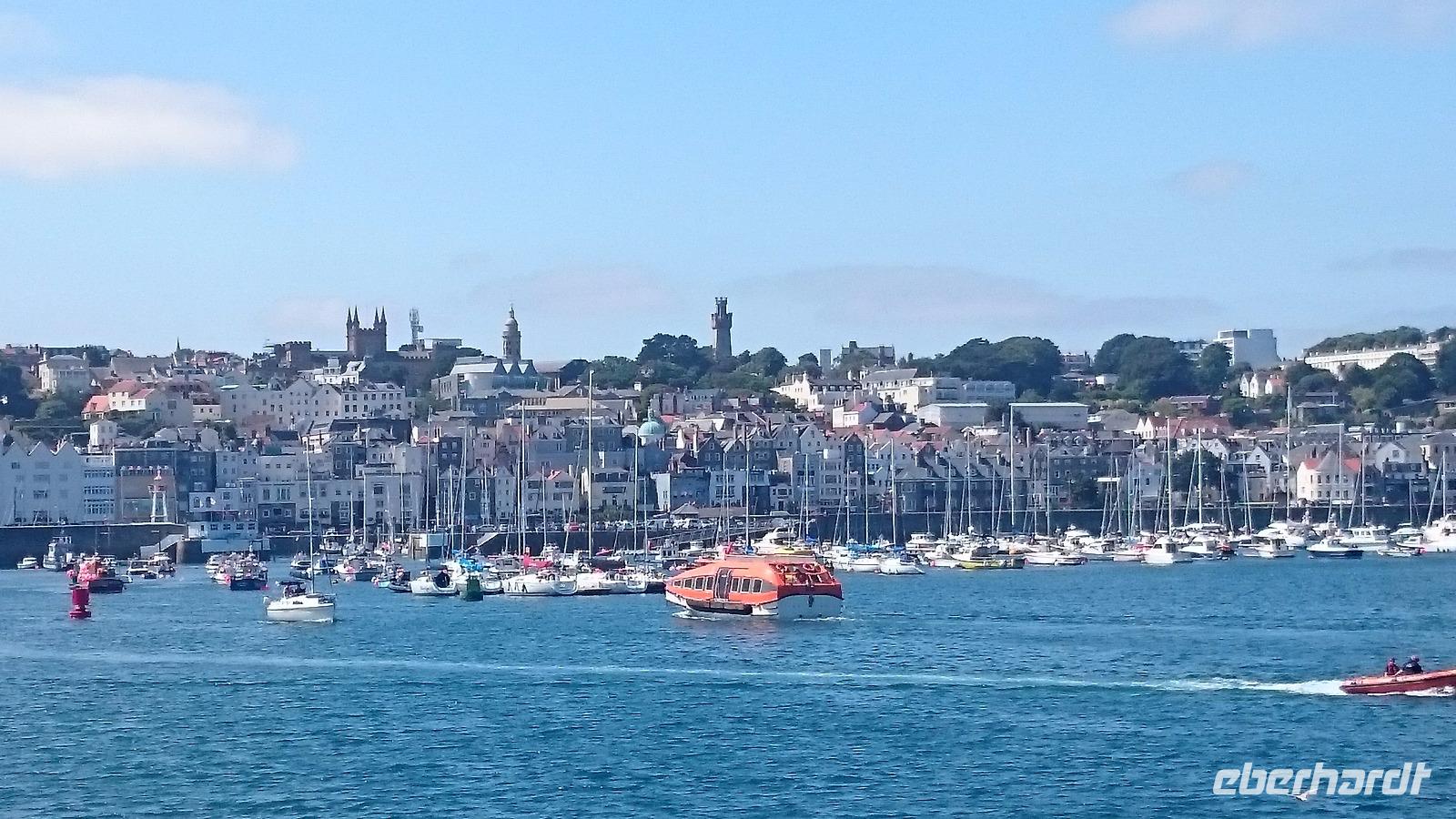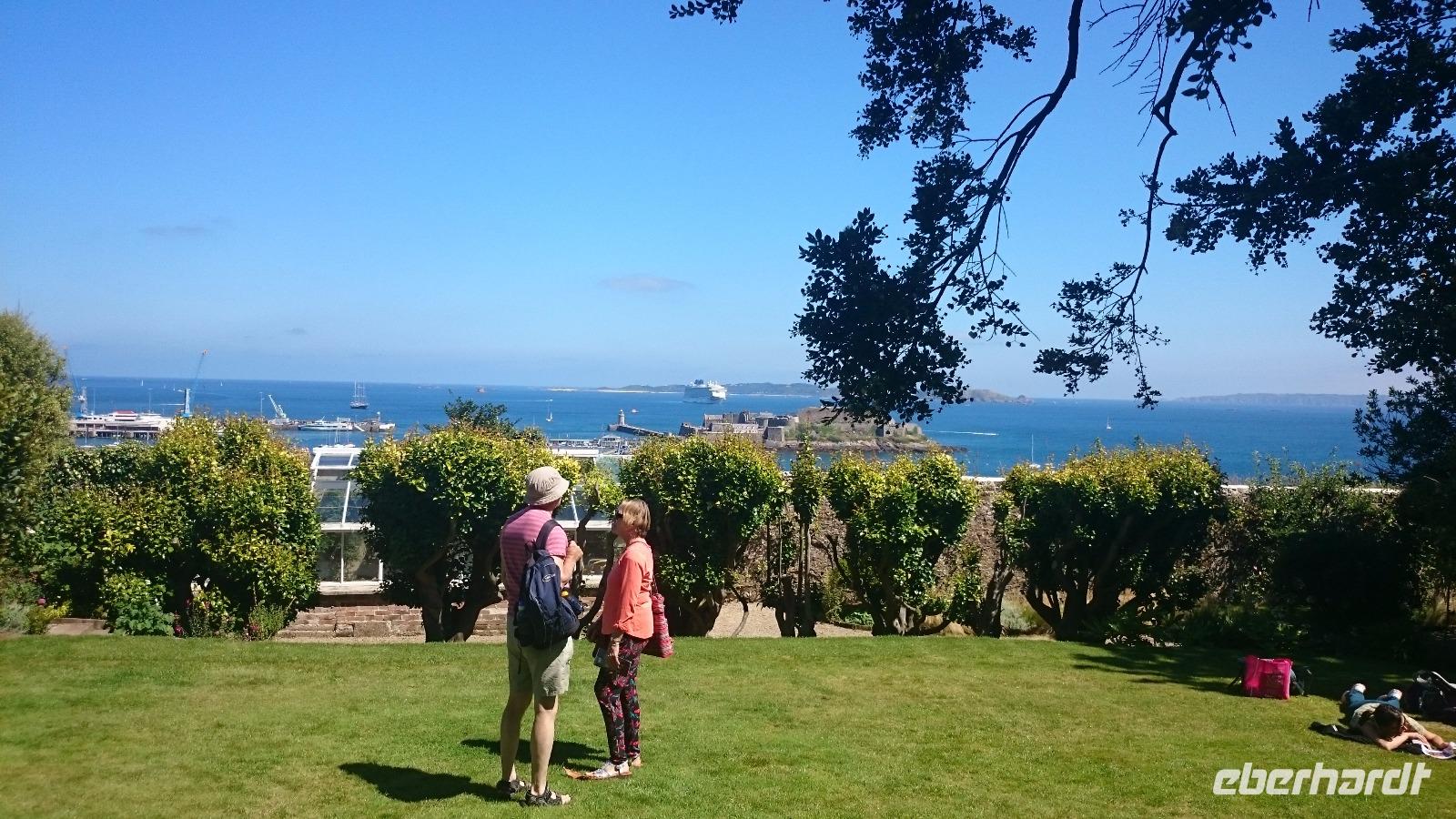 Noch einmal wollten wir die Fähre für einen Ausflug nutzen. Diesmal ging die Reise mit Heidi unserer örtlichen Reiseleiterin nach Guernsey. Alle Gäste haben sich für die Teilnahme an diesem fakultatifen Trip entschieden. Im Hafen von St Peter Port wartet bereits ein Bus mit dem wir die Hübsche Insel erkunden. Schöne Buchten und Strände, gepflegte kleine Ortschaften und immer wieder der beindruckende Blick aufs Meer, dafür kann man die Inselbewohner schon beneiden. Und auch St Peter Port, die Inselhauptstadt kann sich sehen lassen - ein Castle am Hafen, davor eine lange Mole und ein interessanter Jachthafen. In der hügeligen Altstadt findet man viele schöne Geschäfte, Cafes und Restaurants. Auch Freunde der Literatur von Victor Hugo werden begeistert sein - sein Haus kann man besuchen und anschließend im Garten entspannen. Viel zu schnell geht ein abwechslungsreicher Ausflug auf die schöne Insel Guernsey zu Ende.