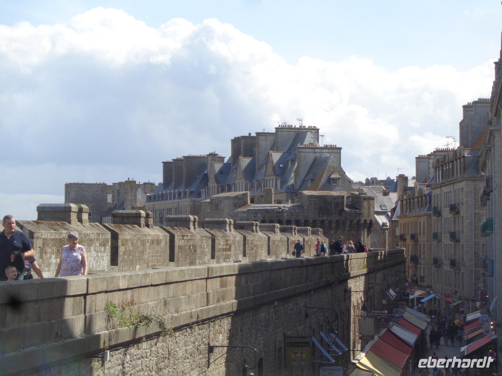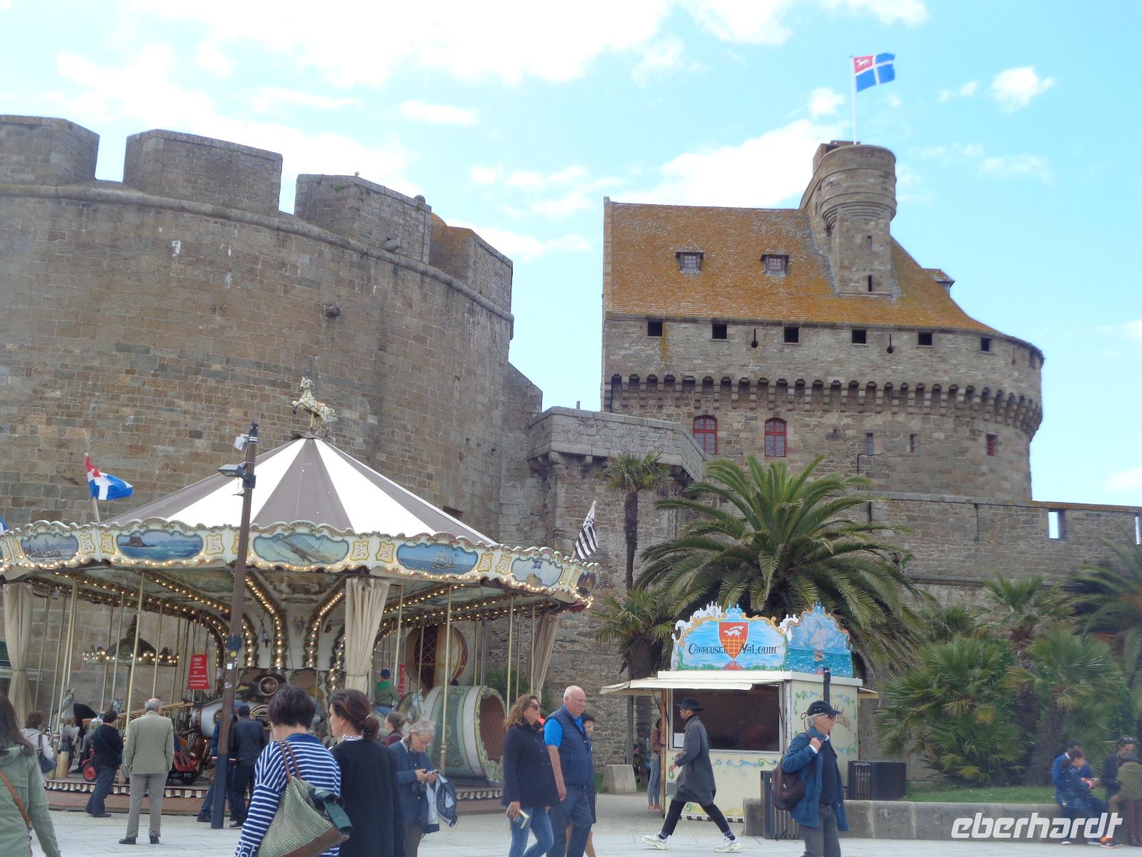 Nach einem reichhaltigen Frühstück sehen wir der 2. Etappe erwartungsvoll entgegen. An Paris vorbei geht es über Le Mans, Aval und Rennes nach St. Malo. Wir erreichen die Korsarenstadt Saint-Malo am Nachmittag und haben noch Zeit für einen Abstecher „Intra muros", in den alten Stadtkern innerhalb der Mauern. Im 16. Jhd. blühte die Stadt auf durch Handel und Fischfang. Hier wurde kurzzeitig eine Republik gegründet, aber erfolgreicher waren die Piraten bis Anfang des 19. Jhd. unter ihrem Anführer Robert Surcouf. Heute ist Saint-Malo ein beliebtes touristisches Zentrum, das einiges zu bieten hat. Wir tauchen kurz ein in die Touristenströme in den lebendigen Gassen, bevor es auf die Fähre geht. Unser Ziel ist Saint-Helier auf Jersey, wo wir erwartet werden. Nach einer ruhigen Überfahrt begrüßen uns Heidi und Ernst pünktlich am Hafen und transferieren uns zügig zum Hotel. Da es schon so spät ist, bittet uns der Küchenchef sofort zu Tisch. Der Check-in muss warten und wird im Anschluss an das Abendessen erledigt.