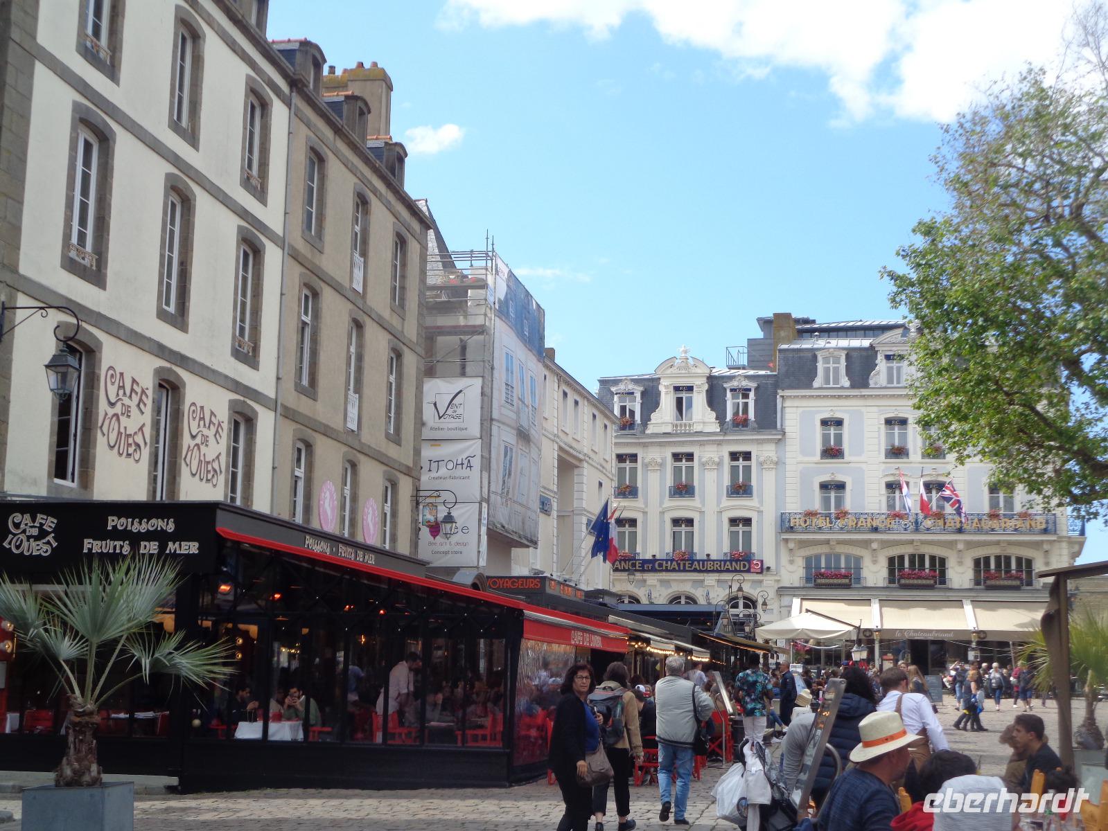 Die meisten Gäste haben noch Reserven und steigen am berühmten Hotel „Pomme d'Or" aus, um noch einmal zur Post oder in die Markthalle zu gehen. Wir brauchen unbedingt noch Royal Jersey Potatoes und Jersey Lilien. Heute gibt es zeitiger Abendessen und alle freuen sich über einen weiteren erfolgreichen Urlaubstag.