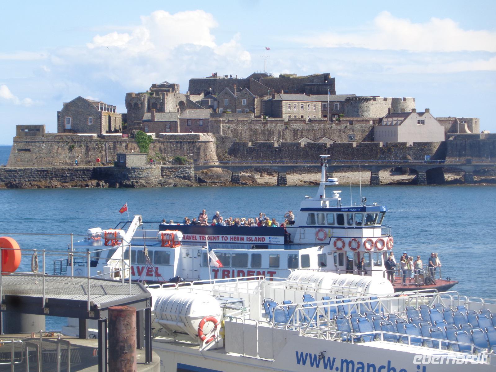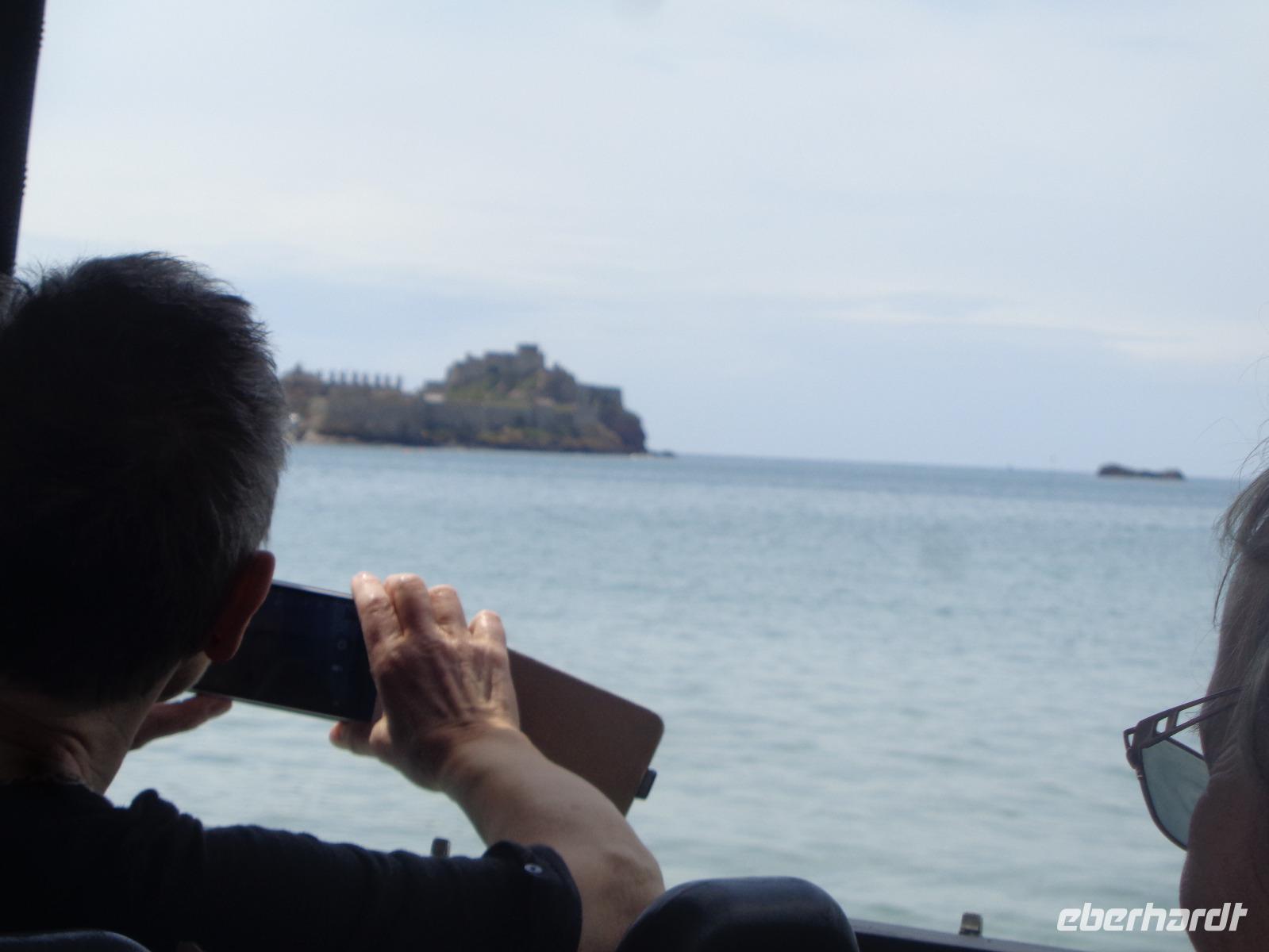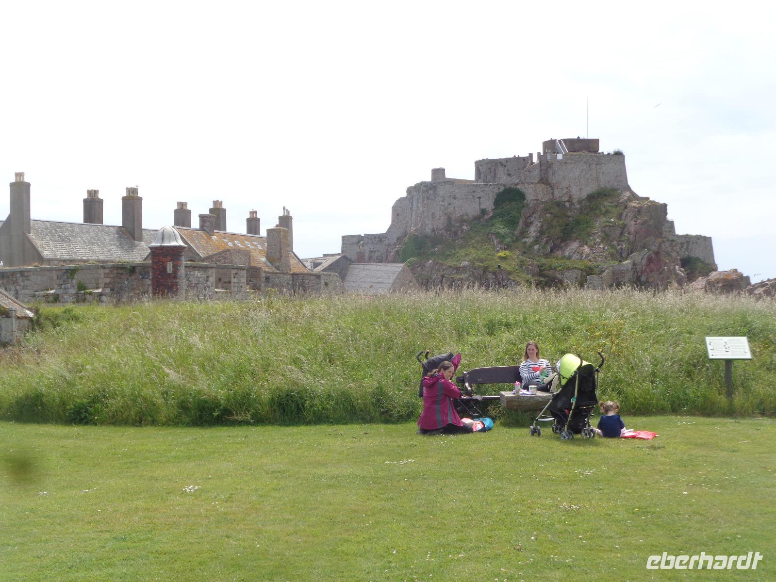 Die Inselfestung löste im 15. Jhd. das Fort Mont Orgeuil in Gorey ab und Governeur Walter Raleigh benannte es um 1600 nach Königin Elizabeth I. Da die Festung etwa eine halbe Meile im Meer liegt, bevorzugen wir die Überfahrt mit dem Amphibienfahrzeug, auch liebevoll als „Paddle Duck" bezeichnet.