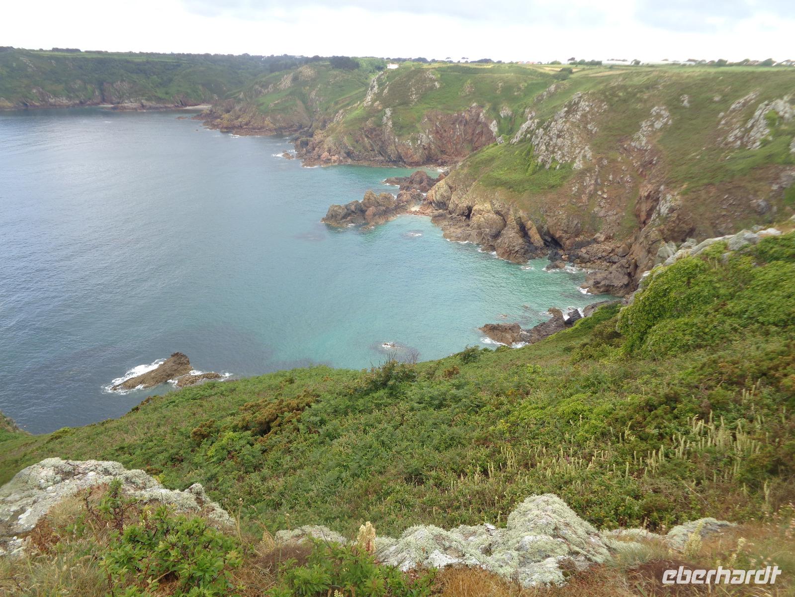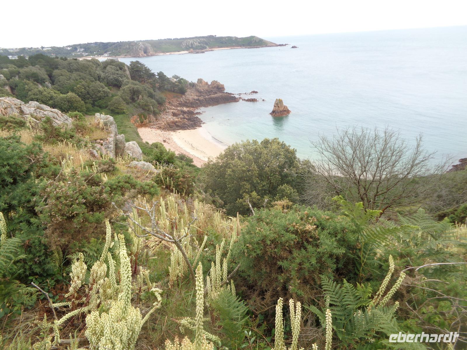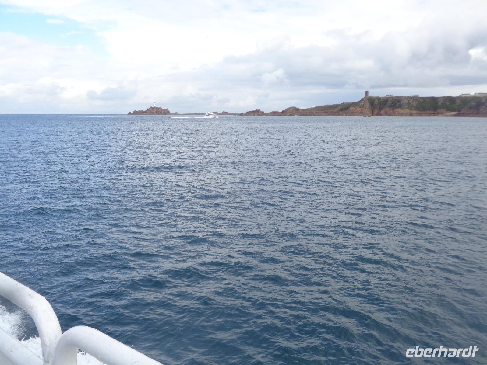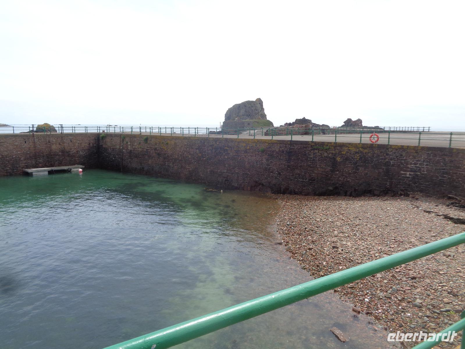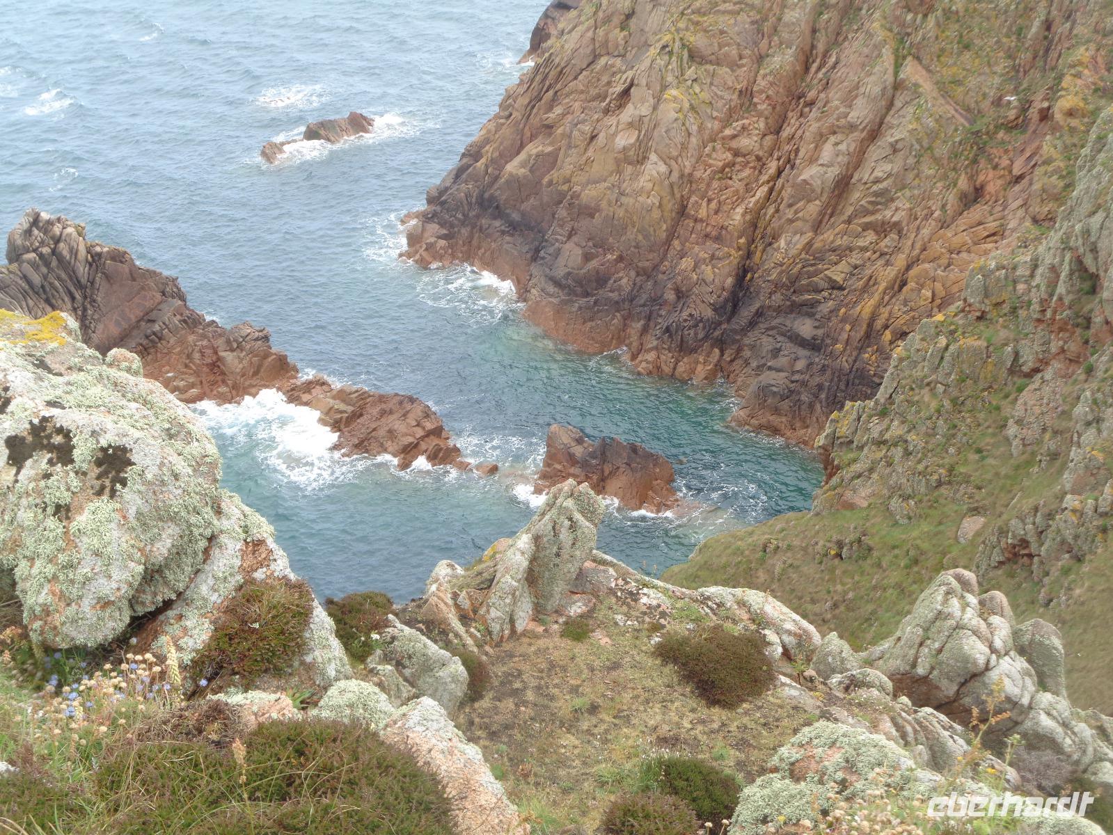 Nach dem Frühstück holt uns heute Heidi ab zur traditionellen Inselrundfahrt. Wir fahren zuerst gen Osten nach Gorey. Hier thront oben auf dem Mont Orgeuil die erst Verteidigungsanlage. Als das Schießpulver erfunden wurde und die Kanonen kamen, verlor das Fort seine Funktion an das Elizabeth Castle. Elisabeth I. hatte ihren Militäringenieur Paul Ivy 1590 beauftragt, das Fort in der St. Aubin Bucht auszubauen. Wir fahren weiter zur Bouley Bay entlang der Küste und durch das Landesinnere bis zur Bucht Greve de Lecq. Hier machen wir unsere Mittagspause und fahren dann weiter zum Grosnez Castle. Von hier aus können wir heute Guernsey und Sark sehen.
