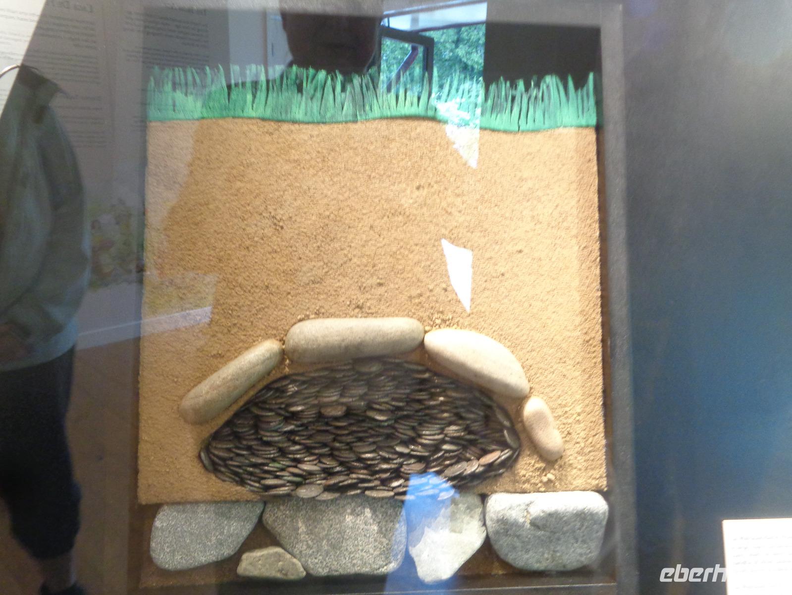 Sonntags ist kein Kanonenmeister da, wie schade! Die Anlage umfasst 5 wesentliche Ebenen, den Hermitage-Felsen und die Wellenbrecher. In den Museen wird das Leben in der Kaserne gezeigt und die geschichtlichen Epochen dazu sowie die Entwicklung der Waffen, Kanonen und Geschütze. Jeder nutzt seine Freizeit und einige von uns haben noch vor, sich auf die Spuren der Kelten zu begeben. Vom Busbahnhof aus fahren wir zum Hogue Bie Museum in Grouville. La Hogue Bie ist ein Dolmen, der 1924 ausgegraben wurde. Darüber liegt ein Hügel mit einer Kapelle und etwas unterhalb steht ein keltisches Langhaus, eine 20 m lange Replike, die mit Freiwilligen und traditionellen Werkzeugen sowie neolithischen Techniken neu aufgebaut wurde. Dazu das Museum mit sensationellen Funden von der Insel. Es lohnt sich wirklich und wir haben heute Abend viel zu erzählen.