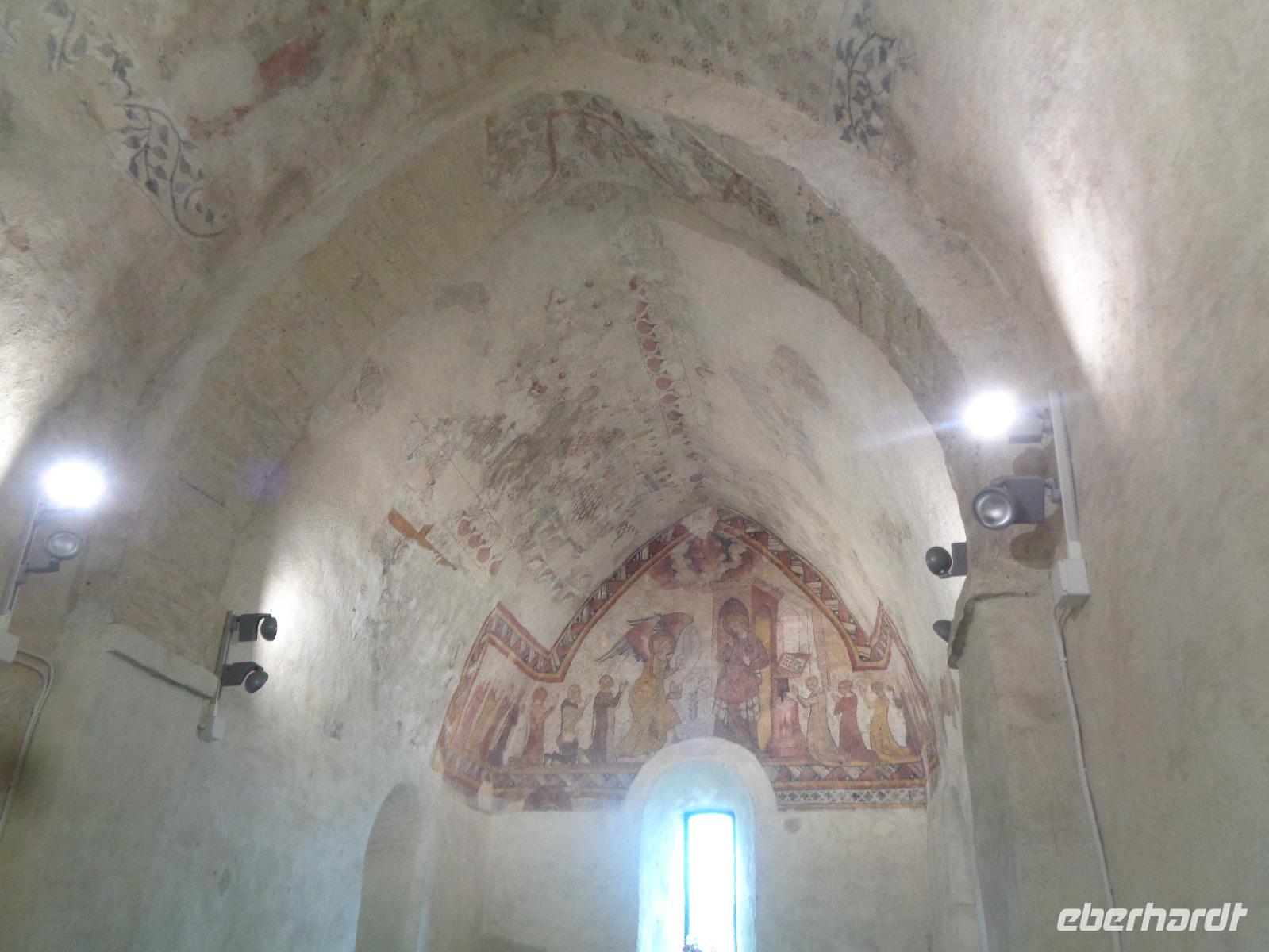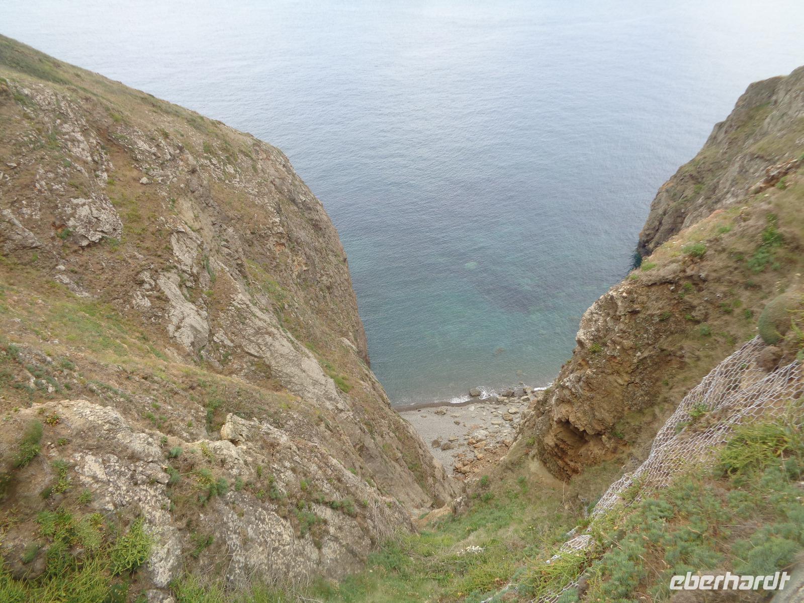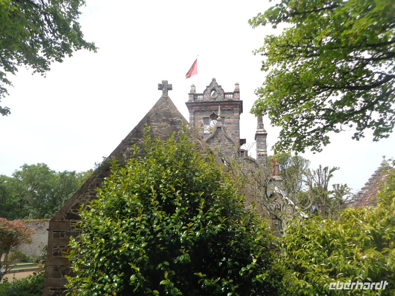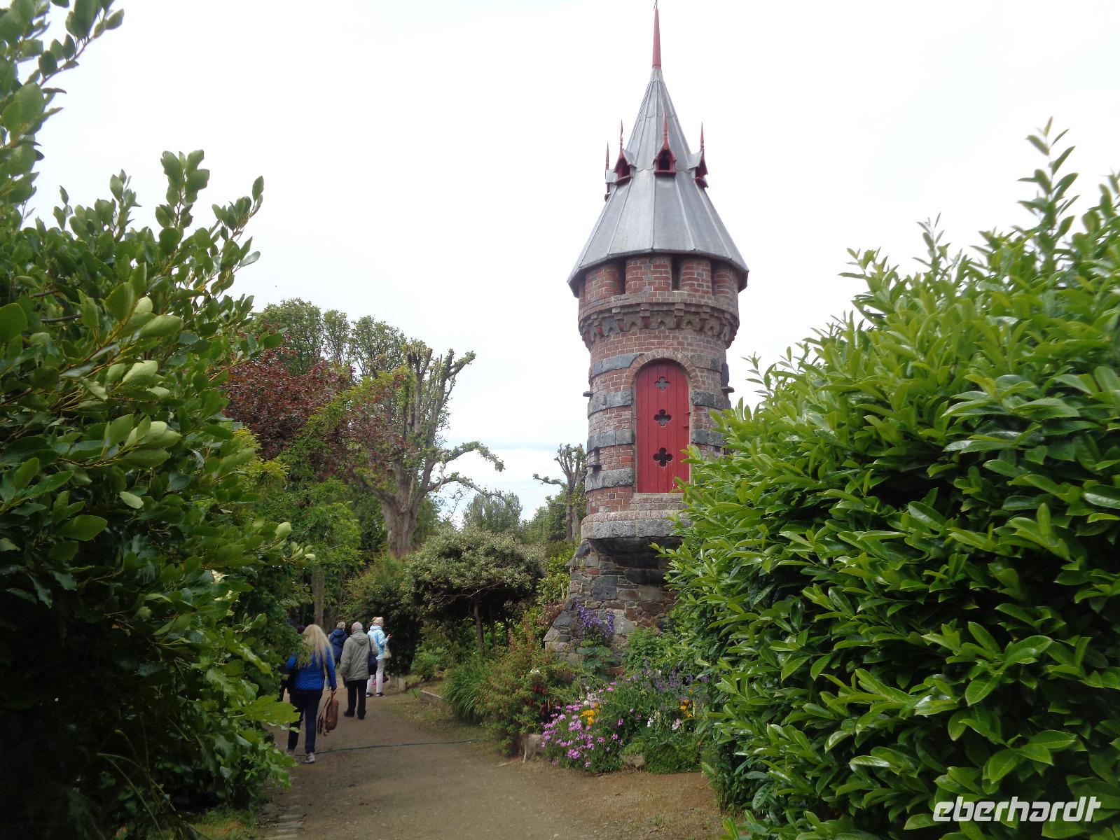 Heute werden wir wieder nach einem zeitigen Frühstück abgeholt, weil wir mit der Fähre nach Guernsey wollen. Am Hafen von St. Peter Port steht unser Bus bereit und es geht sofort los zur Küste. Dabei kommen wir am Sausmarez Manor Herrenhaus und an dem Haus von Charlotte Link vorbei, die den Roman „Die Rosenzüchterin" schrieb. Unser Wanderweg gleicht einer Rutschbahn, deshalb sind wir sehr vorsichtig bei unseren Fotoaufnahmen von der wunderschönen Steilküste mit vielen wilden, bunten Blumen und Büschen. Weiter geht es nach St. Andrew zur kleinsten Kirche der Welt, die Bruder Déodat unbedingt nach dem Vorbild der Grotten und der Kapelle von Lourdes in Frankreich bauen wollte. Da der Bischof von Portsmouth mit seinem Hinterteil nicht durch die Tür kam, riss Bruder Déodat seinen Bau wieder ein, das tat er zwei Mal, und baute noch einmal. Die kleine Kirche aus Scherben, Kieselsteinen, Glas- und Porzellansplittern misst nur 4,9 x 2,7 m, kein Wunder.