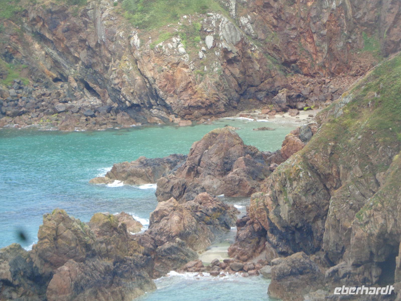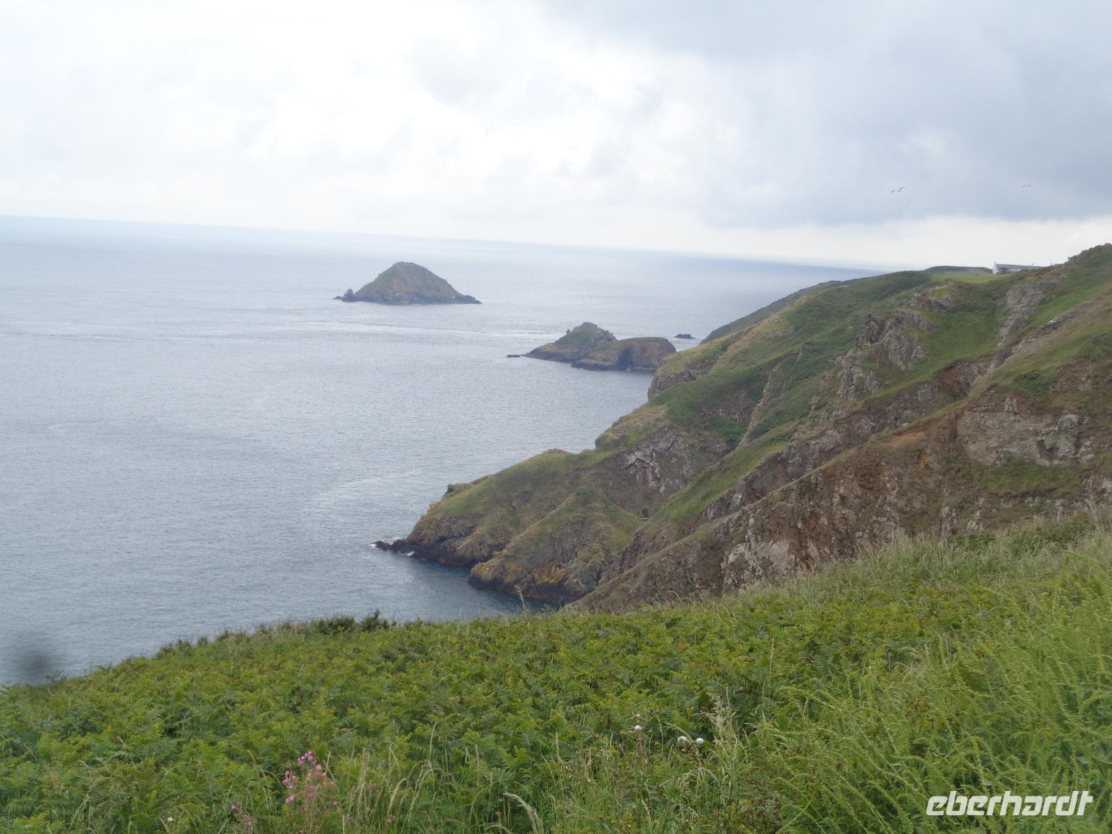 In der Umgebung gibt es liebliche Wiesen und Weiden. Wir sehen Guernsey Kühe und Goldene Ziegen und Heidi zeigt uns an der Küste auch noch einen steinernen Zoo.