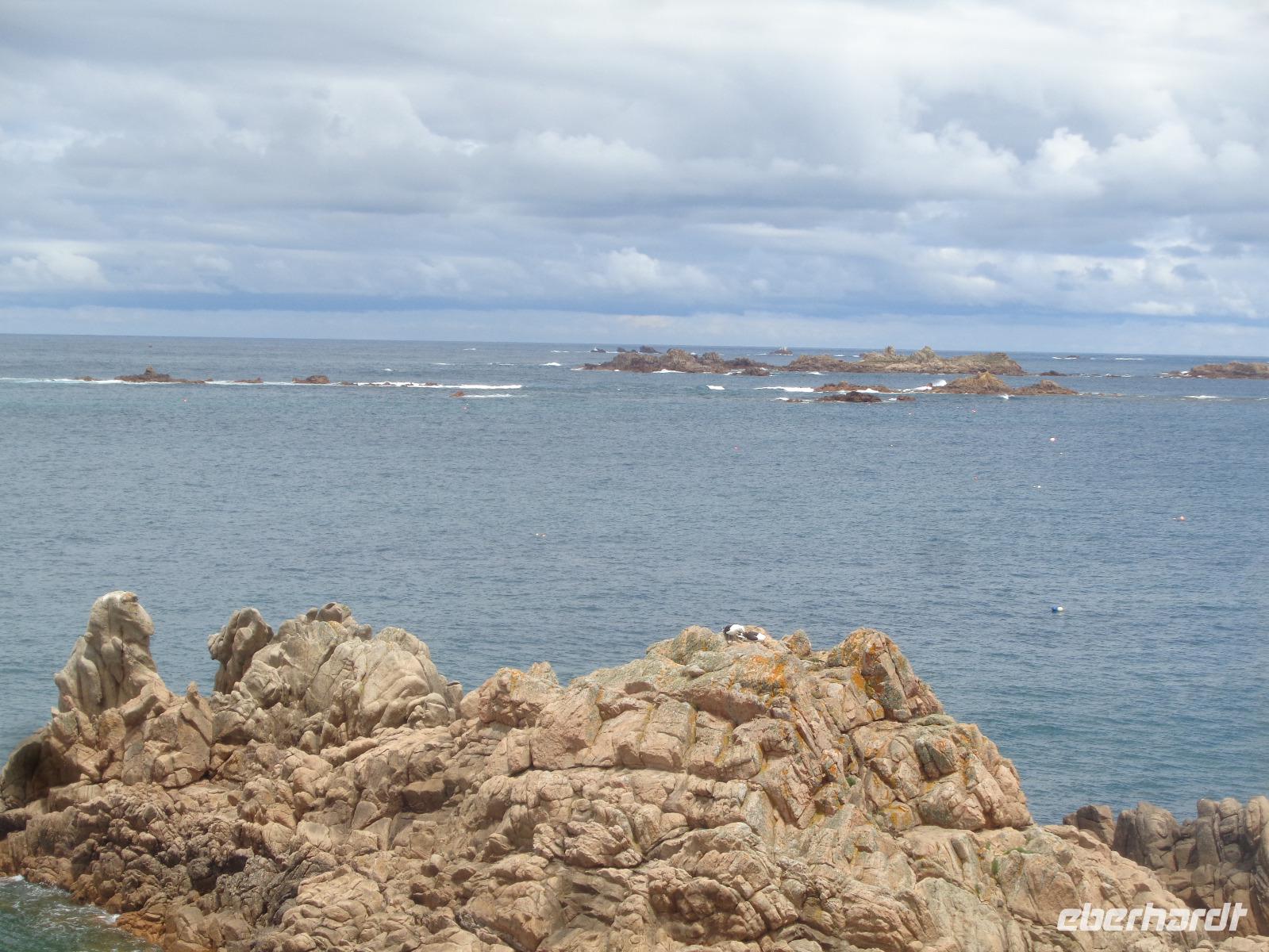 An der St. Ouens Bay zeigt uns Heidi die Bunker, die jetzt für die Hummerzucht genutzt werden und an der Westküste sehen wir den einzigen Süßwassersee der Insel.