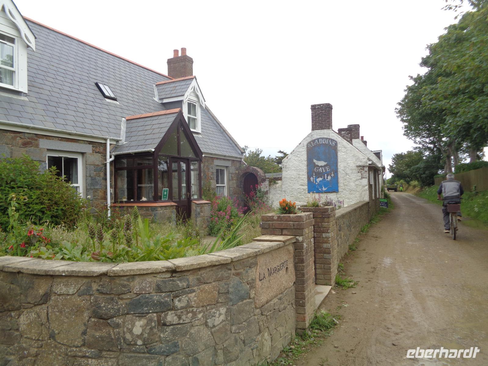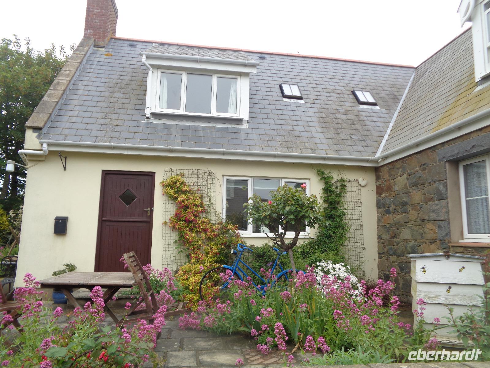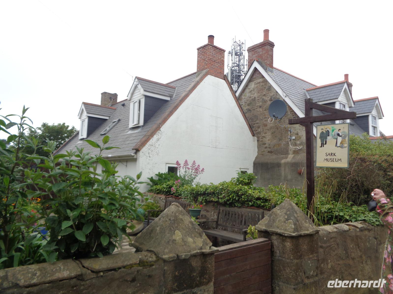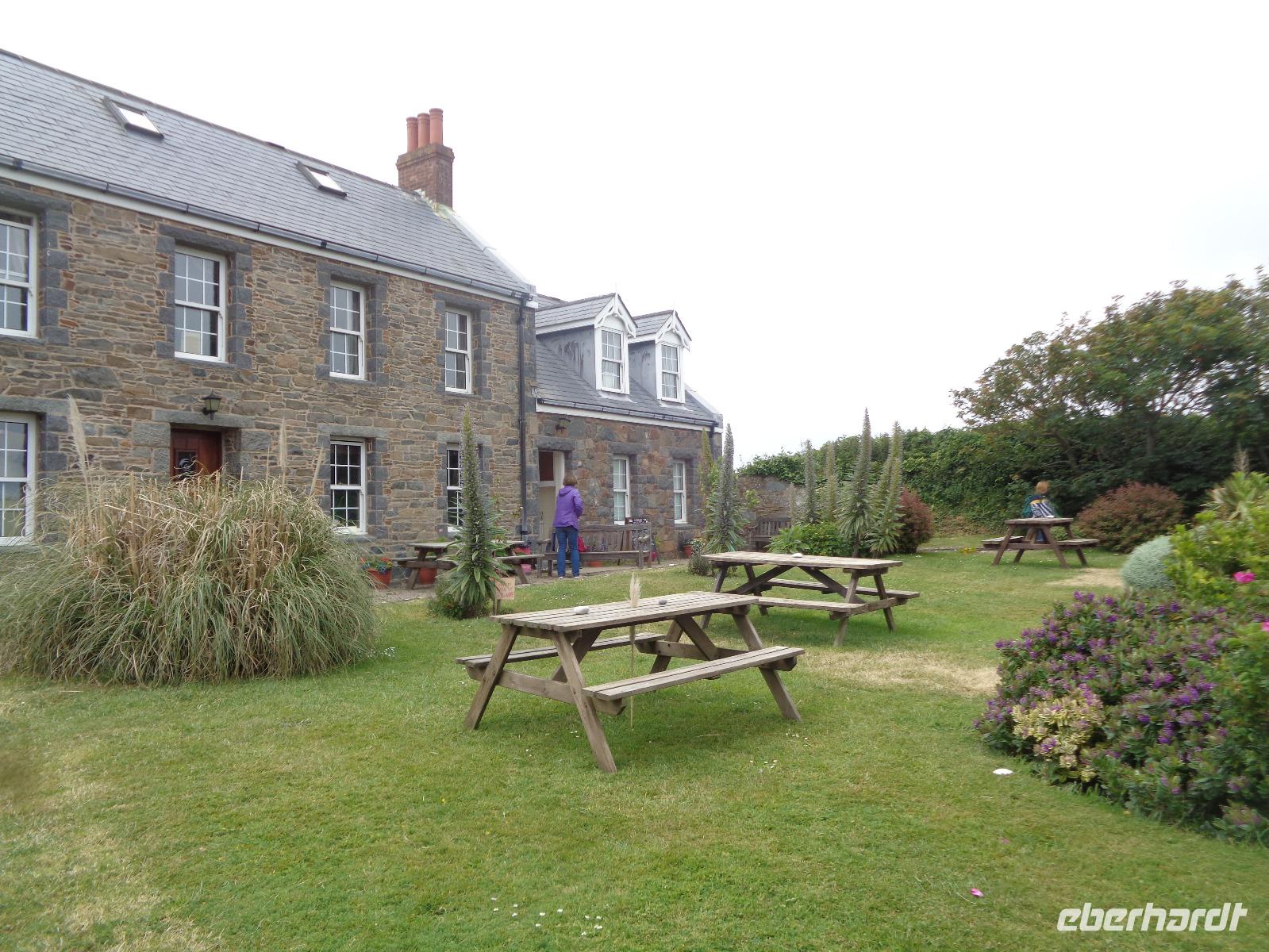 Heidi holt uns heute wieder nach dem Frühstück ab, denn heute klappt es mit der Fähre nach Sark. Die Überfahrt verläuft unauffällig und wir kommen alle topfit an. Heute begleitet uns Christl und erzählt uns zur Einstimmung Wichtiges über Sark. Danach laufen wir gemeinsam zur Seigneurie, dem Herrensitz auf der Insel. Sibyl Hathaway wurde durch ihren Großvater Collings zur Dame von Sark und regierte die Insel bis 1974. Sie förderte den Inseltourismus mit dem Slogan „Die letzte Bastion des Feudalismus" und verstand es auch geschickt, die deutsche Besatzung eher gemütlich bei Tee und Gebäck zu überstehen. Aus ihrer Linie stammen die nachfolgenden Seigneurs Beaumont. Mit dem Feudalismus geht es seit 2008 bergab, denn es wurde mit dem Parlament eine zarte Pflanze der Demokratie installiert. Bewundernswert ist der Garten. Alle Blüten und Blumen, die man sich vorstellen kann, blühen abwechselnd rund um das Jahr. Wir lassen uns auch von dem Blütenduft der Rosen berauschen und kehren anschließend in dem kleinen Restaurant an der Schule ein.