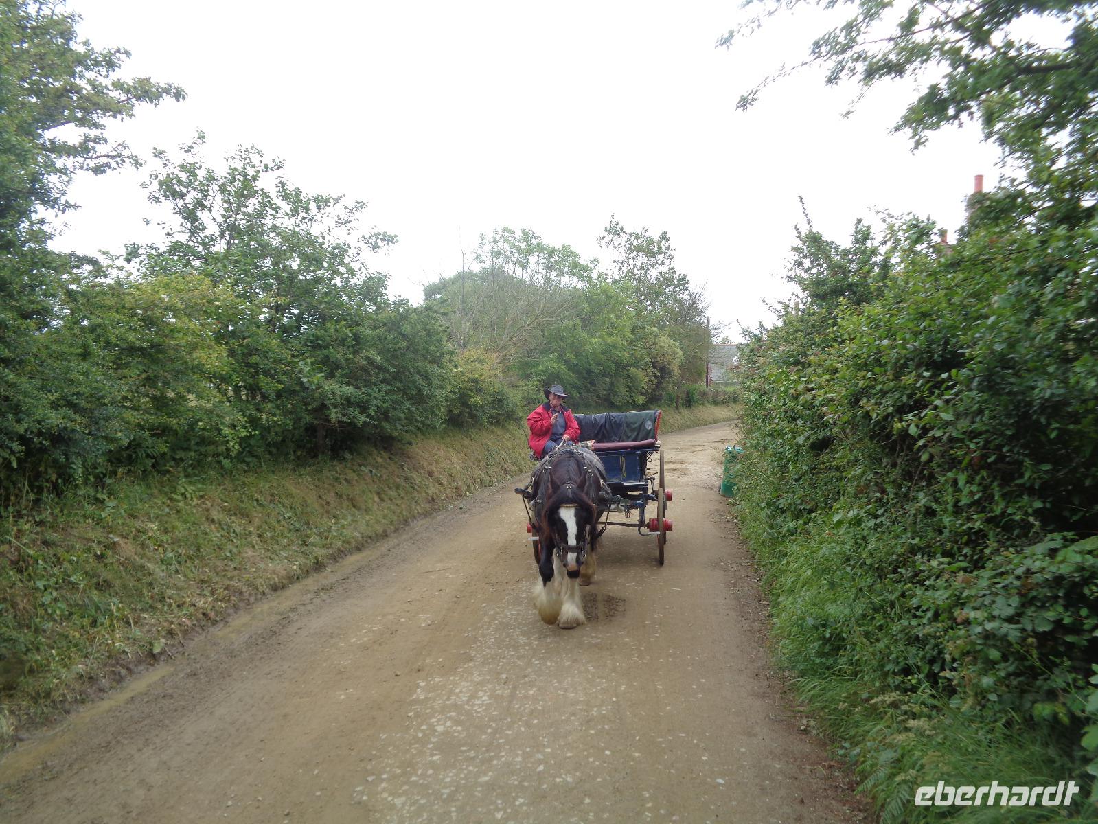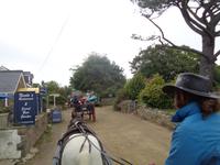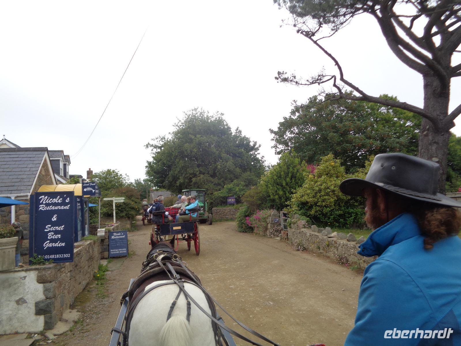 Nach der Mittagspause erwartet uns eine vergnügliche Kutschfahrt zum La Coupée, die Landzunge zwischen Great Sark und Little Sark. Die Verbindung wurde 1945 durch deutsche Kriegsgefangene erweitert, betoniert und das alte Geländer erneuert. Der Ausblick von hier aus ist faszinierend und die Fotoapparate klicken wieder unaufhörlich. Wir huschen noch schnell in der Schokoladenmanufaktur Canagh vorbei, denn was hier produziert wird, ist einfach nur köstlich. Mit der Kutsche geht es zurück zur Avenue und wir haben noch etwas Zeit für die „Shopping-Meile". Erste Wahl ist ein Gemischtwarenladen mit Postfiliale, Souvenirladen sowie Haushalts- und Gartenbedarf. Davor steht der goldene Briefkasten, der Carl Hester von der Insel gewidmet ist, der bei der Olympiade in London mit der Mannschaft die Goldmedaille im Dressurreiten gewann. Die Fähre nach Jersey bringt uns wieder pünktlich nach St. Helier zurück, wo uns Heidi und Ernst schon erwarten und zum Hotel zurück bringen. Beim Abendessen werten wir wieder wie gewohnt den Tag aus.
