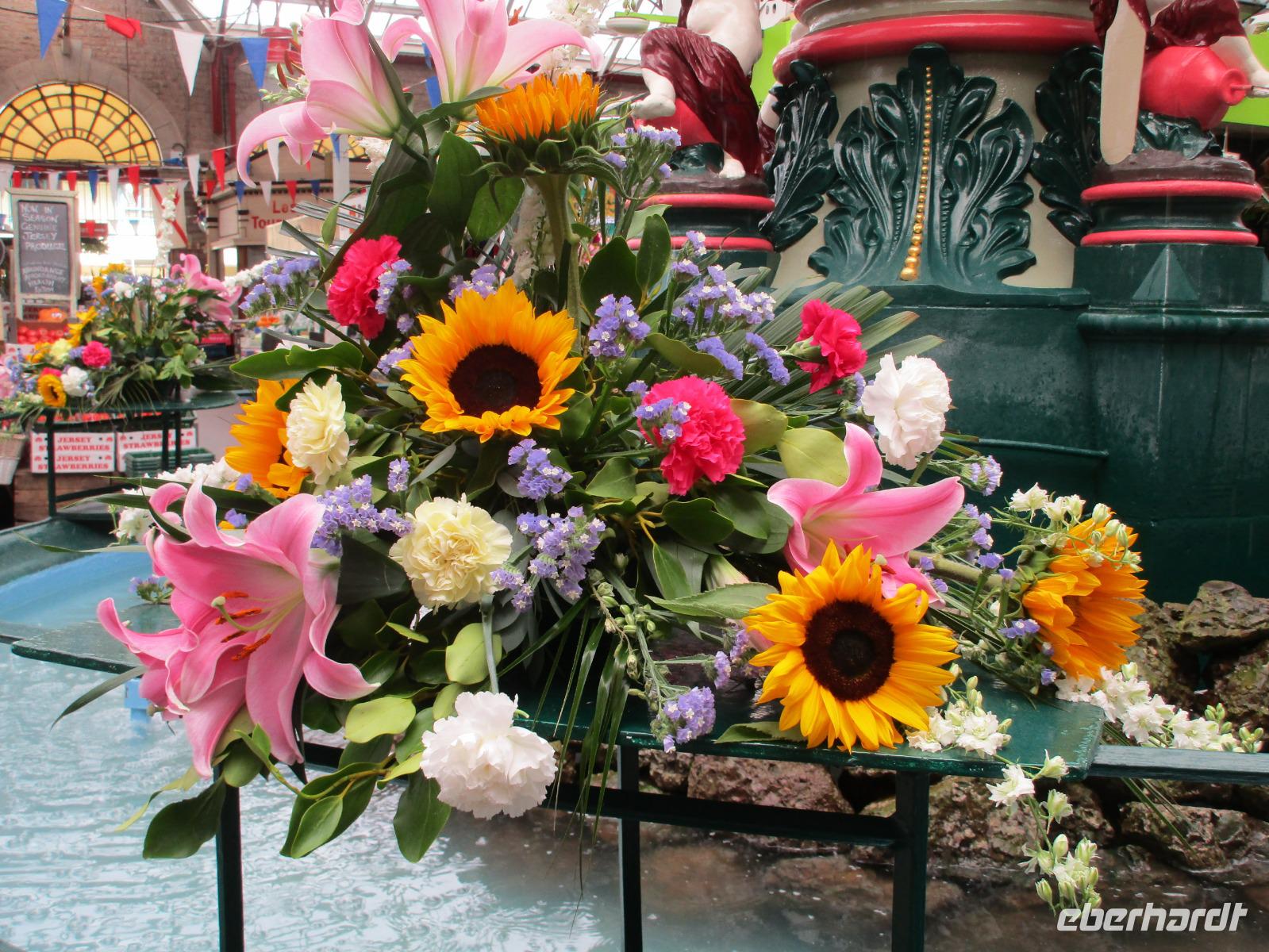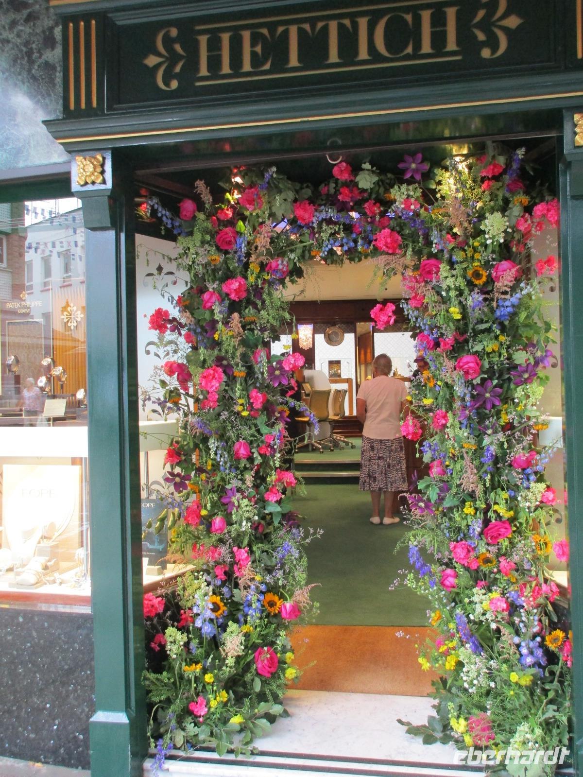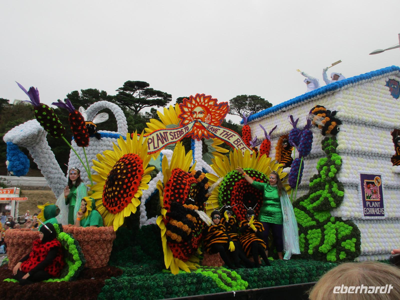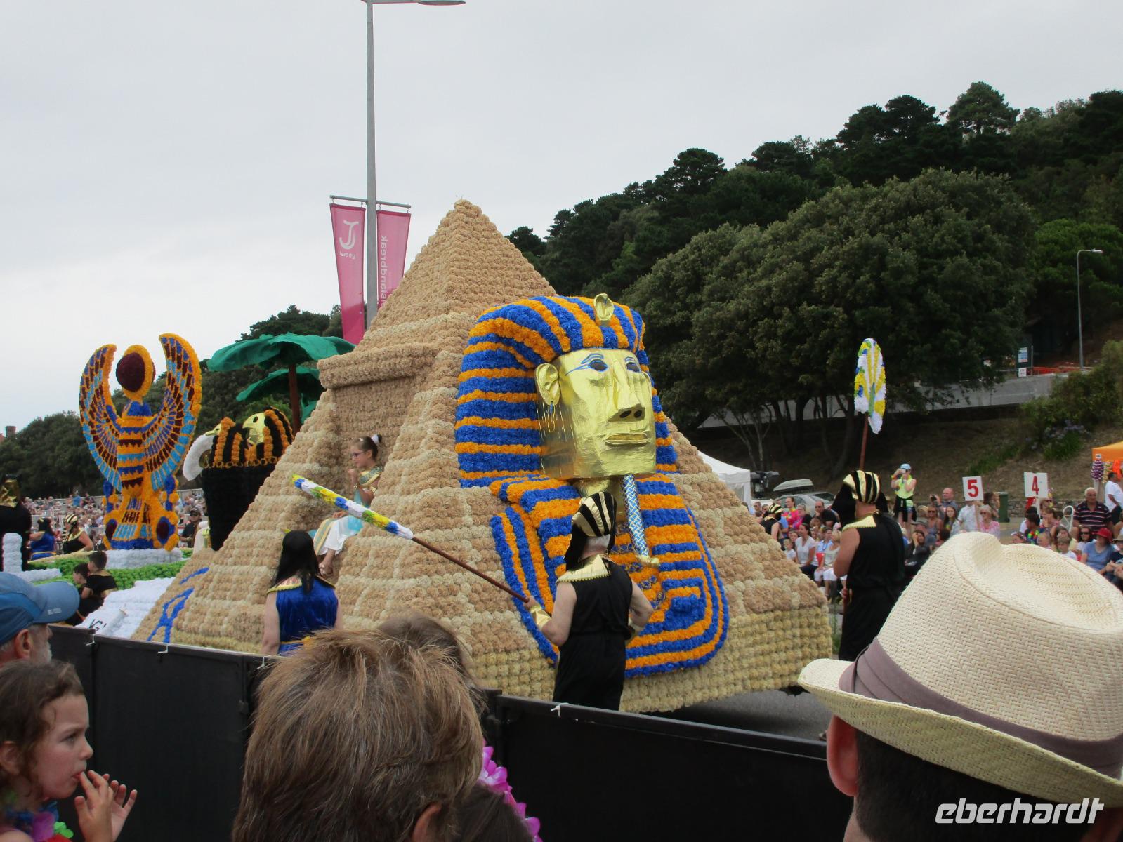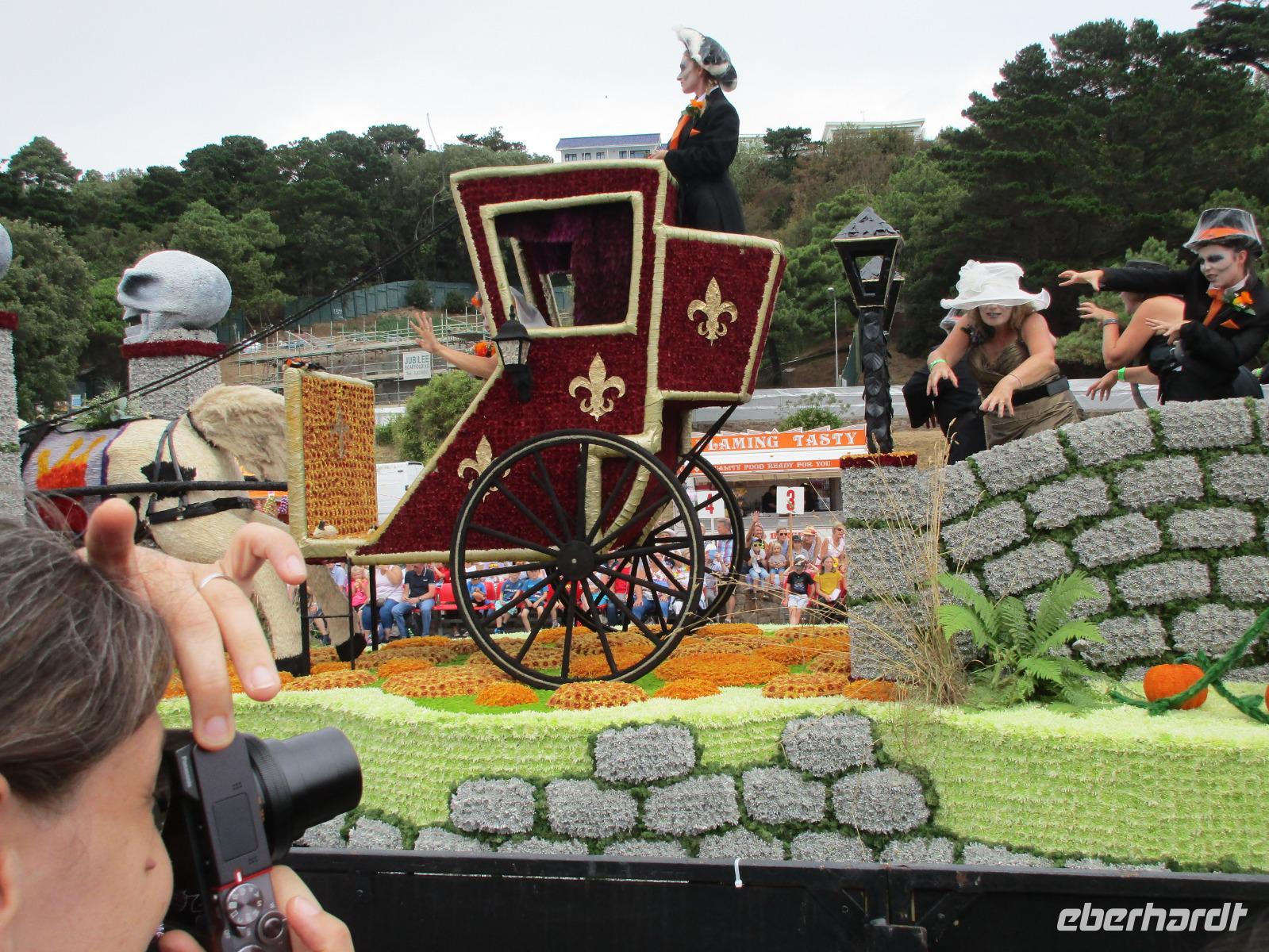 alljährlichen Blumenschau, dem absoluten Höhepunkt jeden Jahres, auf Jersey zu sein.So hatten etliche Reisegäste die Chance,für den Nachmittag einen Tribünenplatz zu buchen genutzt.Wir hatten aus der zweiten Reihe einen fantastischen Blick auf die prächtig blumengeschmückten Wagen, die jeweils unter einem bestimmten Motto sehr fantasiereich gestaltet waren.Die Fotapparate klickten unentwegt und es gelang uns nicht,herauszufinden