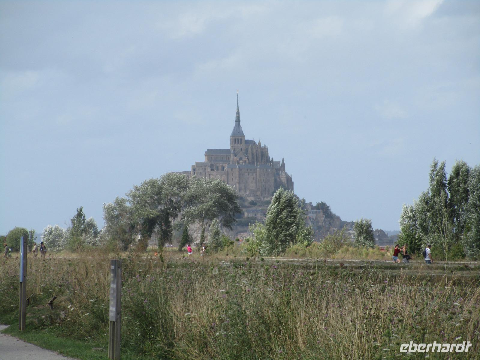 mit Blick auf die Felseninsel Mont St. Michel mit ihrer weithin sichtbaren Kathedrale ein.Am