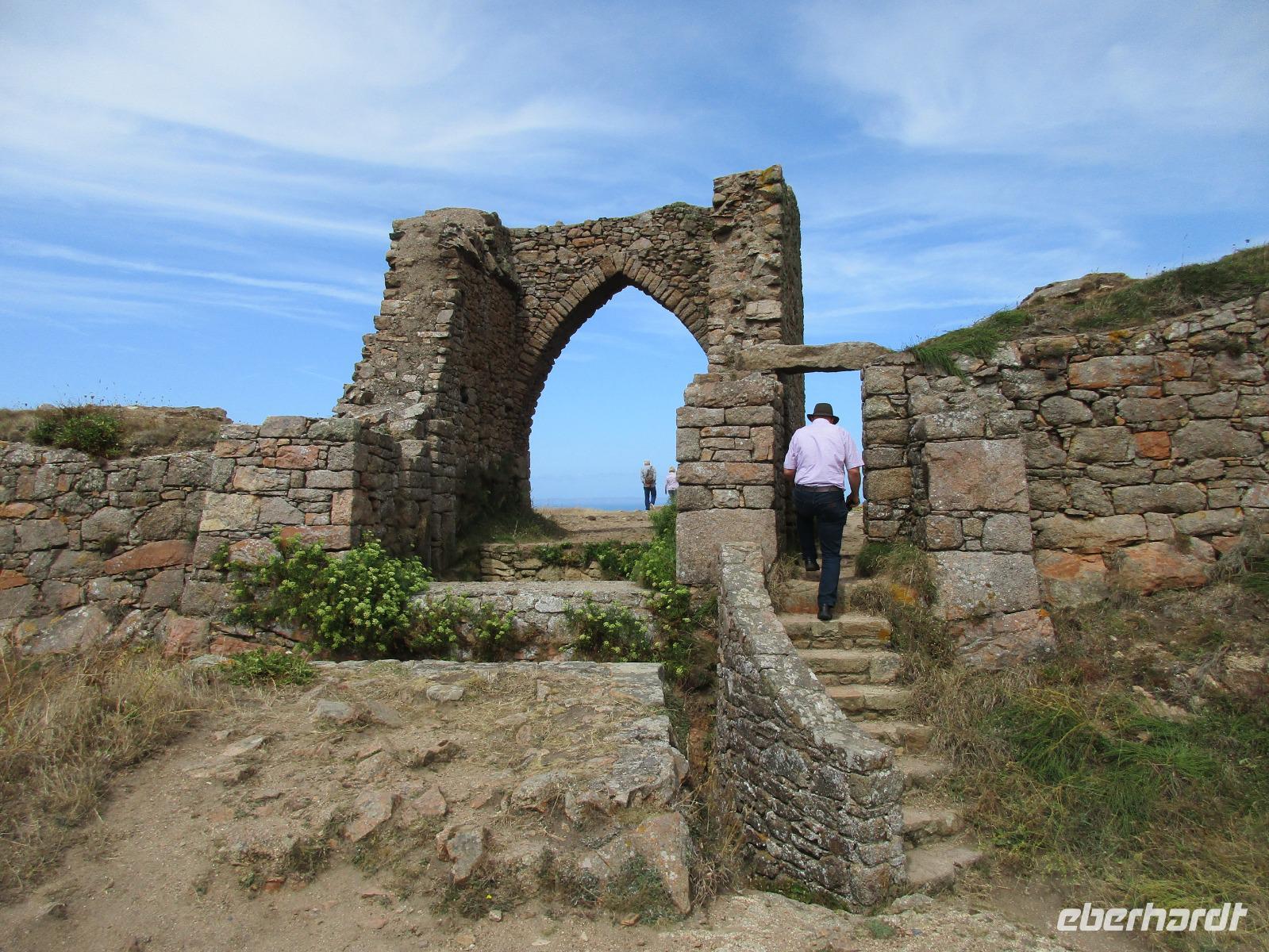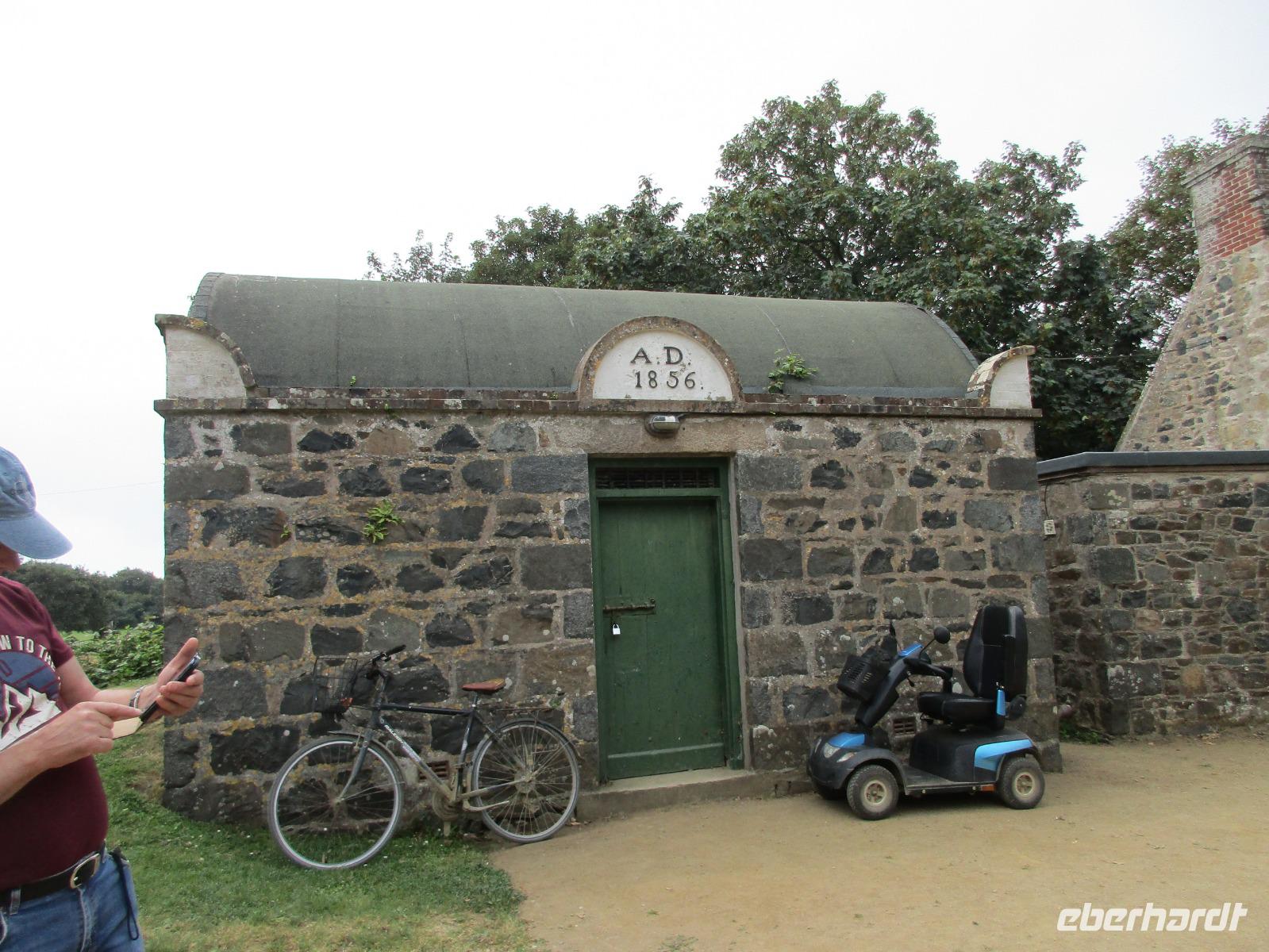 ist,gibt es doch hier keinerlei Autoverkehr.Sehr skurril erscheint uns das kleine Gefängnis von1856, in dem es nur 2 Zellen gibt.Der Höhepunkt dieses Ausfluges war sicher der Besuch der Signorie,des Herrensitzes der Seigneurie von Sark,mit ihrem markanten Turm, dem Taubenhaus und einem weitläufigen sehr schönen Garten.Der Weg "La Coupee" ,die Verbindung zwischen der Hauptinsel und "Little Sark",gewährte uns einen herrlichen Blick auf die verschiedenen Küstenformationen und das Inselinnere.
