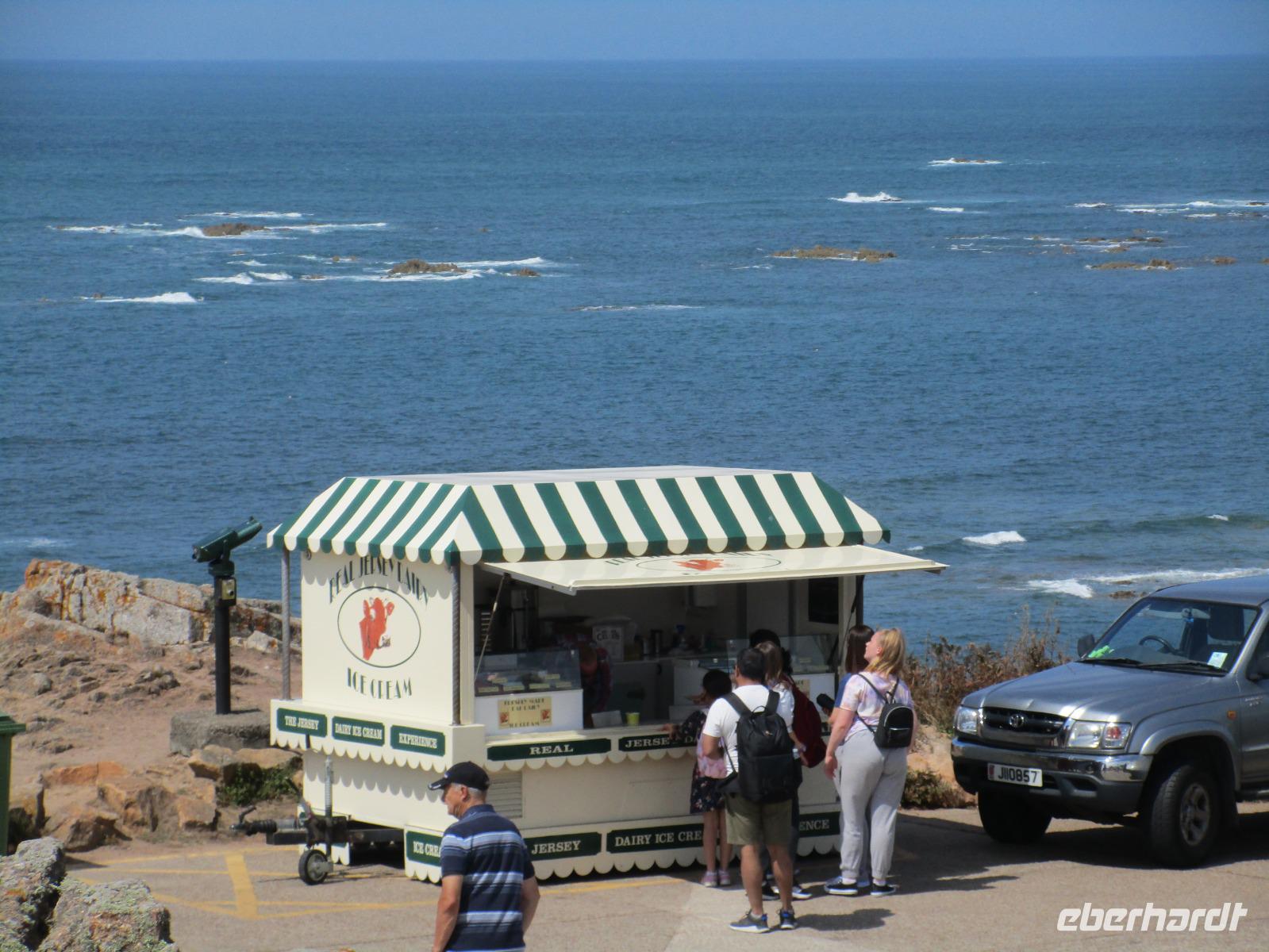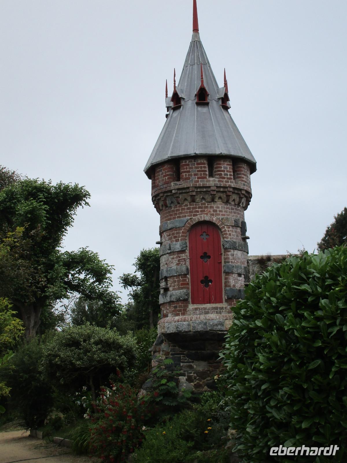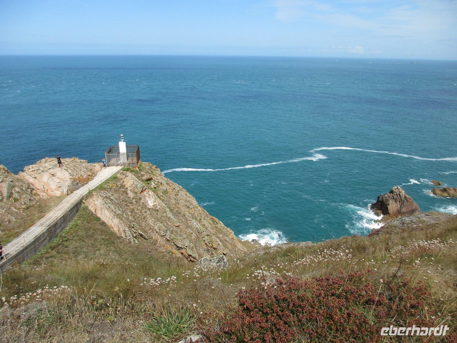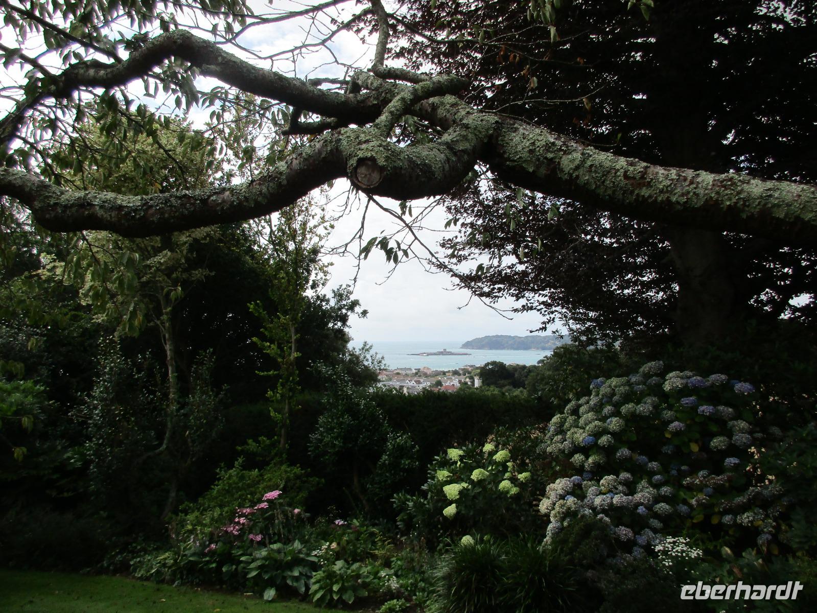 Unsere Erkundung der Insel Jersey mit dem Kleinbus begann im Süden und Südosten, wo wir am Gorey Harbour und Mount Orgueil Castle erste Fotostopps einlegten.Weiter ging`s, vorbei an Kartoffelfeldern und Weiden für die typischen Jersey-Rinder,zur Rozel Bay und der Bouley Bay im Norden.Vorbei an kleinen Ortschaften mit den für die Insel typischen Granit-Häuschen.Nach einem Stopp am höchsten Punkt der Küste erreichten wir "Devil`s Whole".Das Teufelsloch erwies sich als sehr steiler Abhang zum Meer, bot aber vom Plateau aus auch einen kleinen Wanderweg, von dem sich uns spektakuläre Blicke auf die Küste boten.Vom Piemont Point im Nordwesten kann man bis zur Insel Sark schauen.Unterwegs sahen wir Rund- und Martellotürme, auch Bunker, die größtenteils von Dünen überwuchert